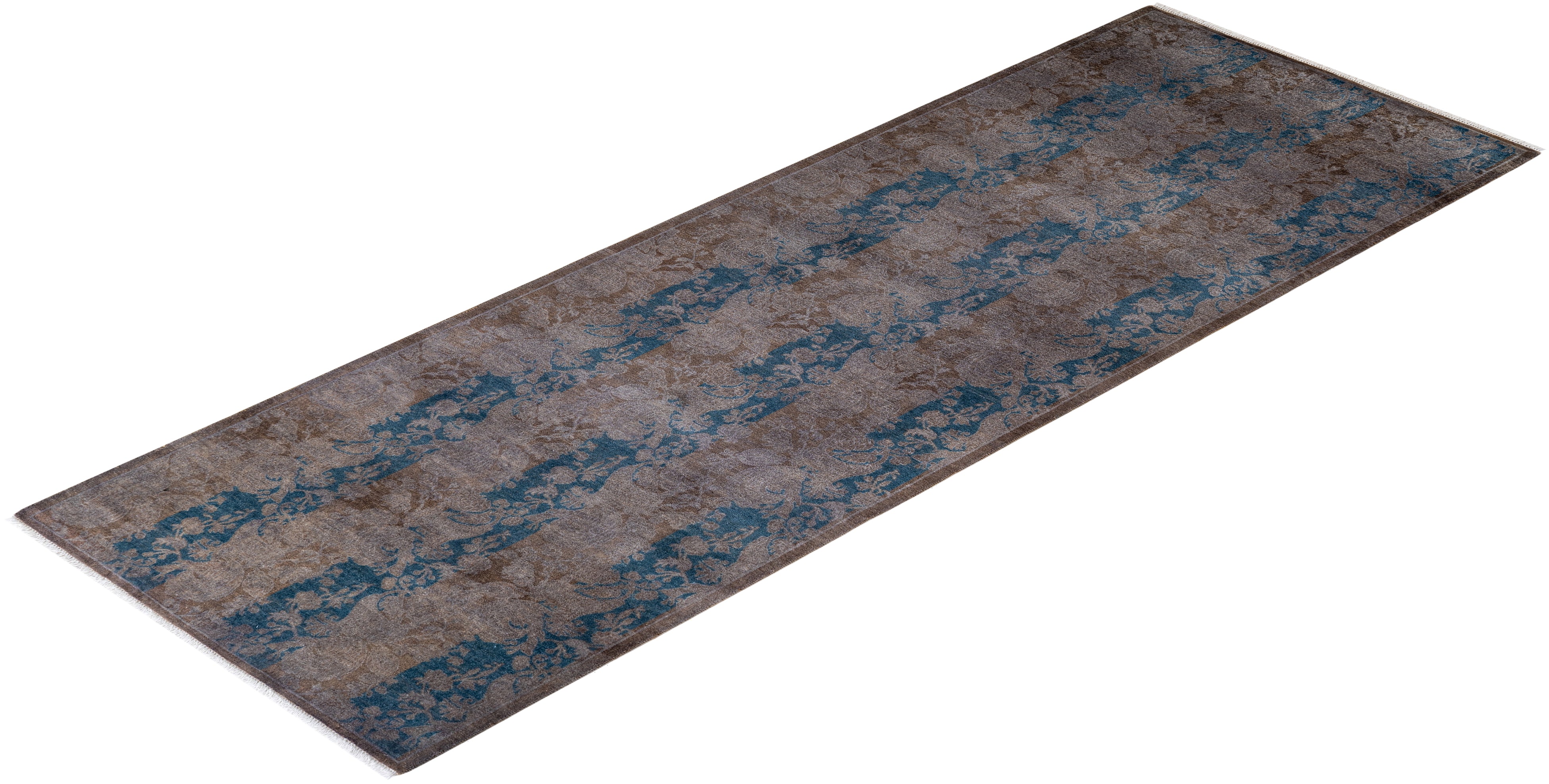 Contemporary Hand Knotted Overdyed Brown Runner 2' 8" x 7' 10"