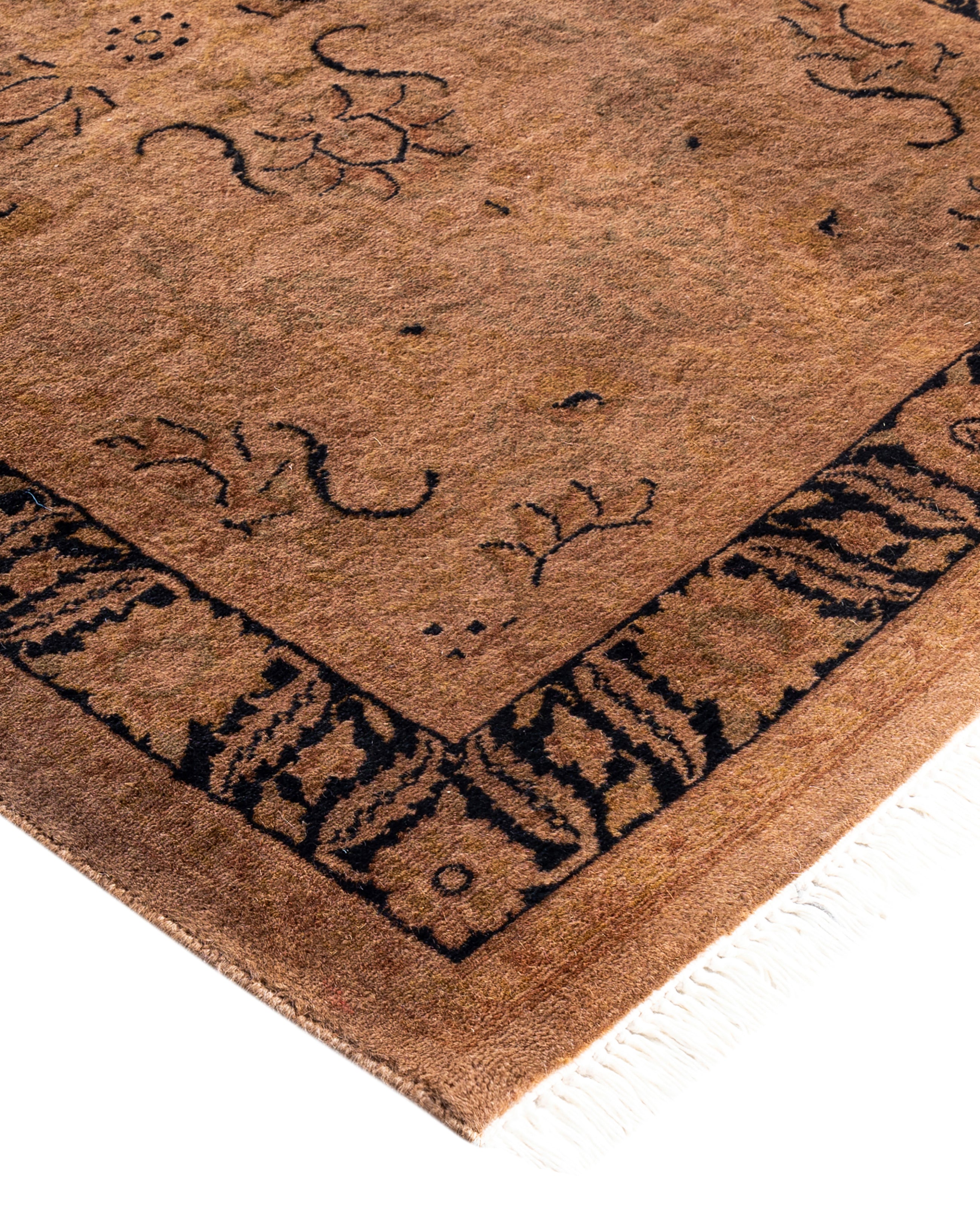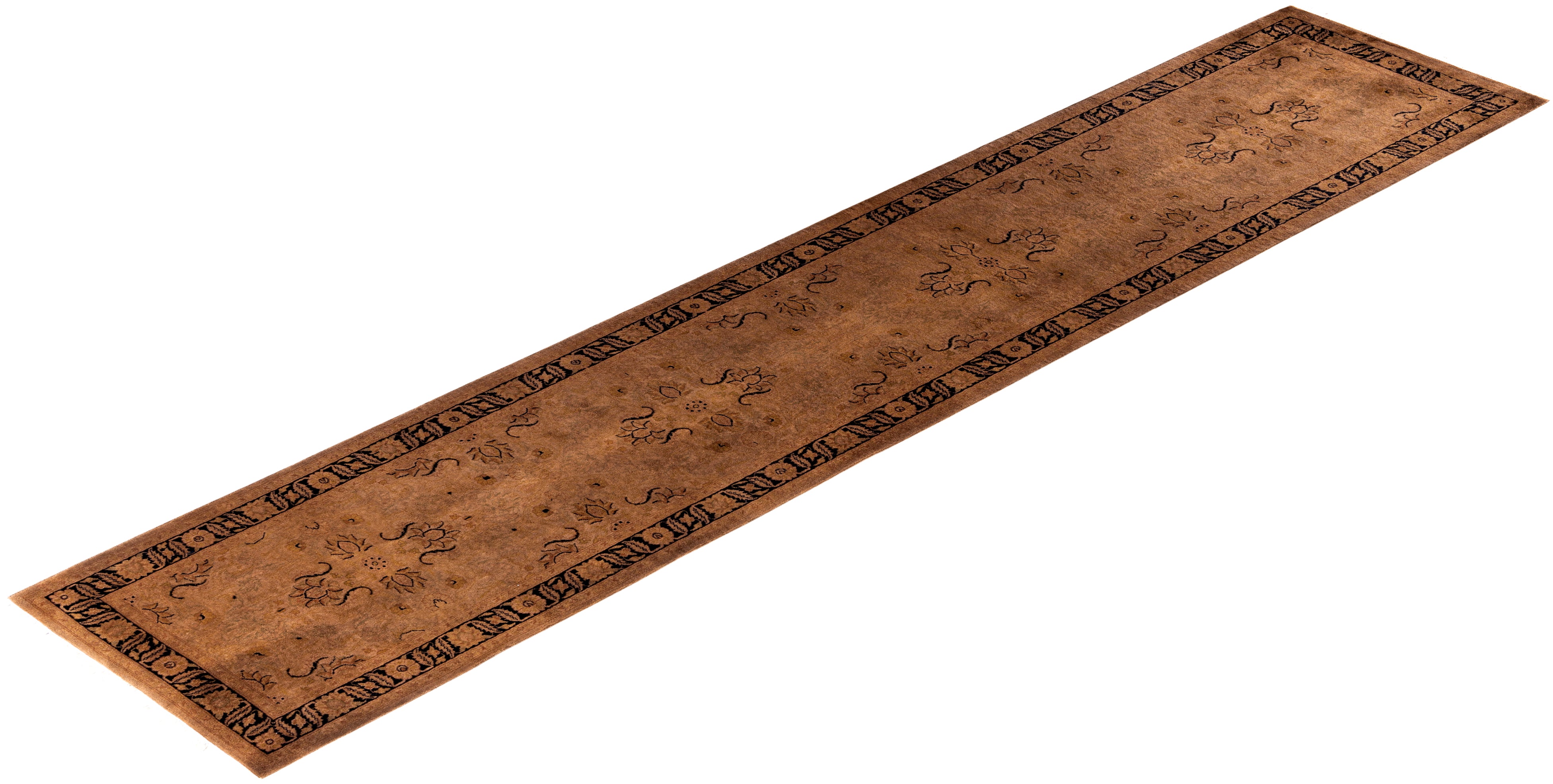 Contemporary Overdyed Wool Hand Knotted Brown Runner 2' 7" x 12' 7"