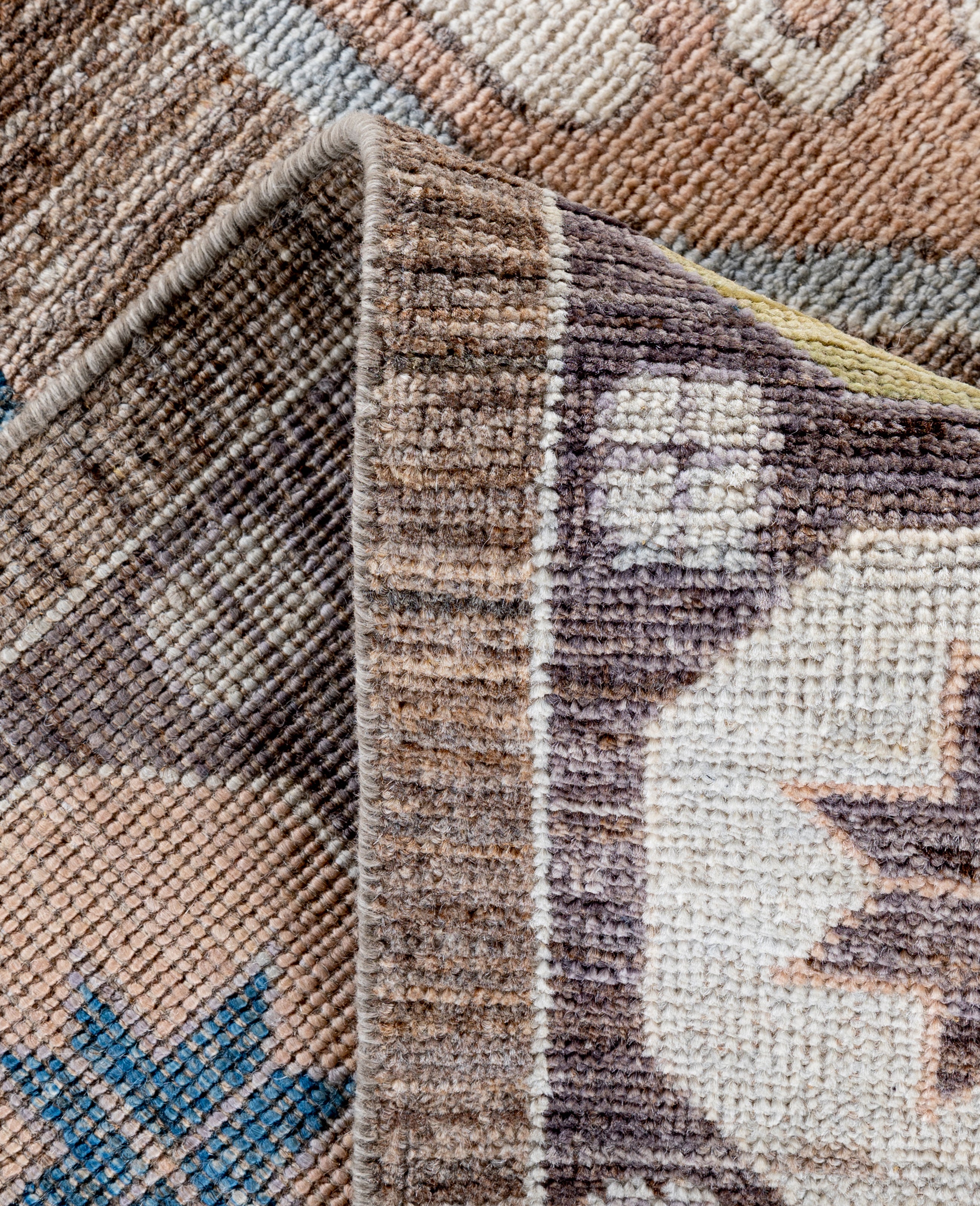 Oushak rugs are known for their soft, muted color palettes and large-scale, flowing designs. They often feature soft tones like beige, cream, gold, and light blue, with motifs that include palmettes, vines, and geometric shapes. These rugs are distinguished by their loose, open patterns, giving them an airy and elegant feel. Originating from the town of Oushak, they emphasize simplicity and a more relaxed aesthetic compared to other ornate designs. Hand-knotted using high-quality wool, Oushak rugs are celebrated for their luxurious texture and durability. Their timeless, understated beauty makes them popular in both traditional and contemporary interiors.
