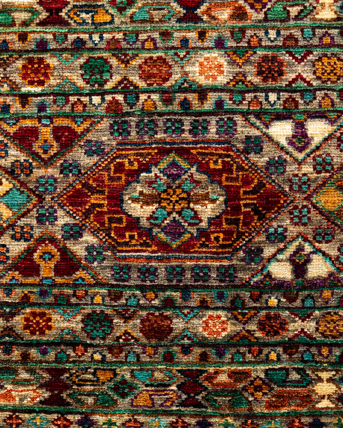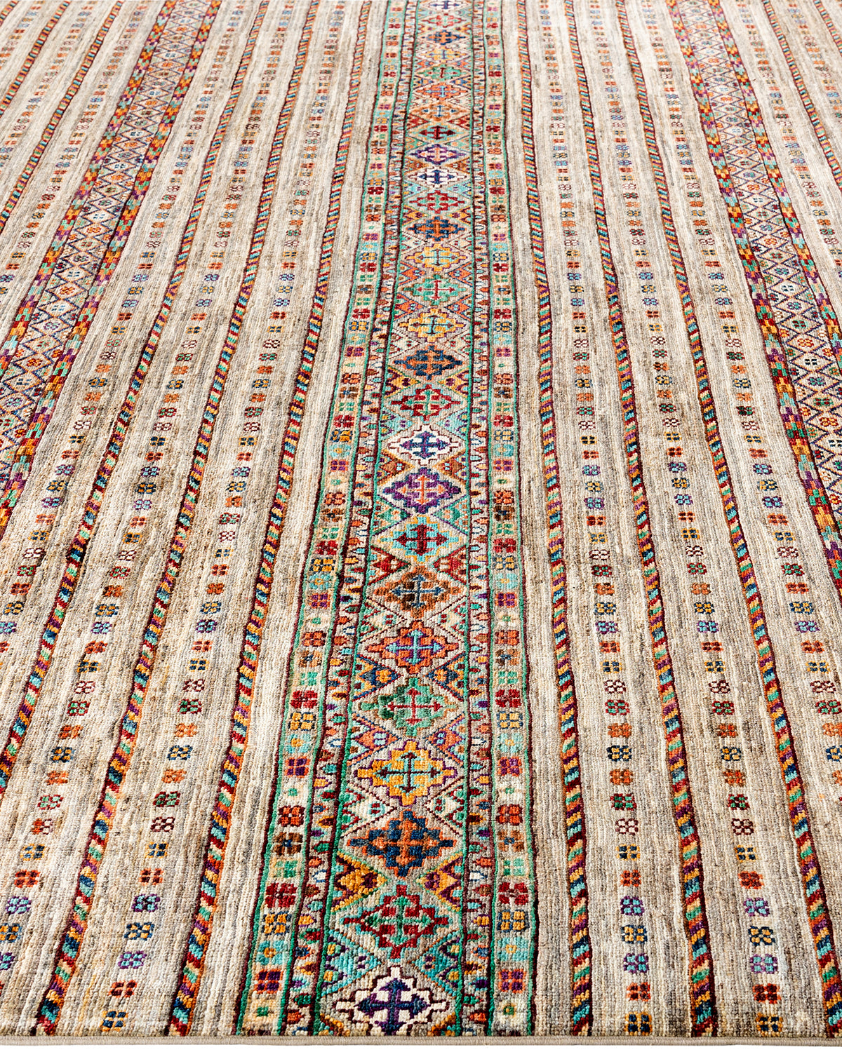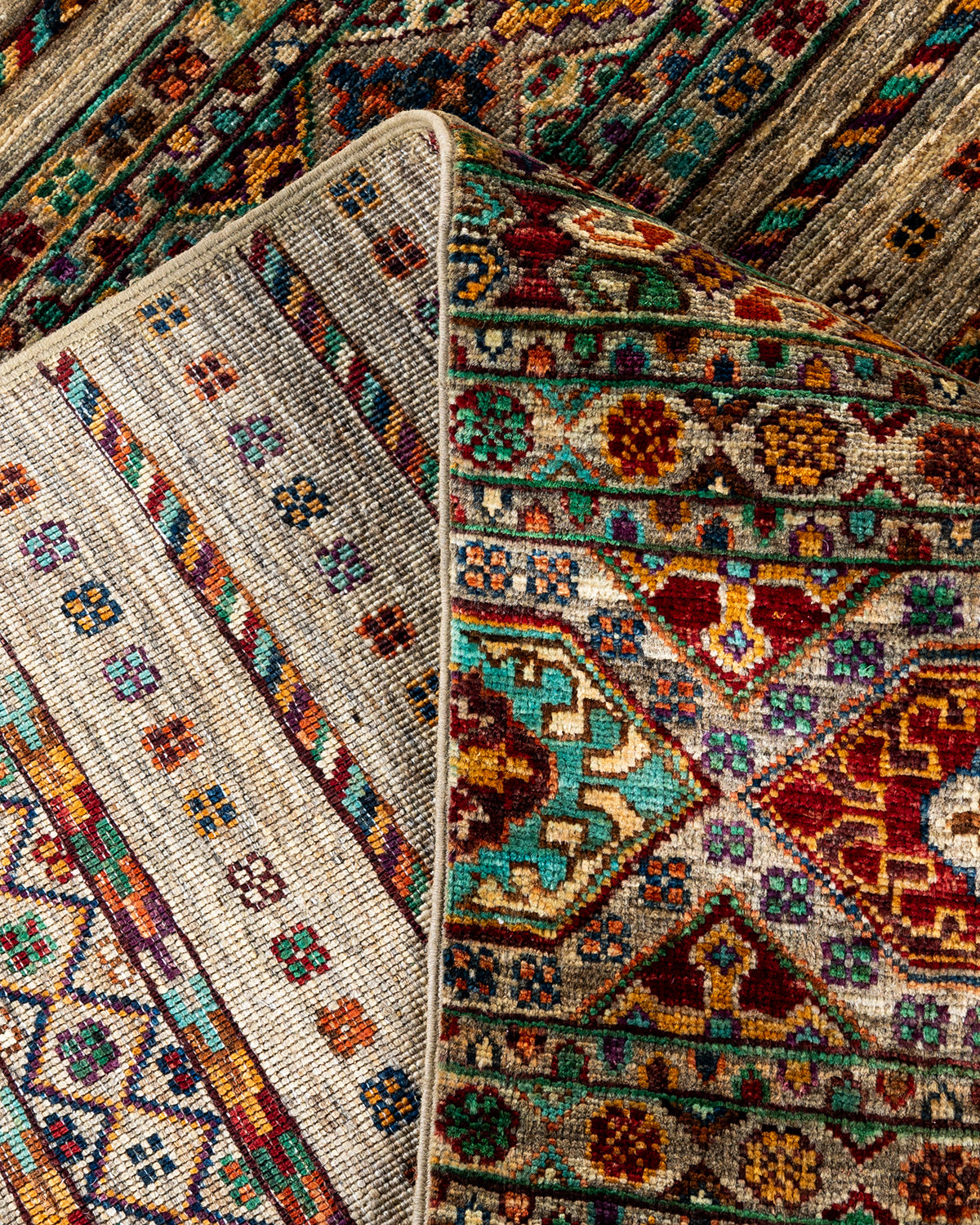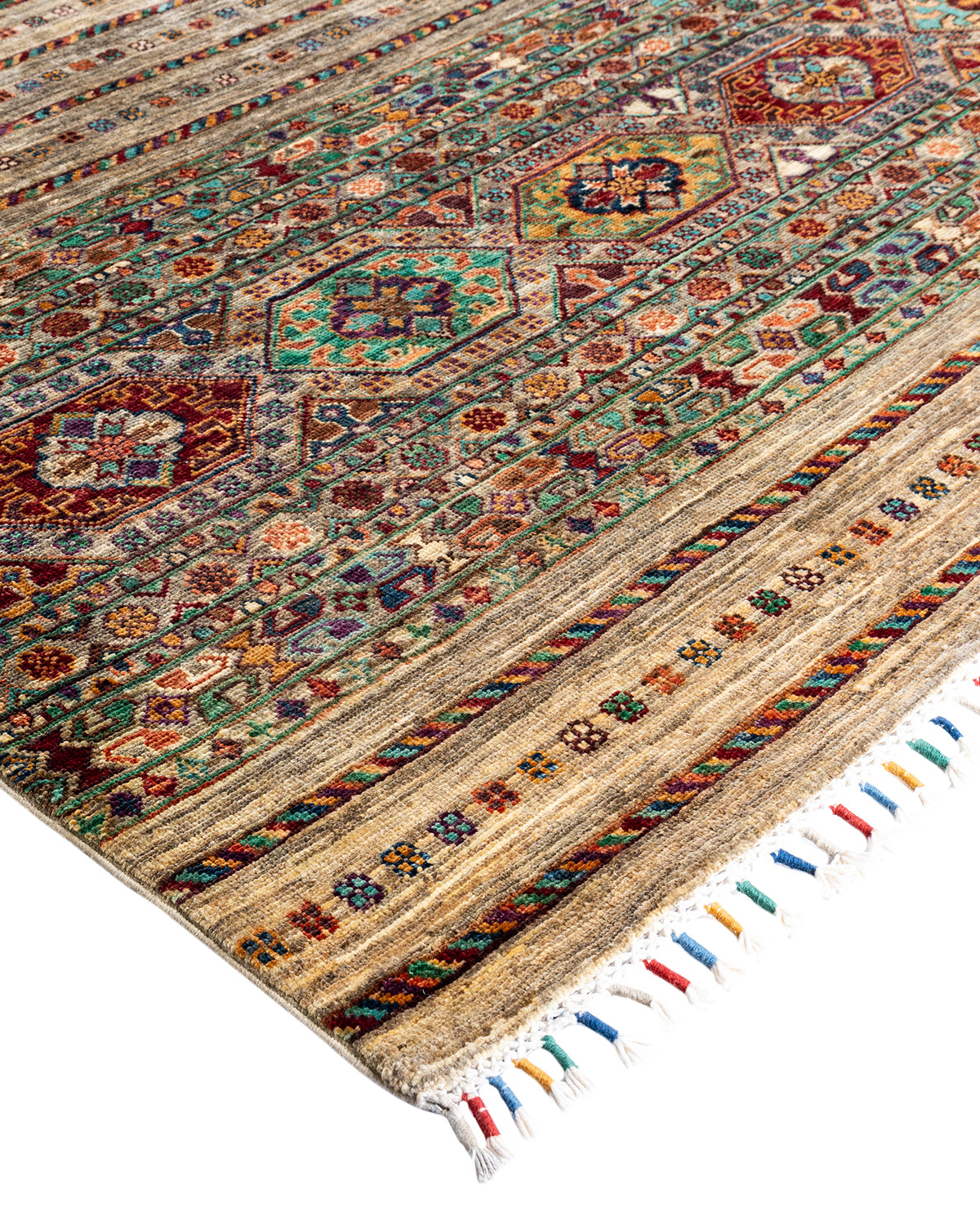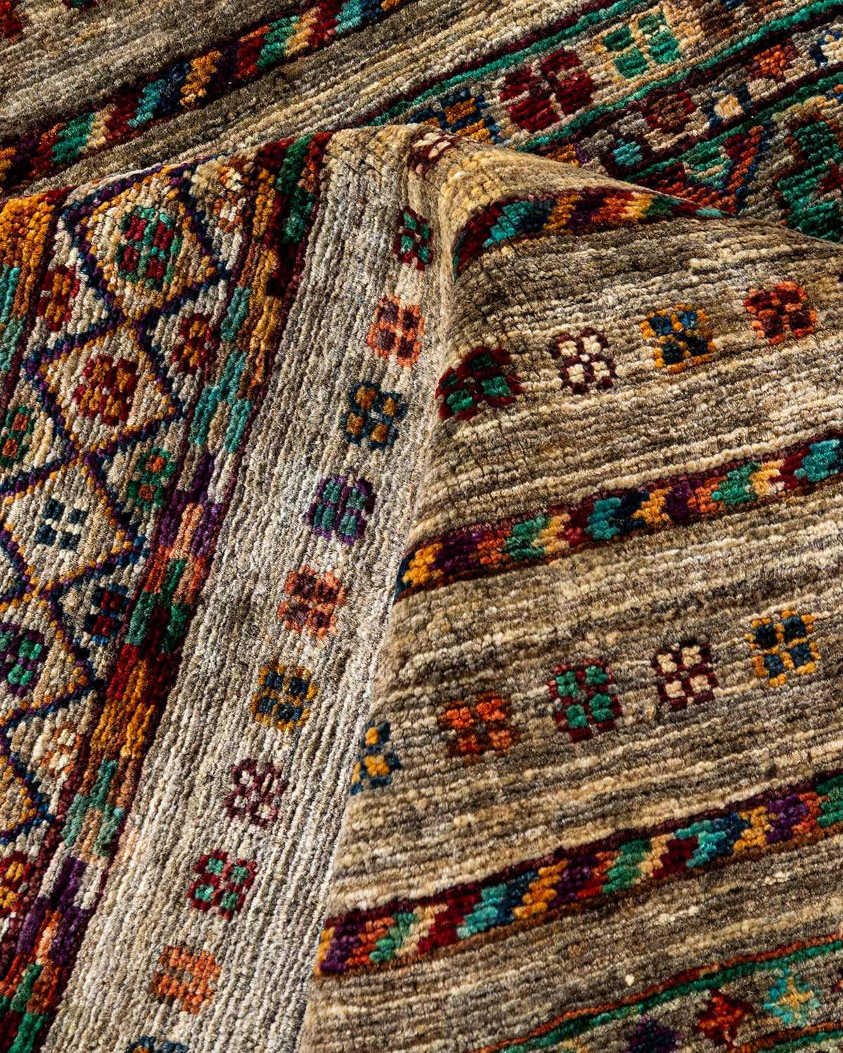 The rich textile tradition of western Africa inspired the Tribal collection of hand-knotted rugs. Incorporating a medley of geometric motifs, in palettes ranging from earthy to vivacious, these rugs bring a sense of energy as well as plush texture to any room.