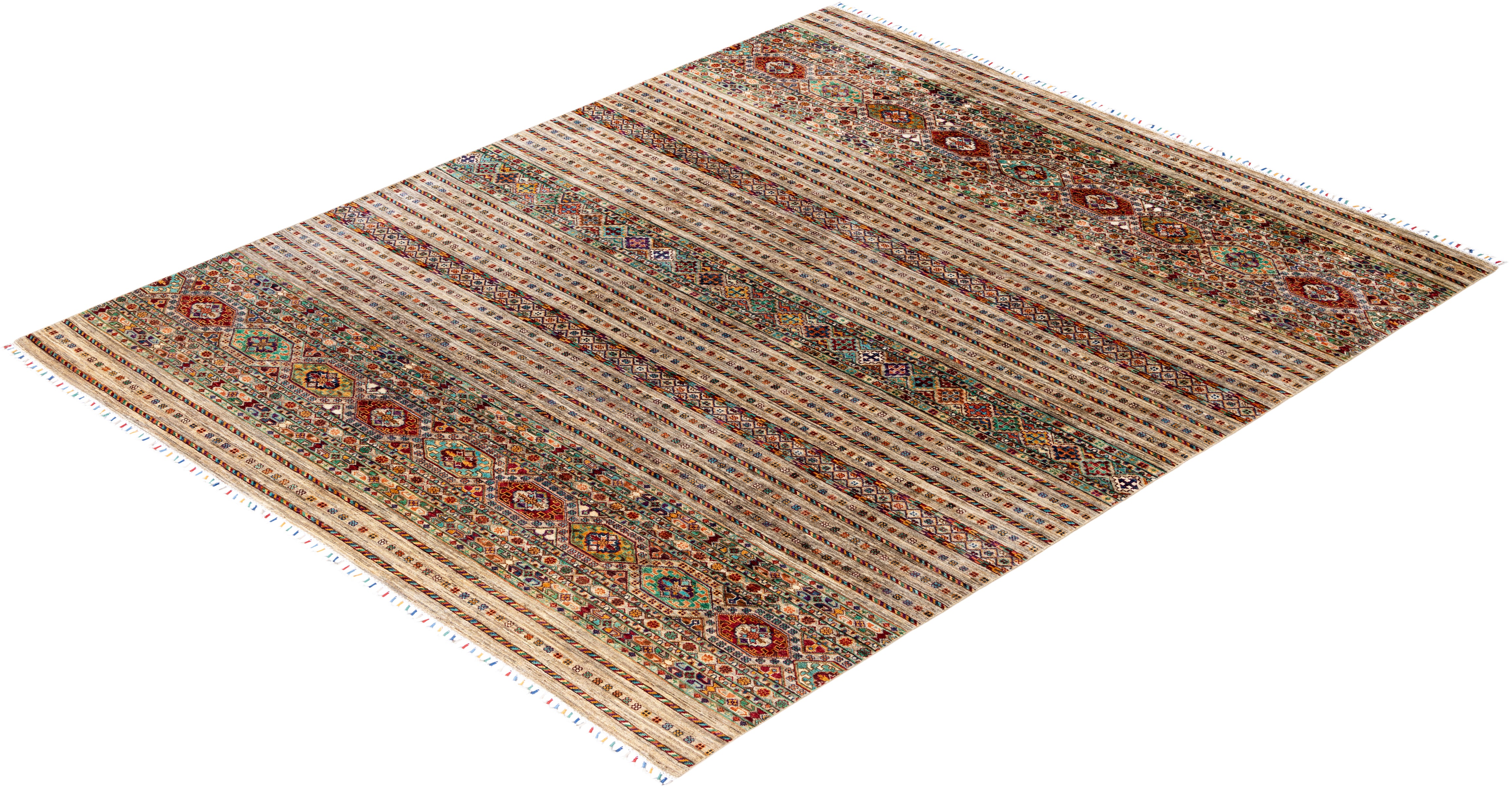 Bohemian Tribal Wool Hand Knotted Brown Area Rug 8' 2" x 9' 10"