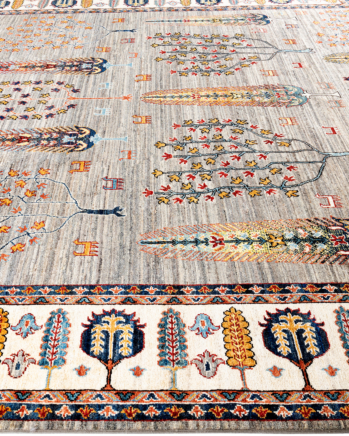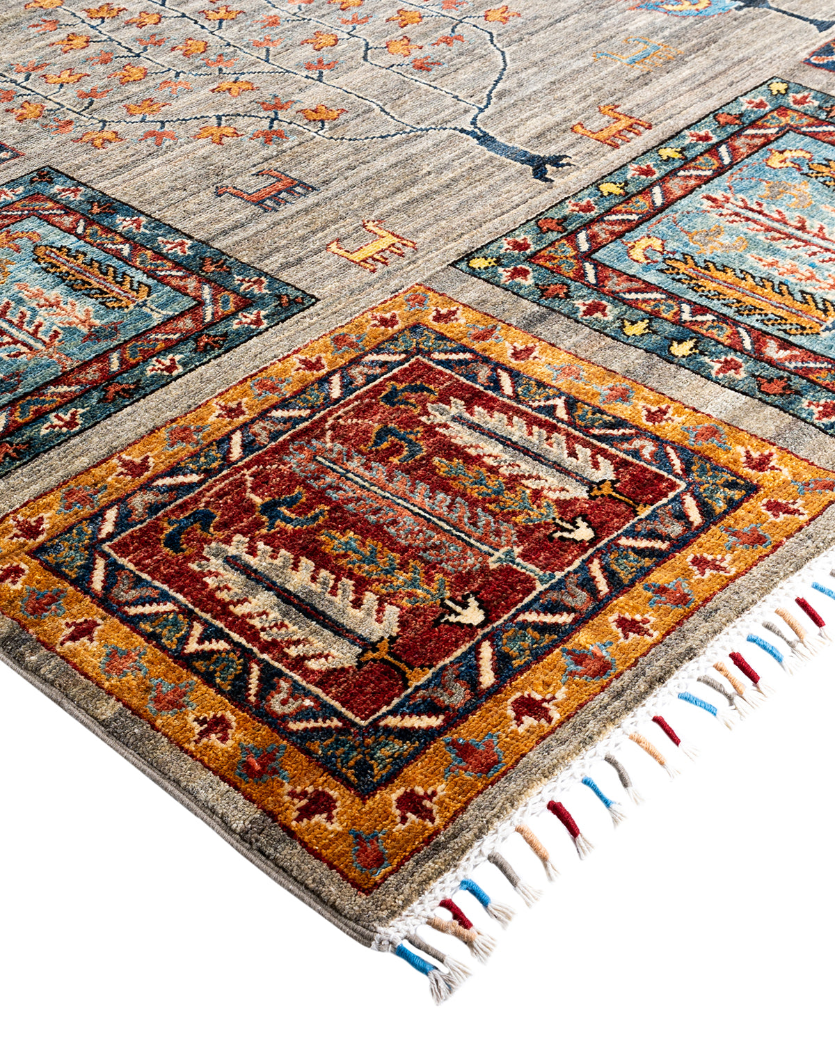 The rich textile tradition of western Africa inspired the Tribal collection of hand-knotted rugs. Incorporating a medley of geometric motifs, in palettes ranging from earthy to vivacious, these rugs bring a sense of energy as well as plush texture to any room.