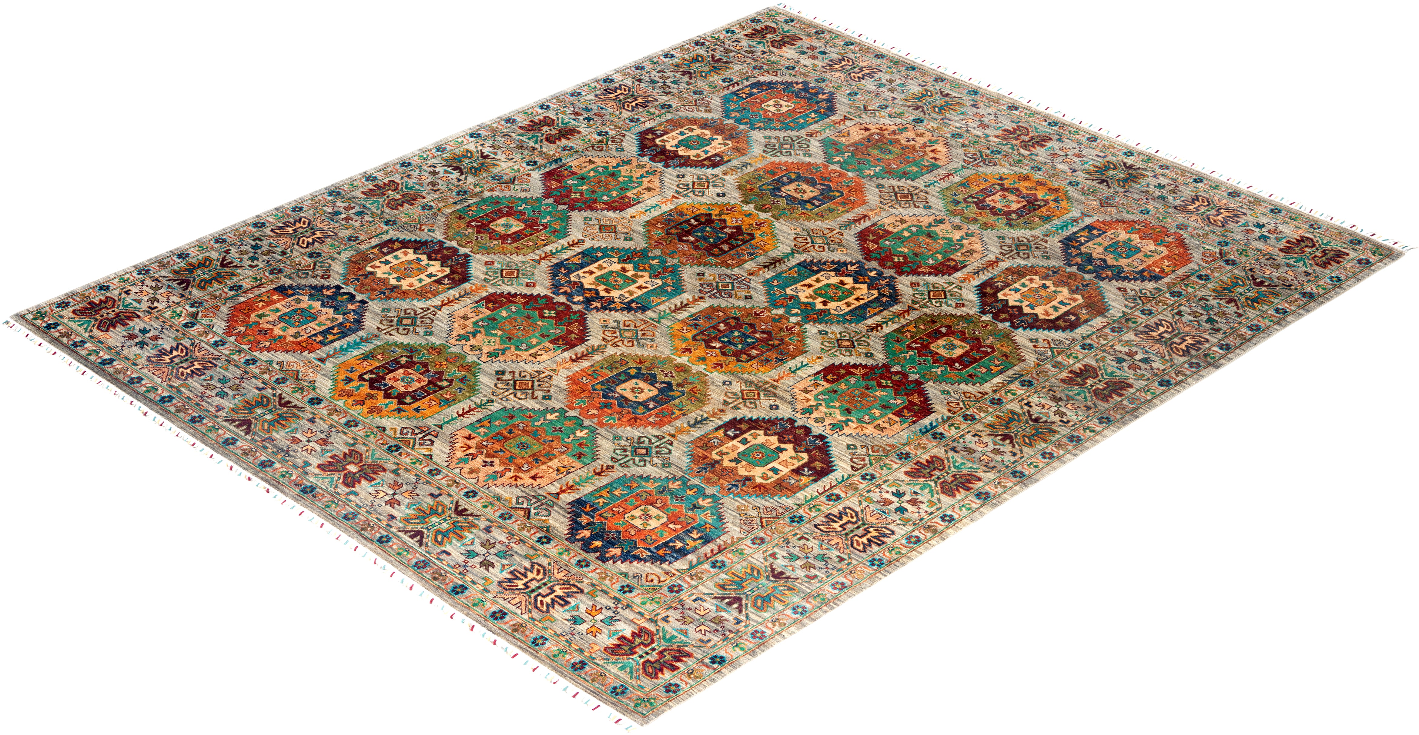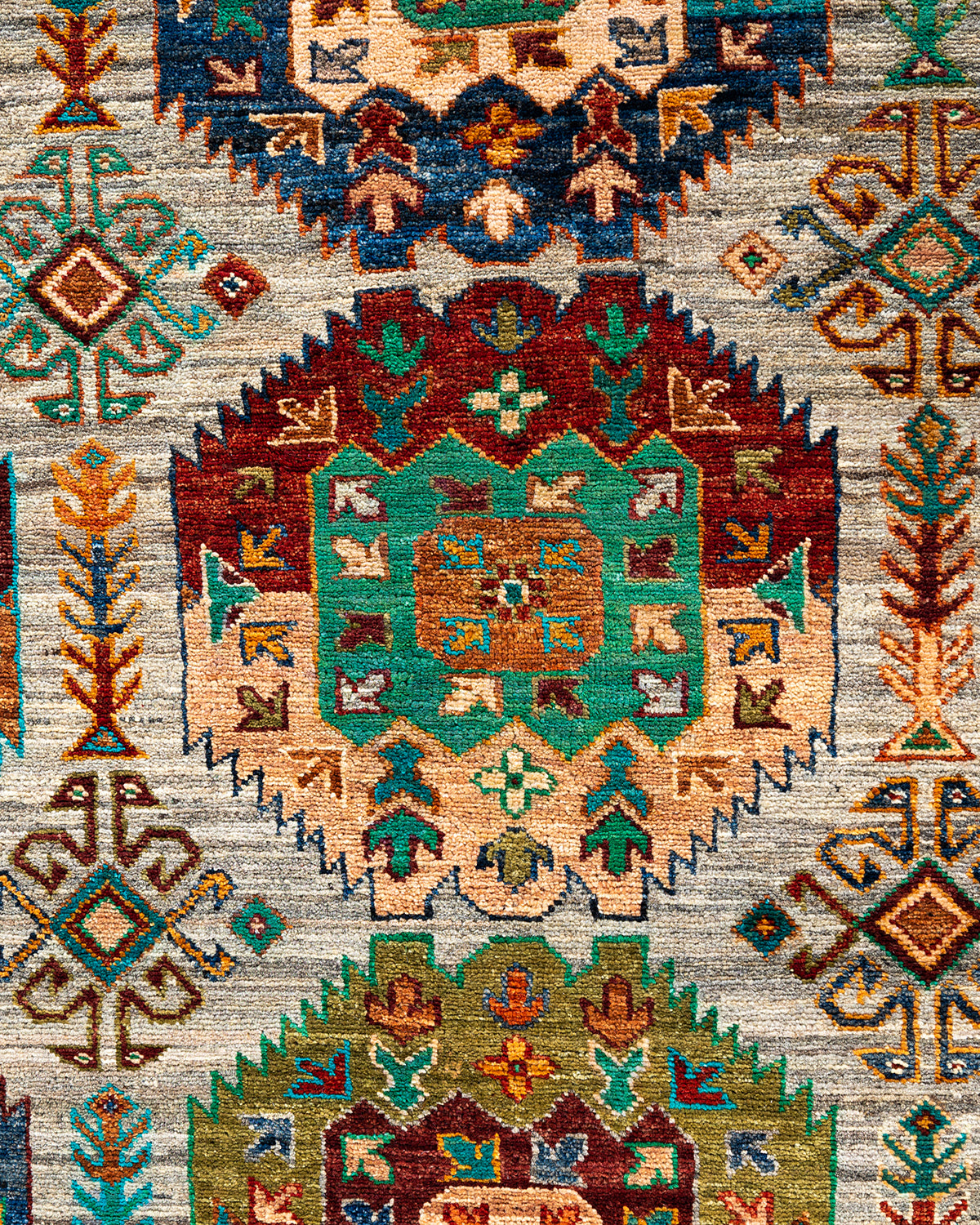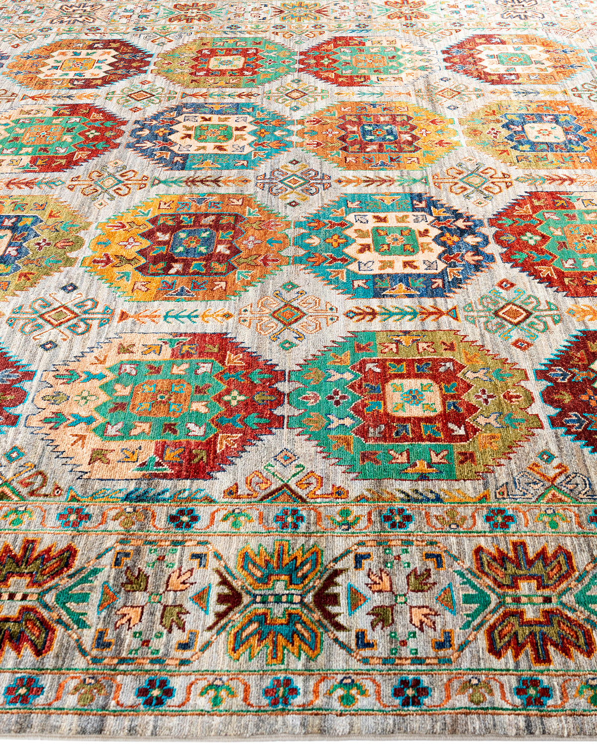 The rich textile tradition of western Africa inspired the Tribal collection of hand-knotted rugs. Incorporating a medley of geometric motifs, in palettes ranging from earthy to vivacious, these rugs bring a sense of energy as well as plush texture to any room.