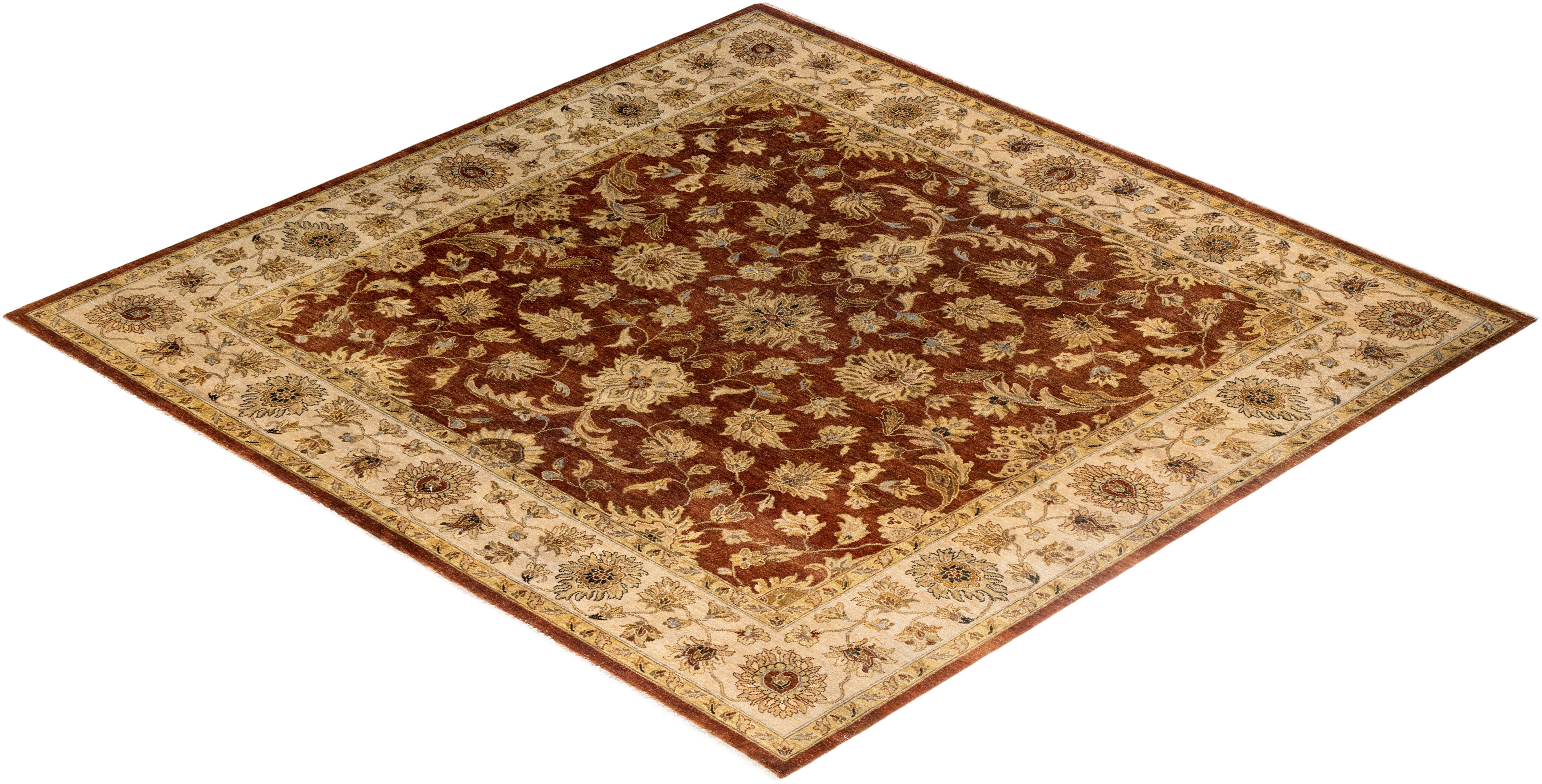 Traditional Oushak Hand Knotted Floral Wool Brown Area Rug 9' 1" x 9' 1"