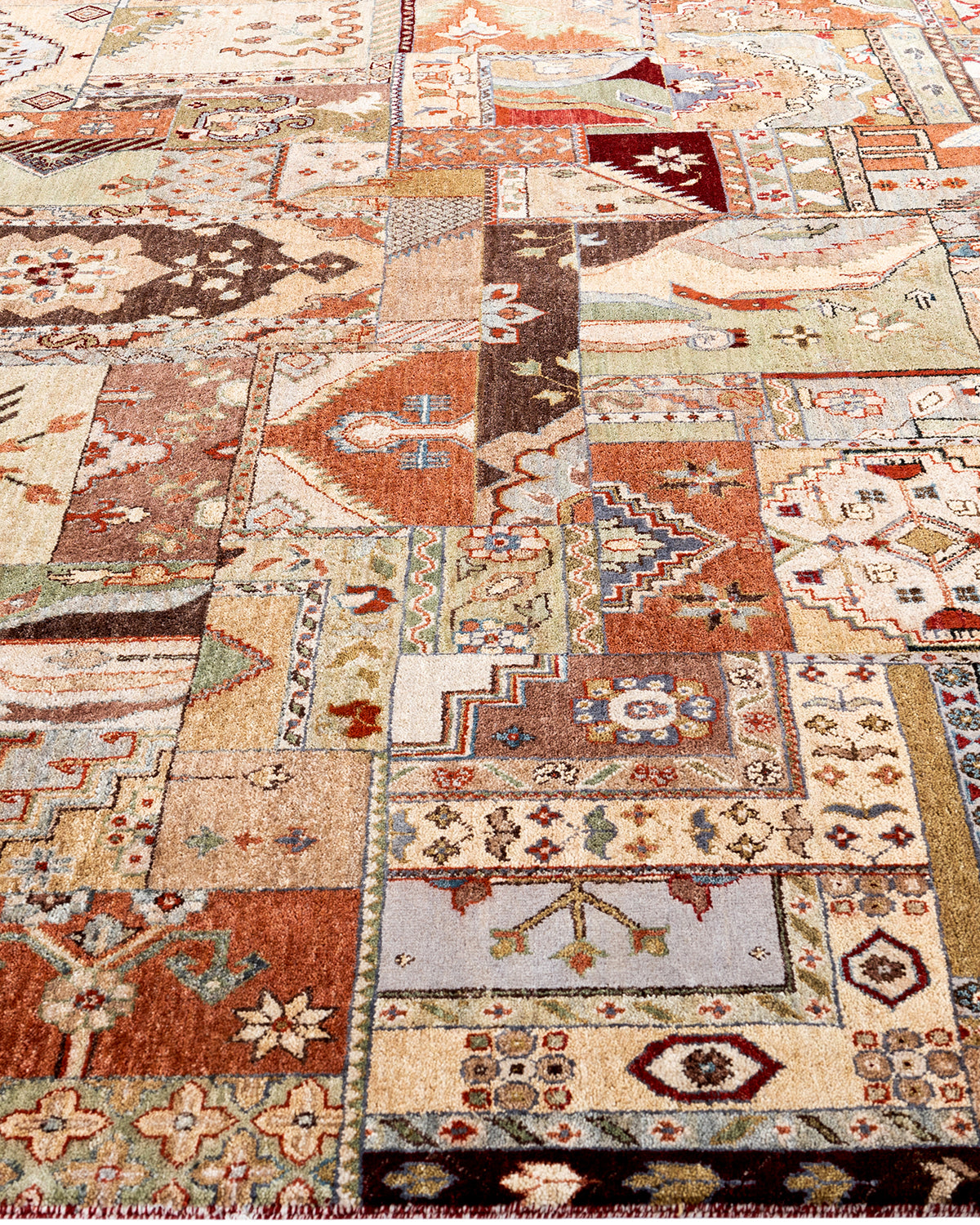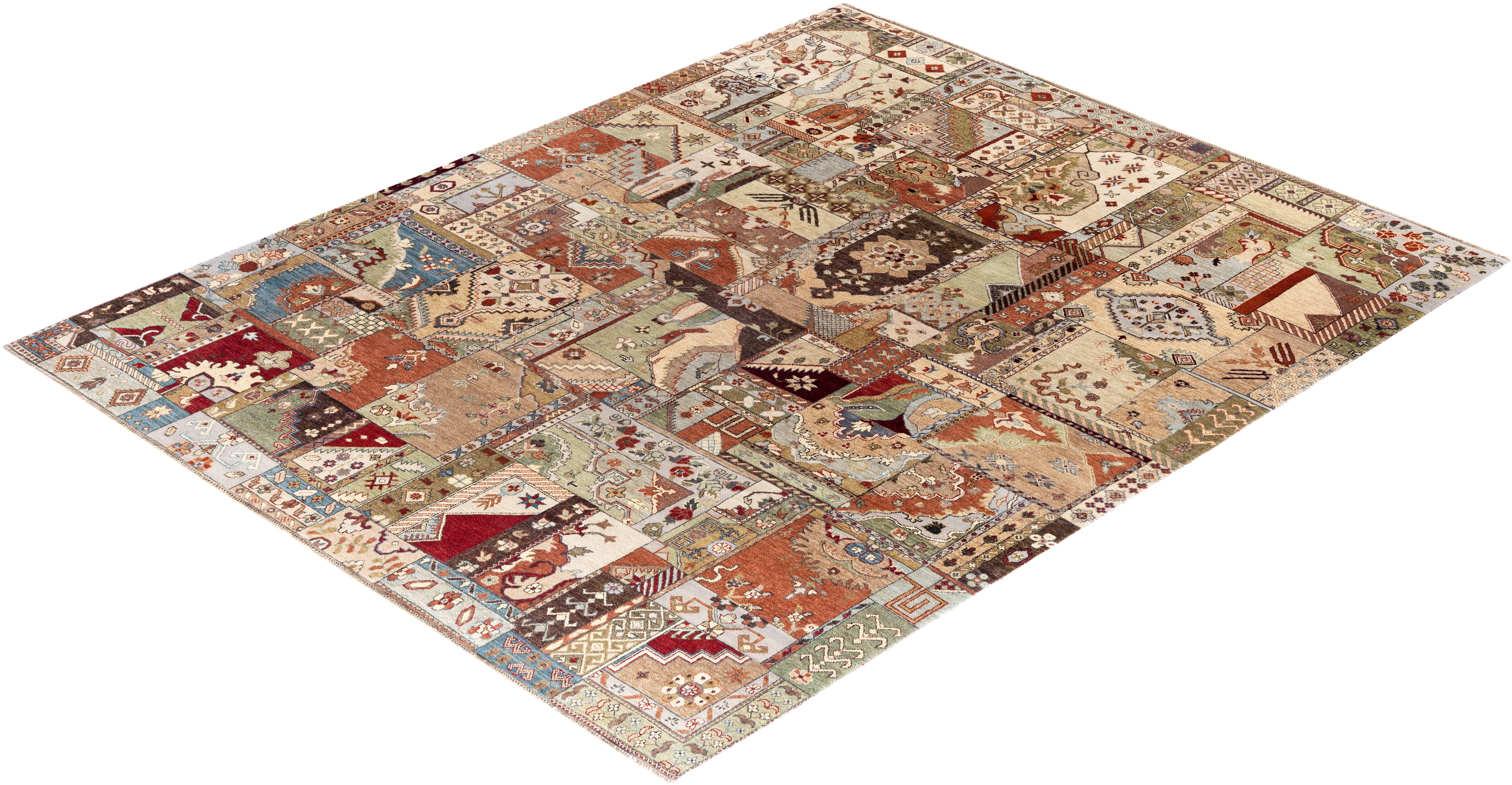 Traditional Patchwork Hand Knotted Patchwork Wool Brown Area Rug 8' 3" x 10' 3"