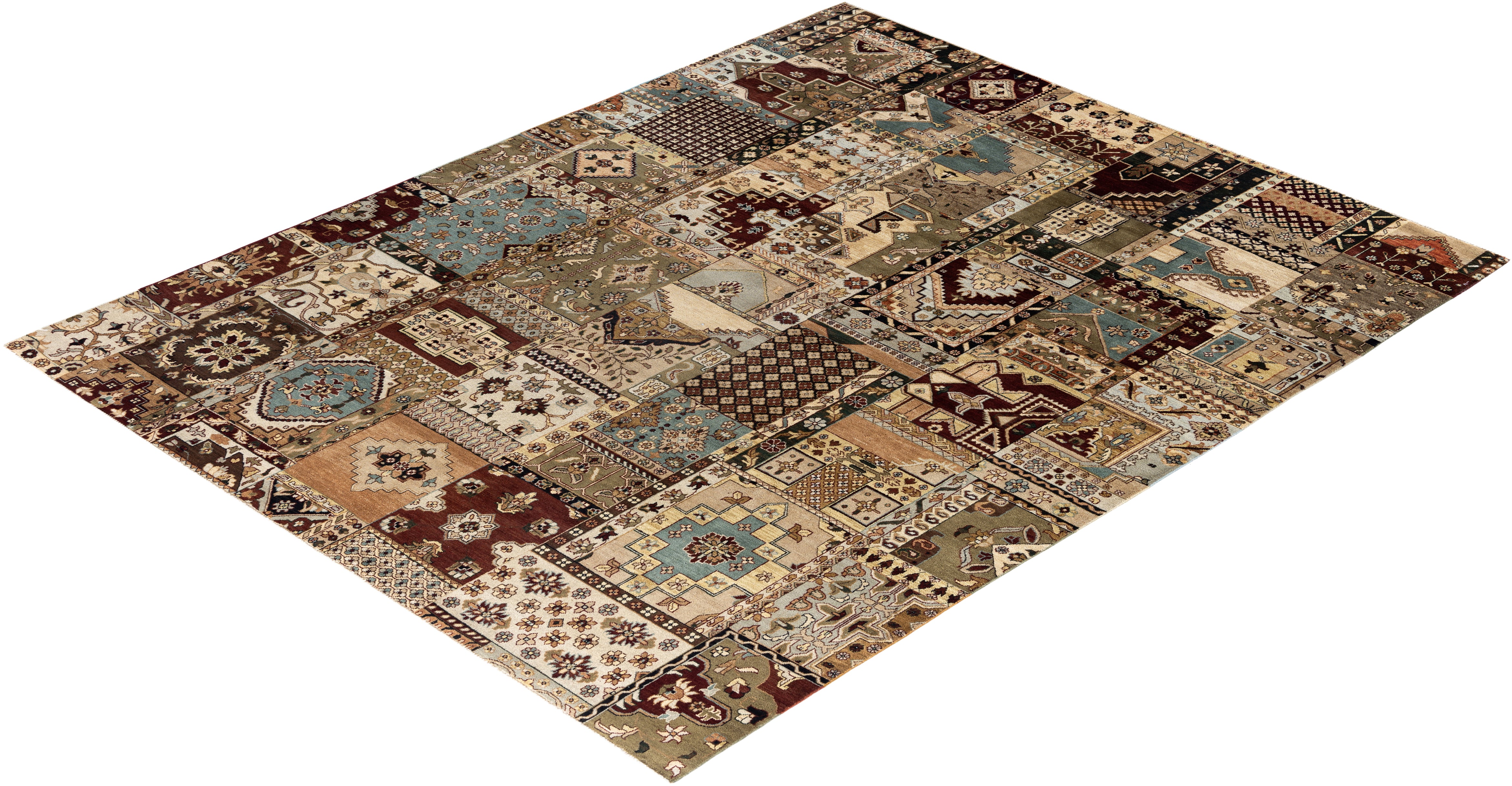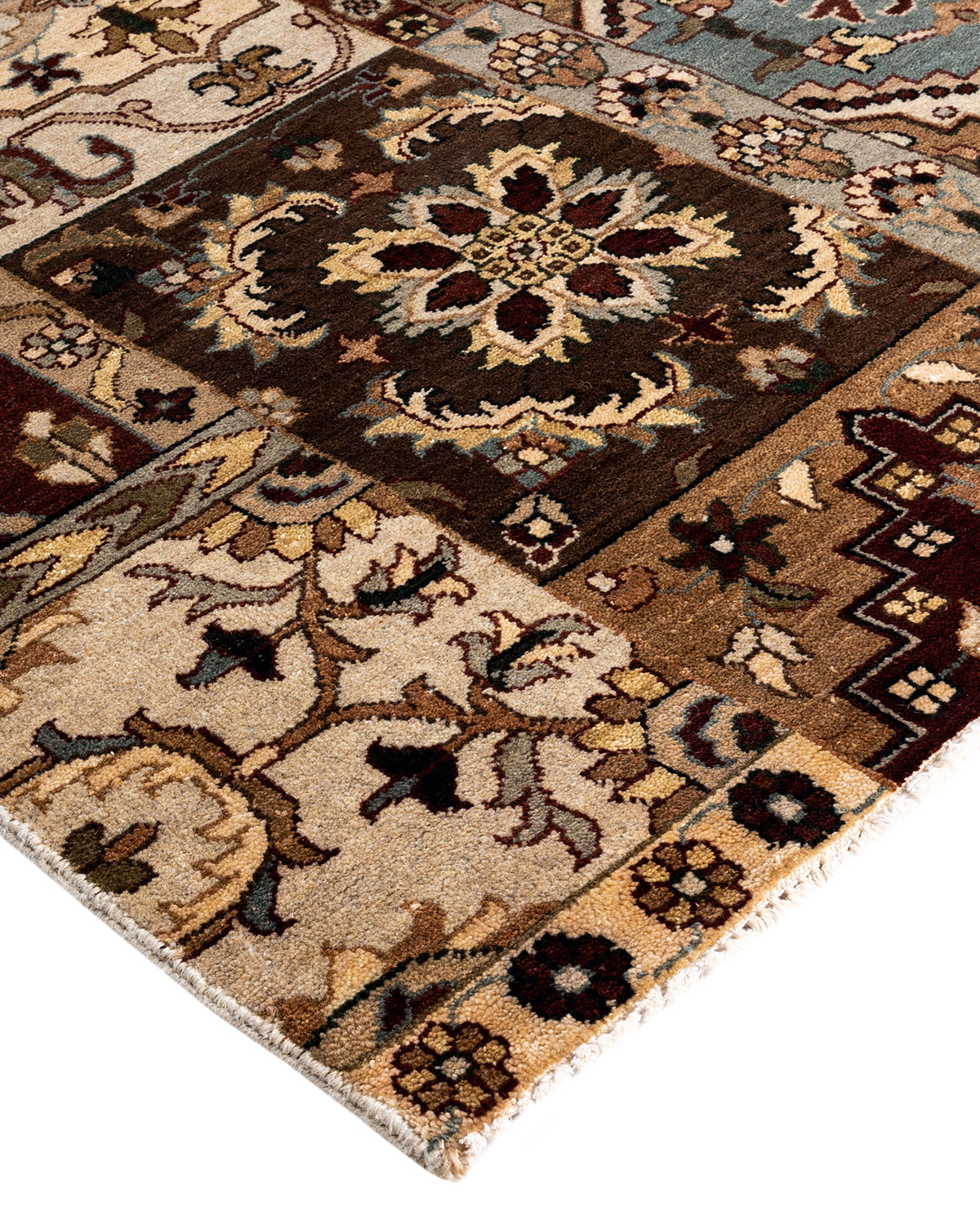 Traditional Ikat Hand Knotted Patchwork Wool Brown Area Rug 8' 0" x 10' 2"