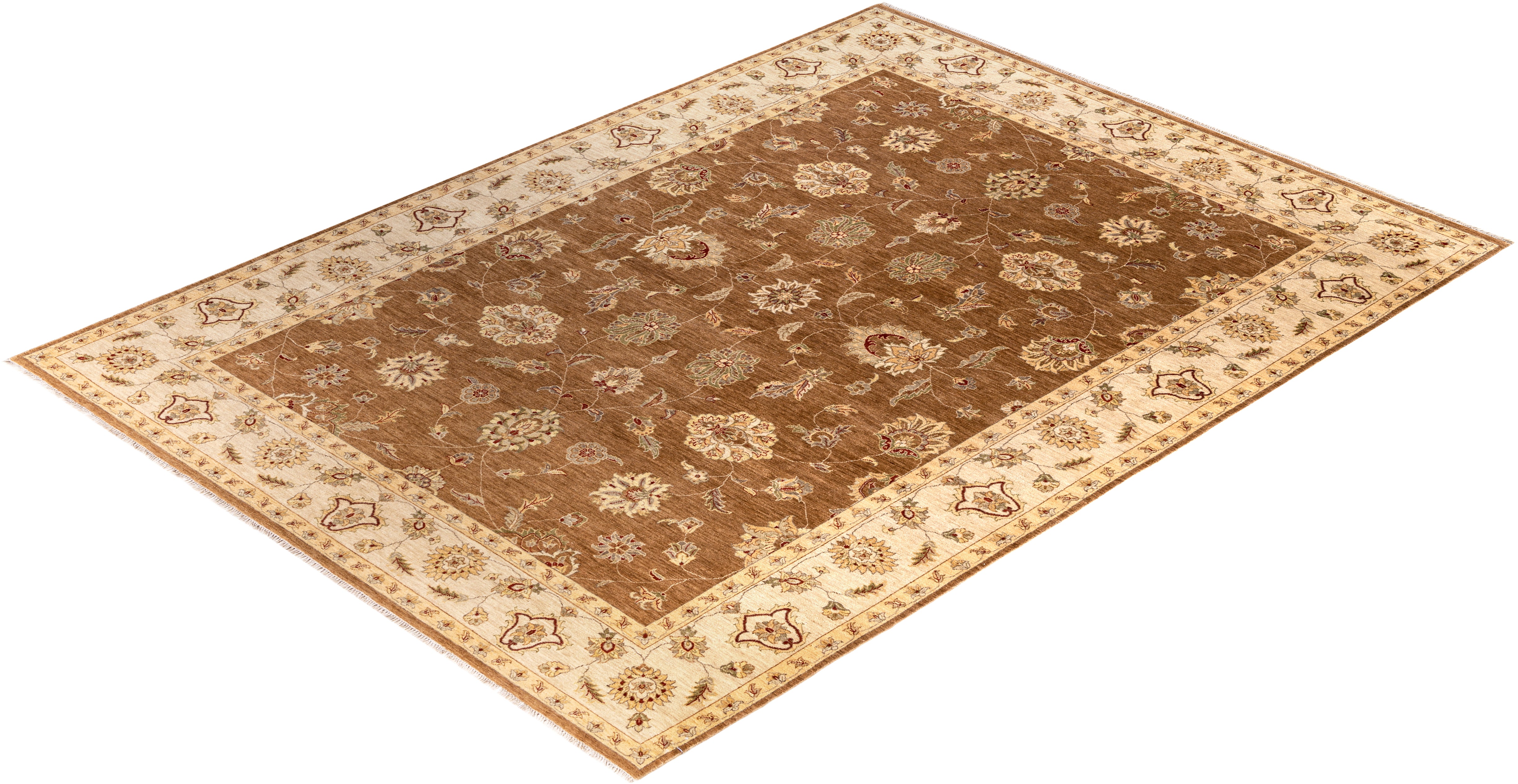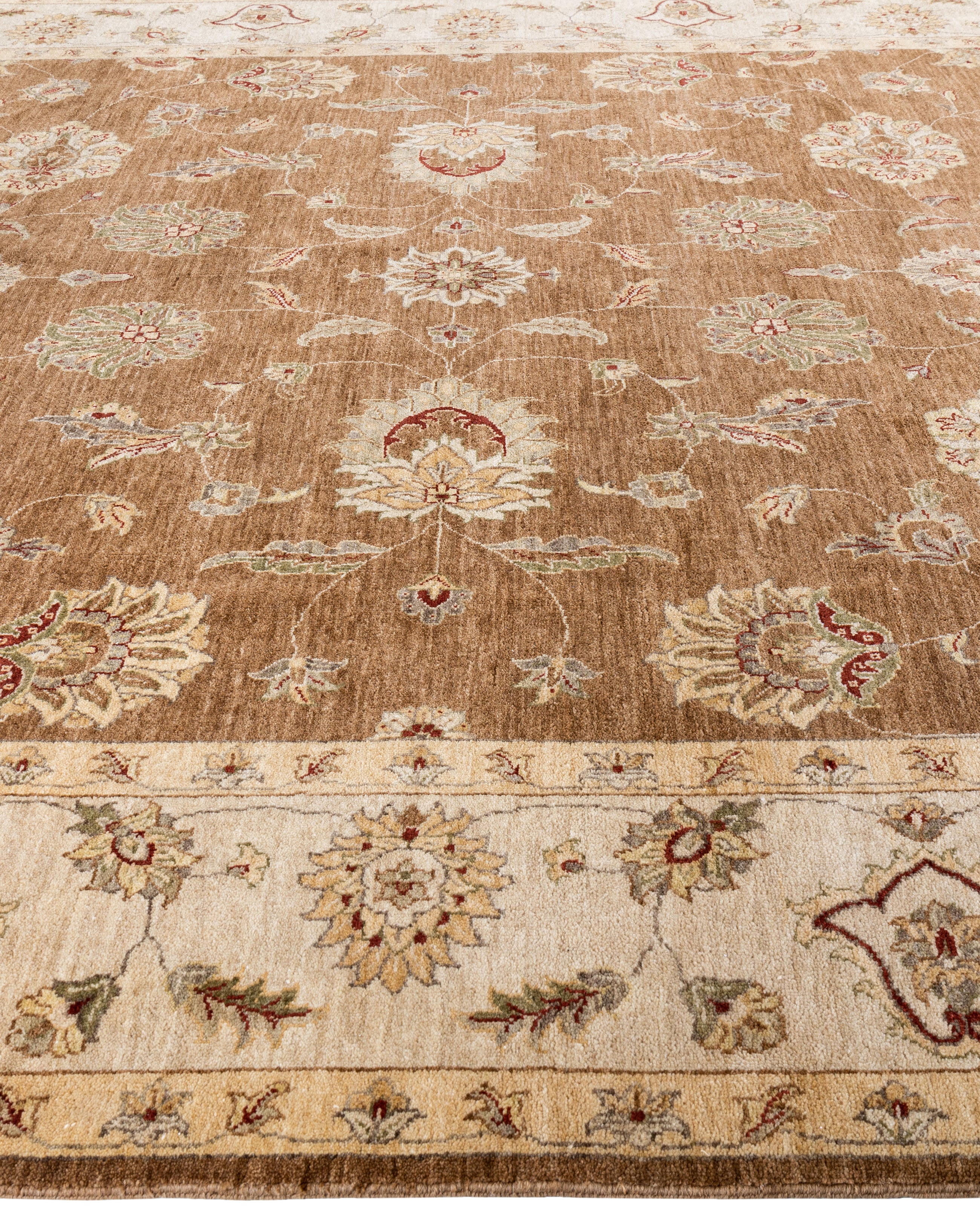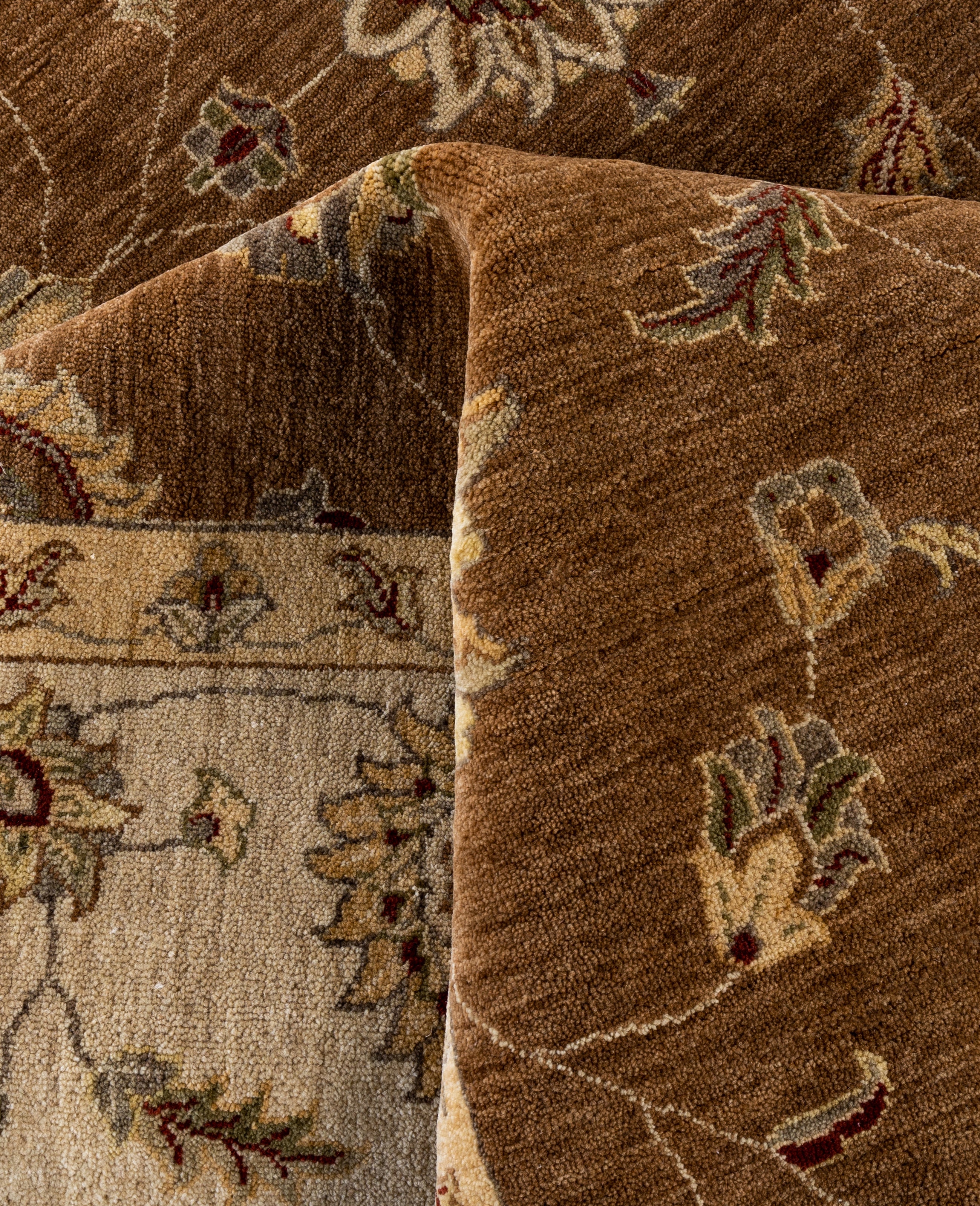 Traditional Floral Wool Hand Knotted Brown Area Rug 8' 10" x 12' 3"
