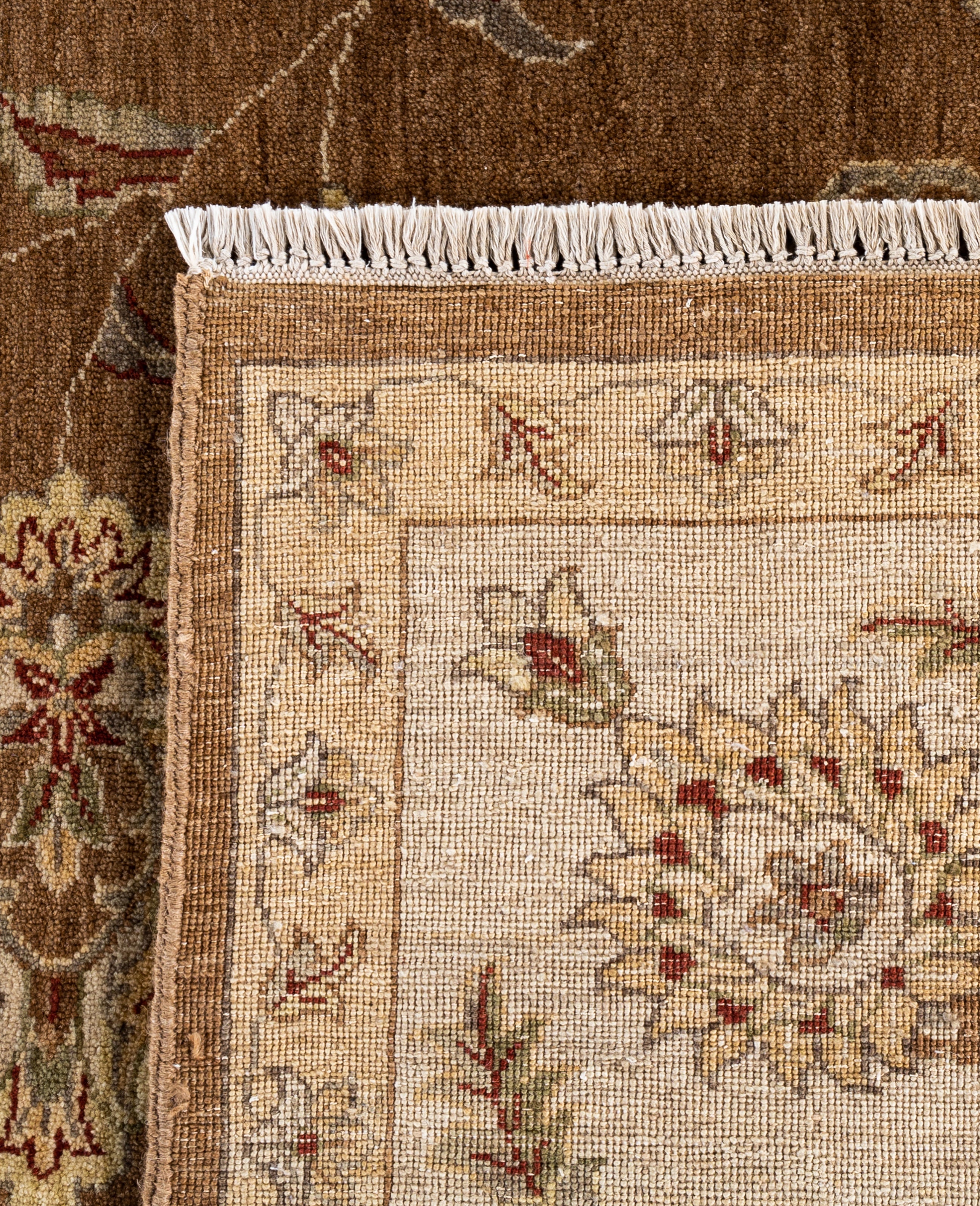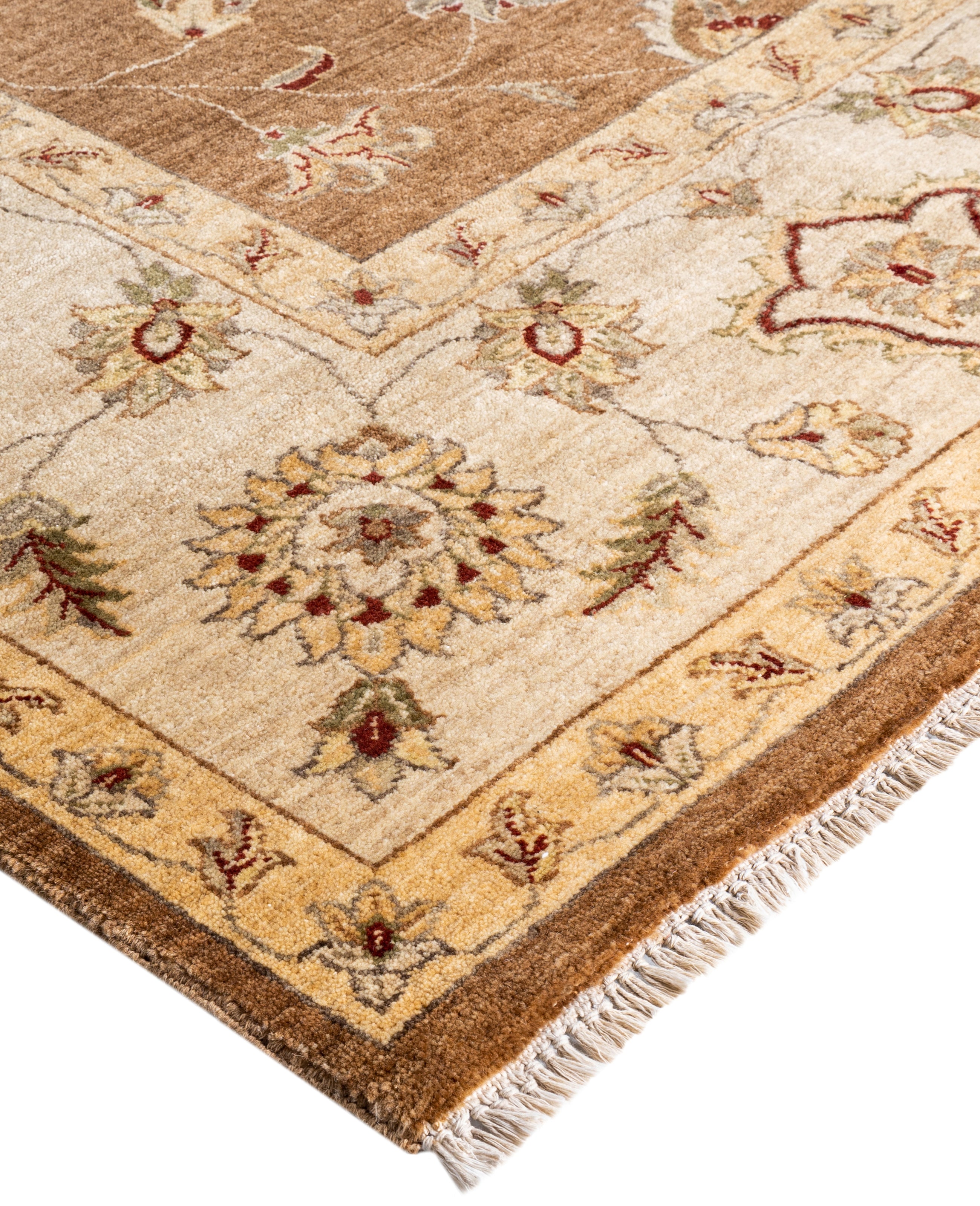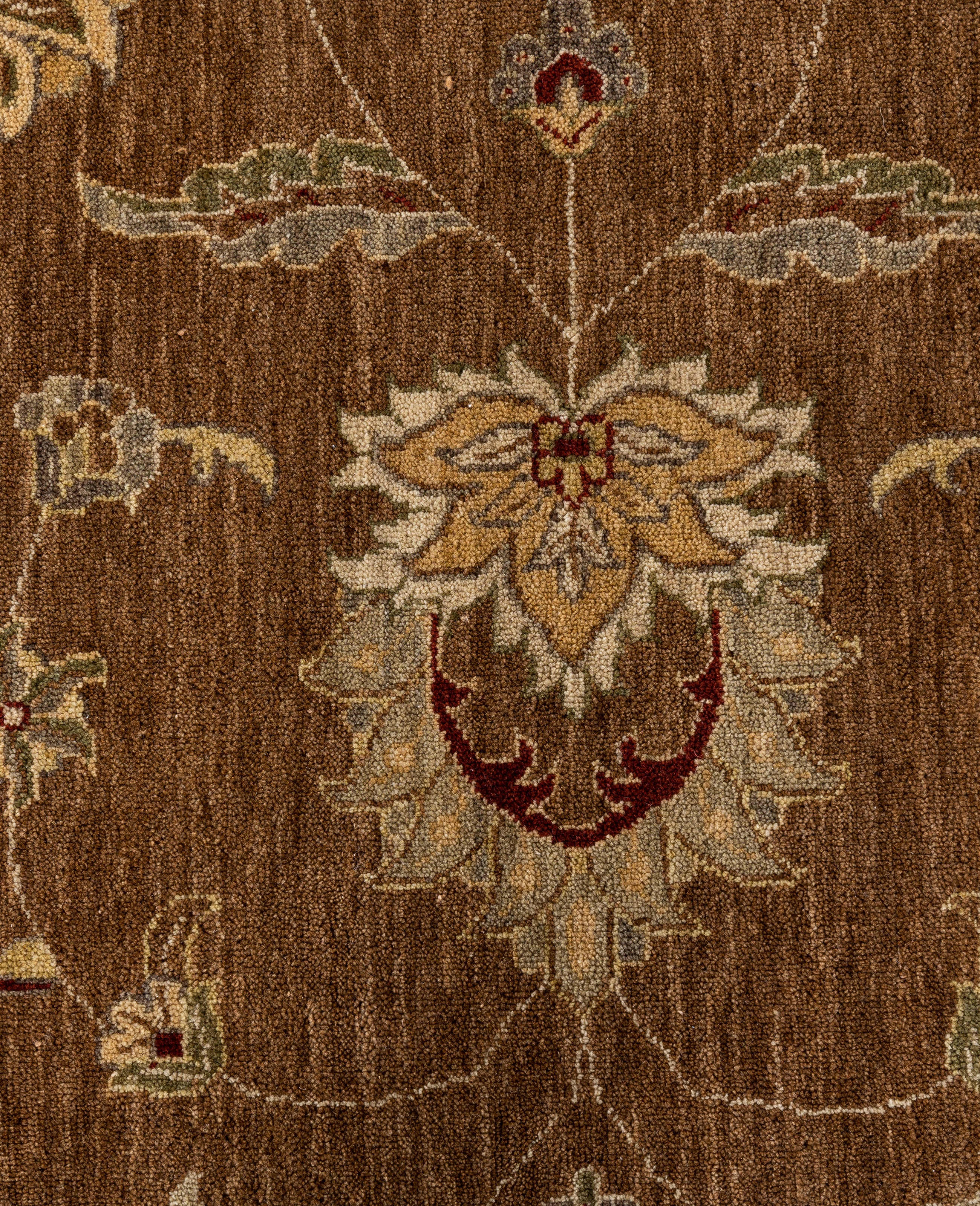 Traditional Floral Wool Hand Knotted Brown Area Rug 8' 10" x 12' 3"