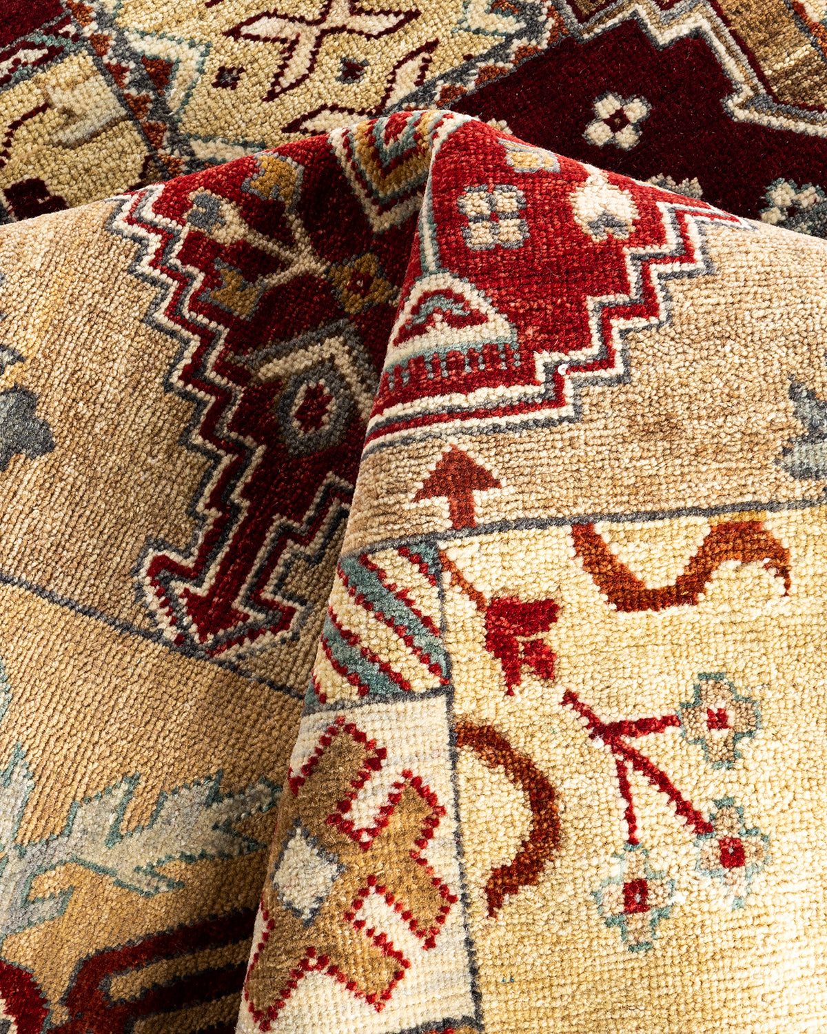 Kazak rugs have been sought after for generations, their unique design aesthetic a captivating combination of tribal history and geographic influence. Intricately hand-knotted from wool, the medallions, allover patterns, and central design reflect the inspiration the weavers drew from Caucasian rugs. A vivacious use of color, including brilliant reds, navies and ivories make these compelling, timeless additions to any room.
