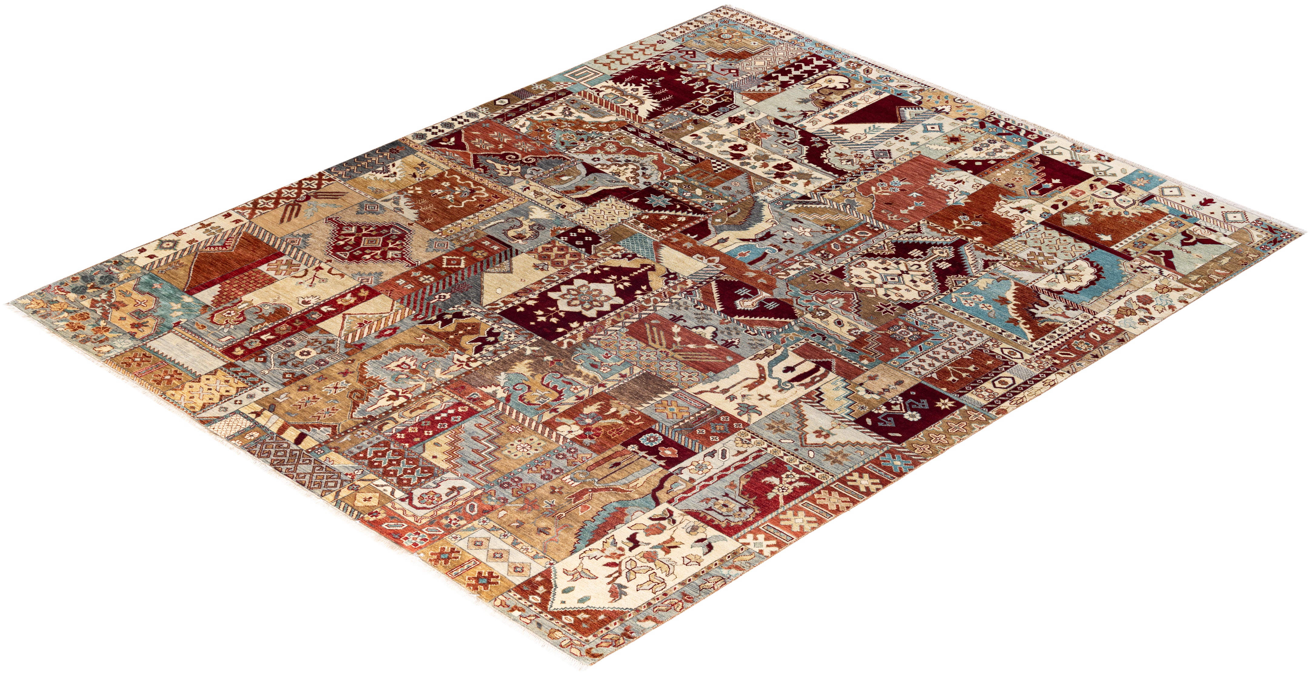 Traditional Patchwork Hand Knotted Patchwork Wool Brown Area Rug 8' 2" x 10' 2"