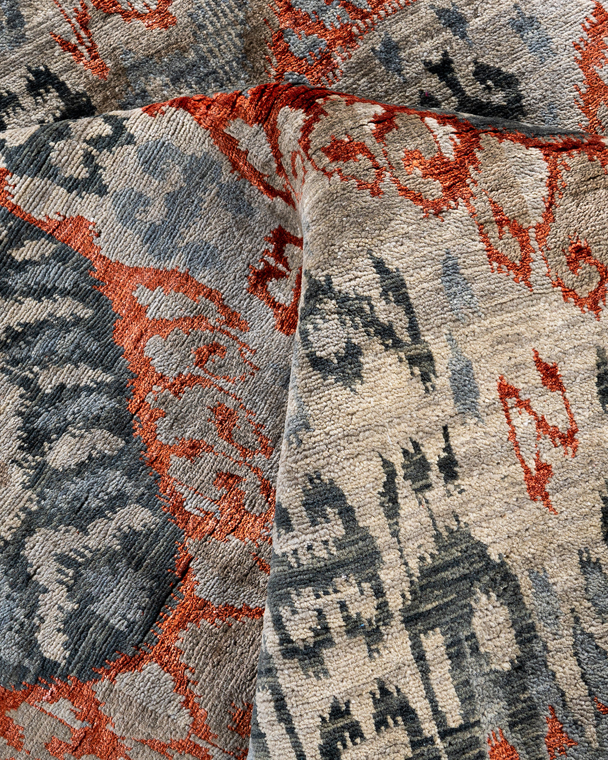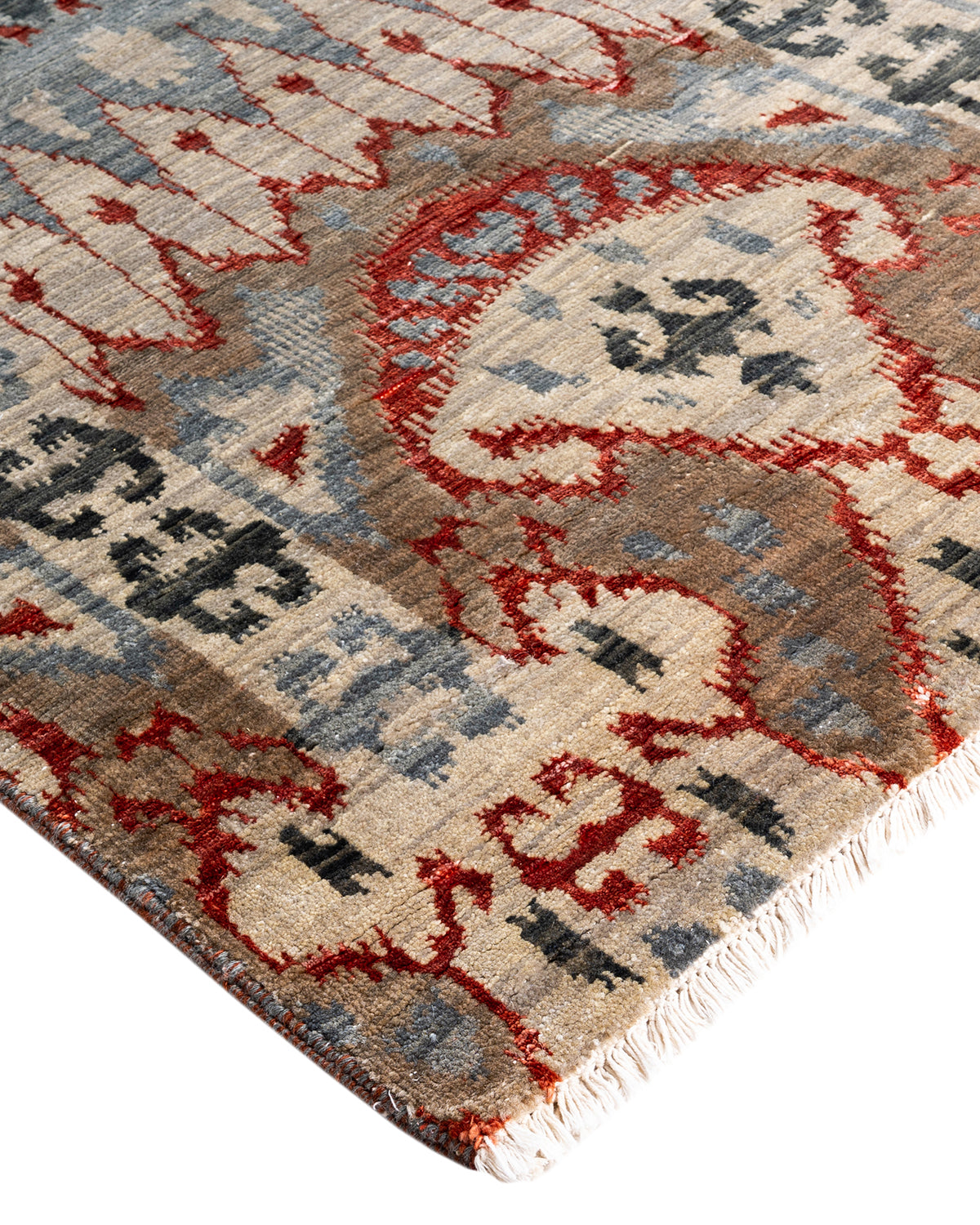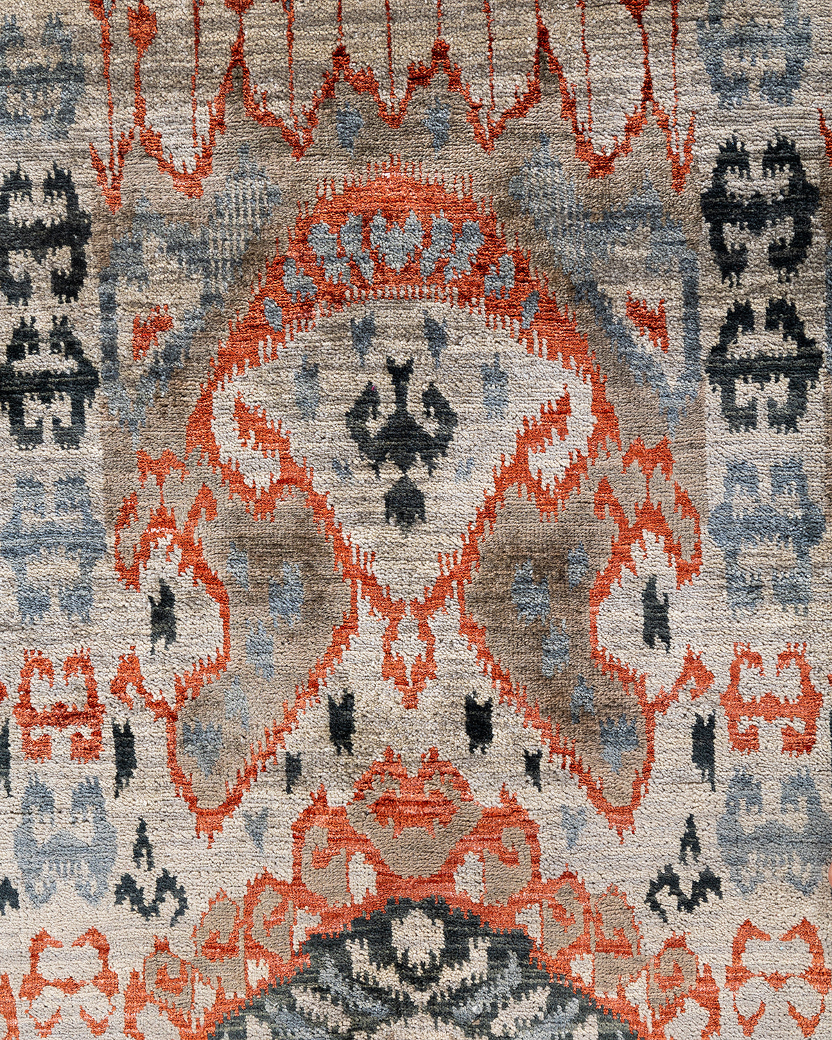 Traditional Ikat Hand Knotted Floral Silk & Wool Blend Brown Area Rug 9' 0" x 11' 10"