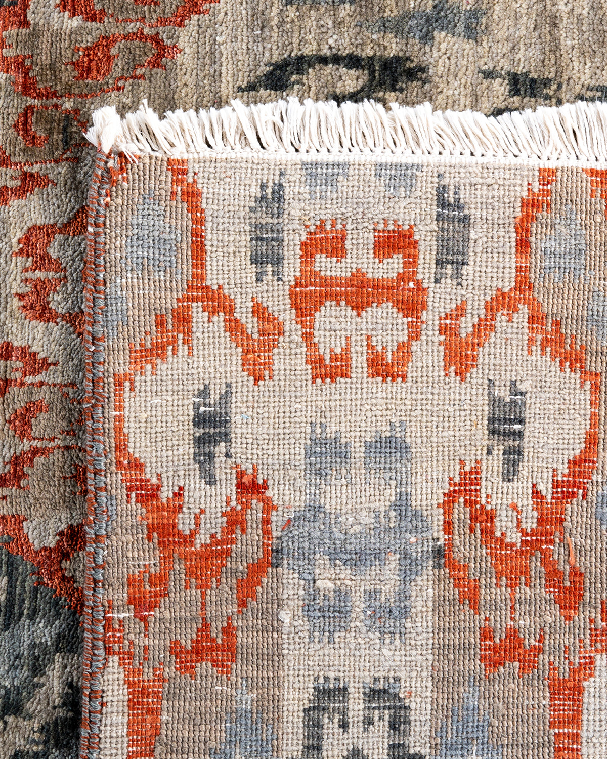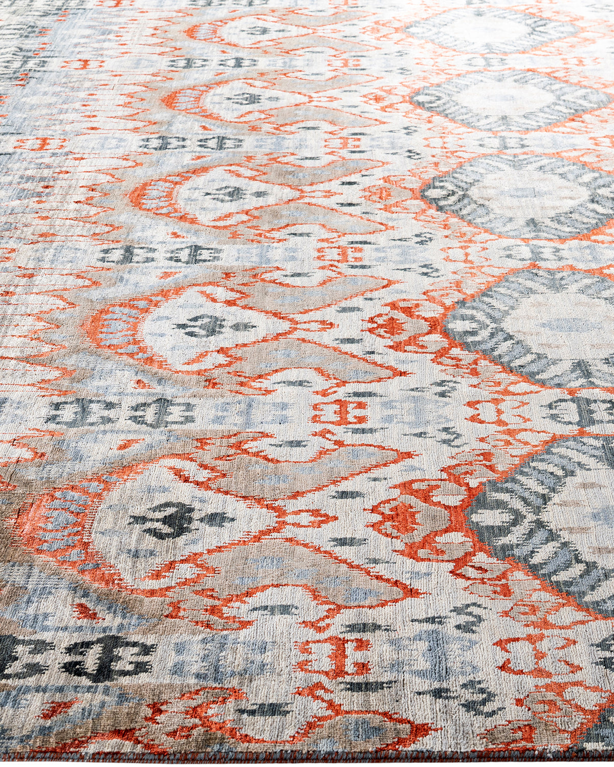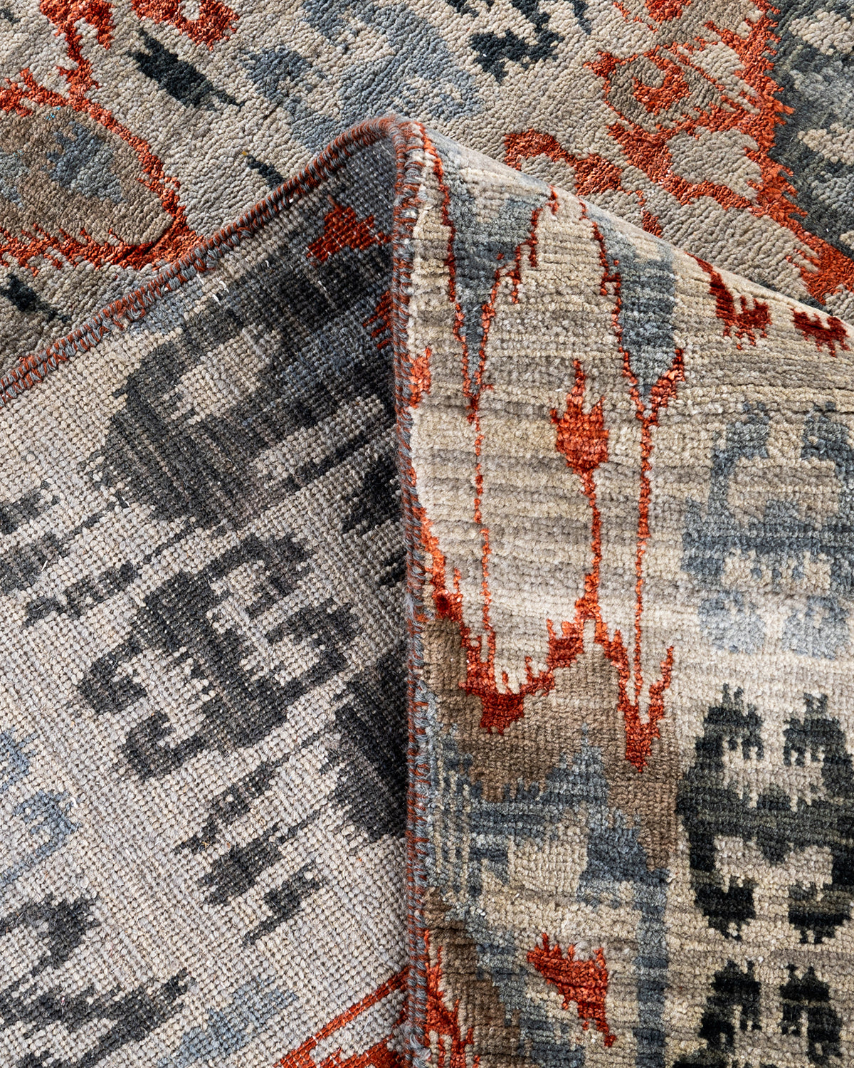 Traditional Ikat Hand Knotted Floral Silk & Wool Blend Brown Area Rug 9' 0" x 11' 10"