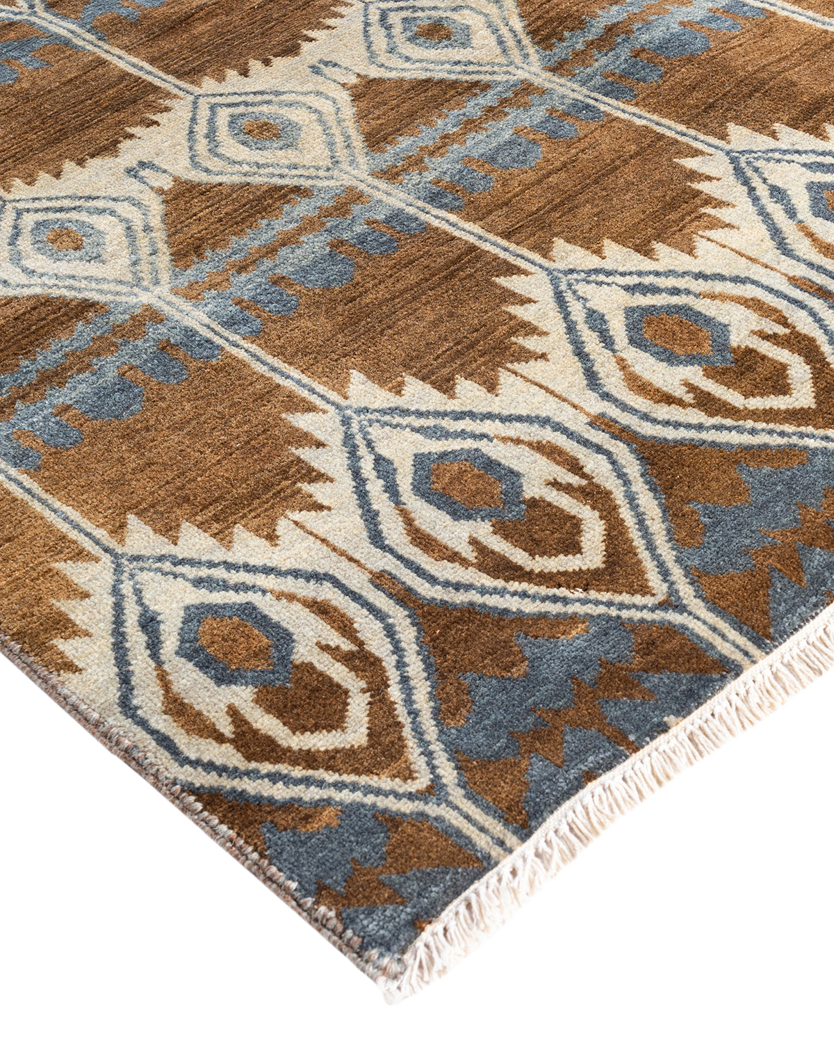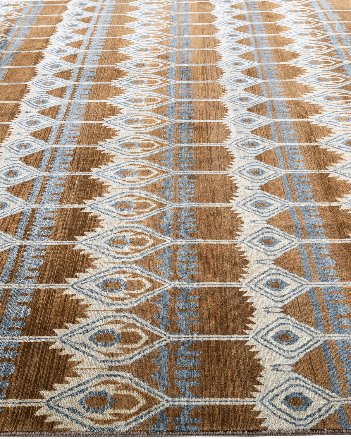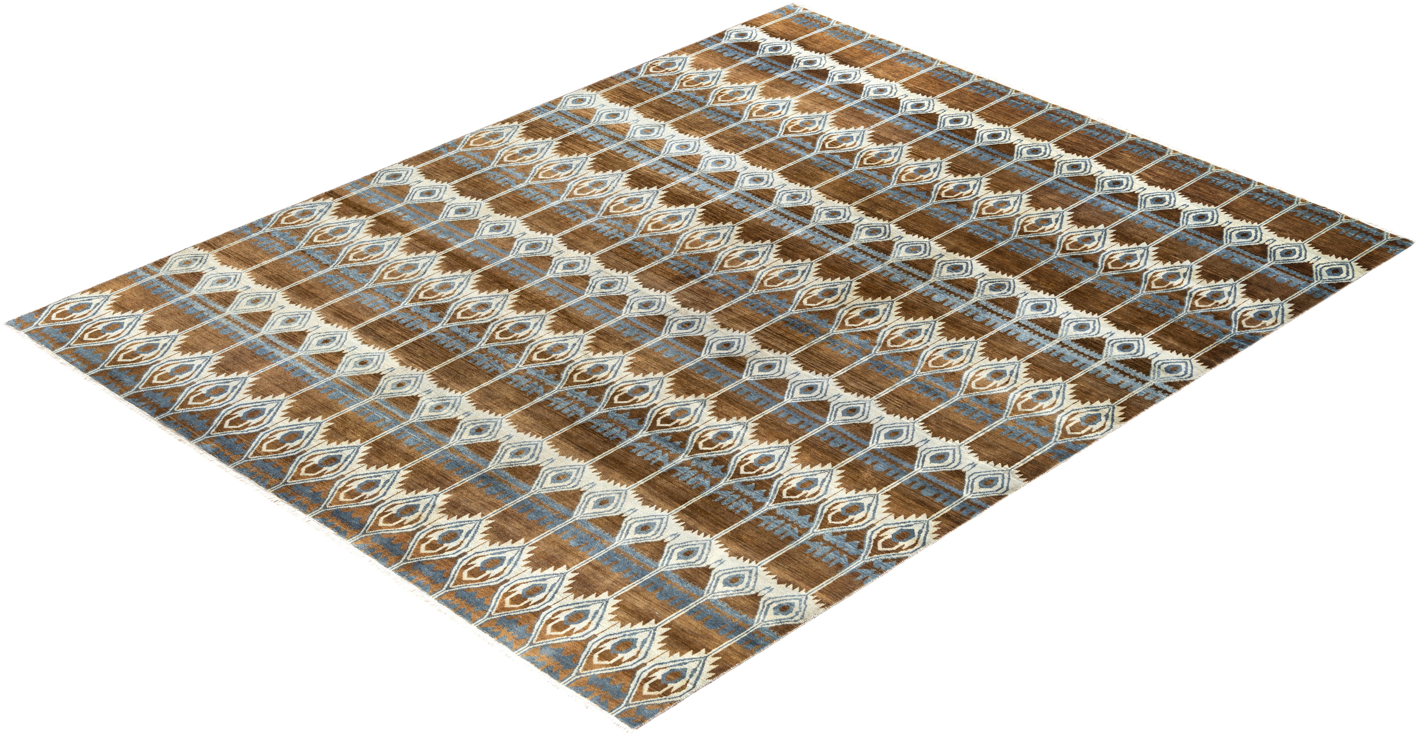 Traditional Ikat Hand Knotted Floral Wool Brown Area Rug 8' 2" x 10' 2"