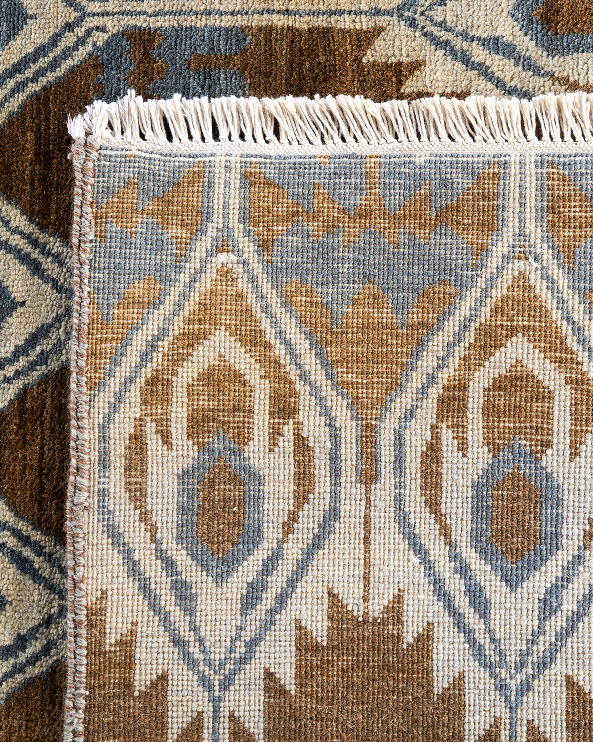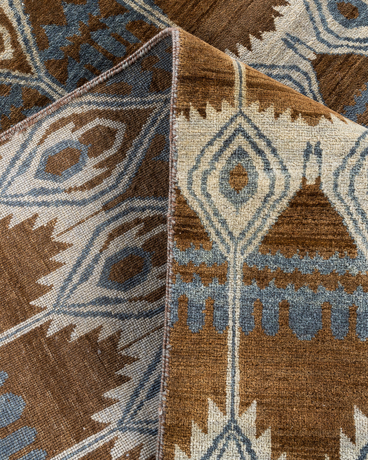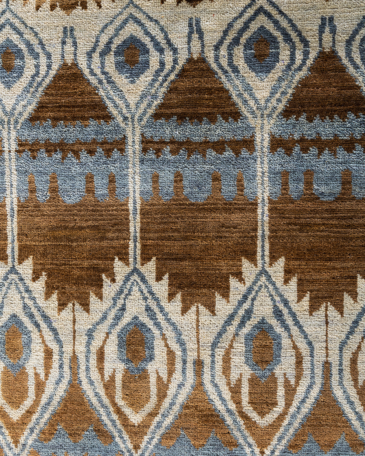 Traditional Ikat Hand Knotted Floral Wool Brown Area Rug 8' 2" x 10' 2"