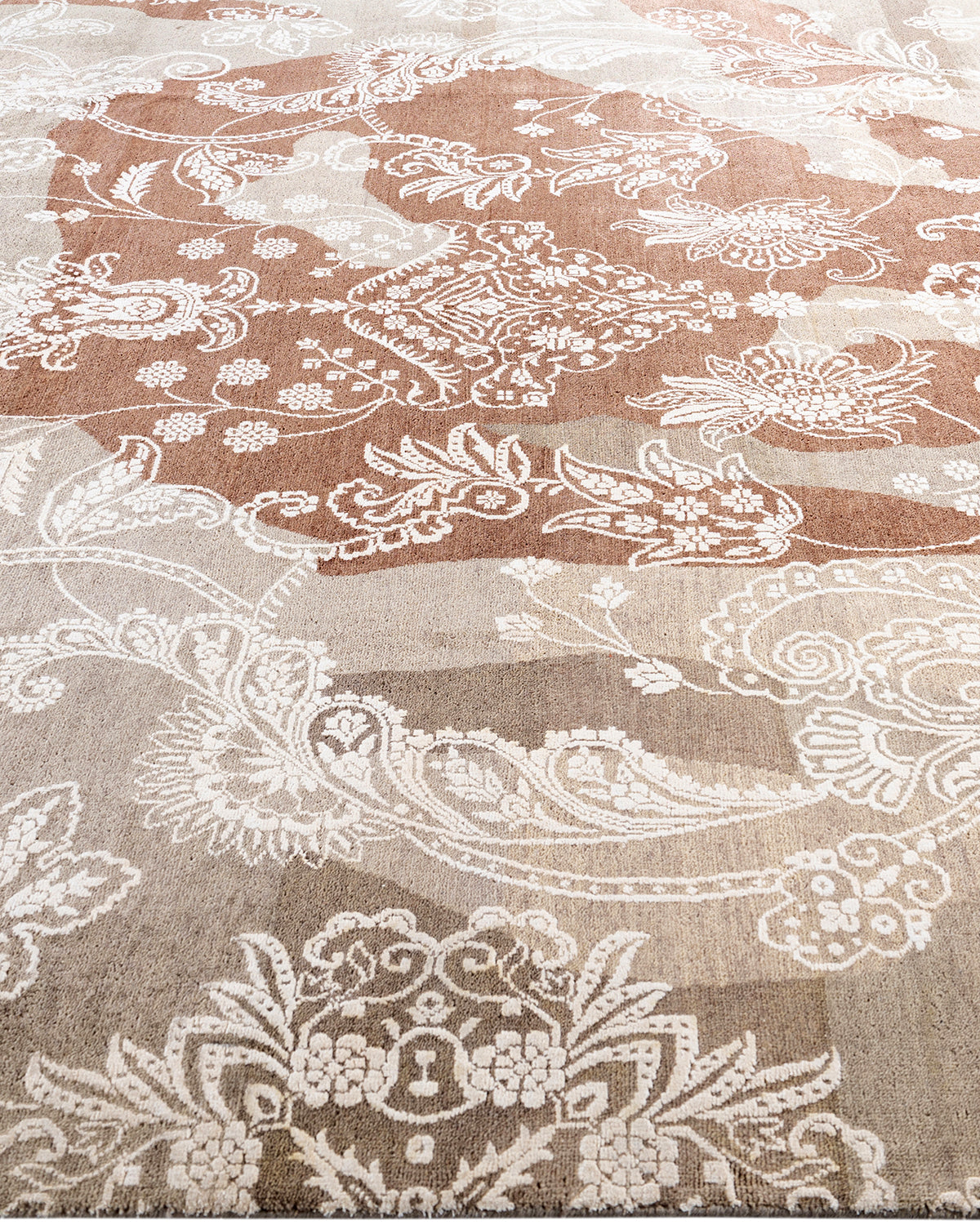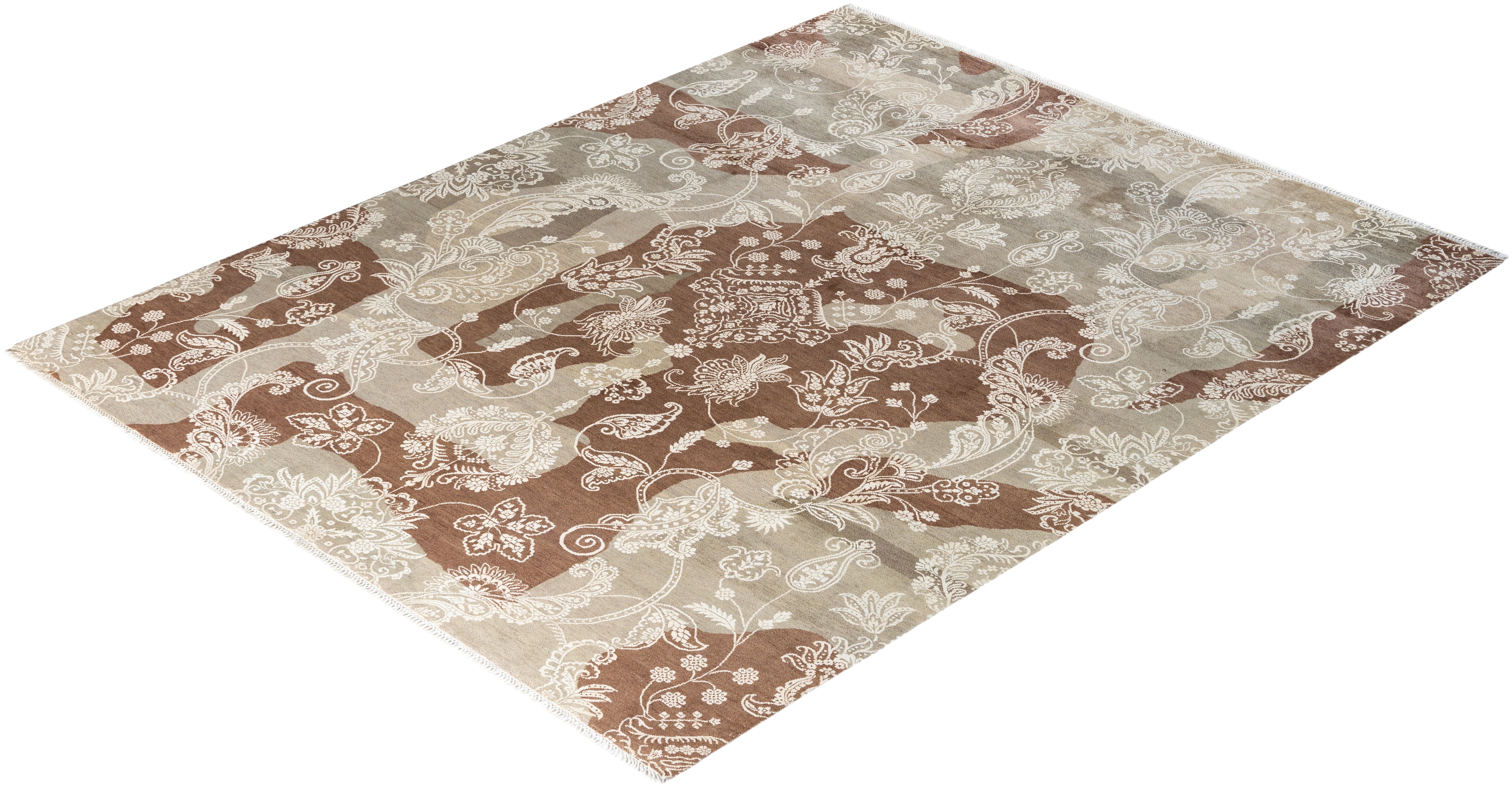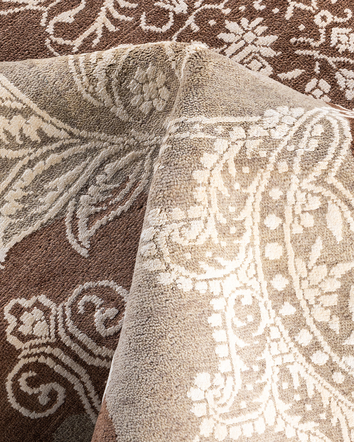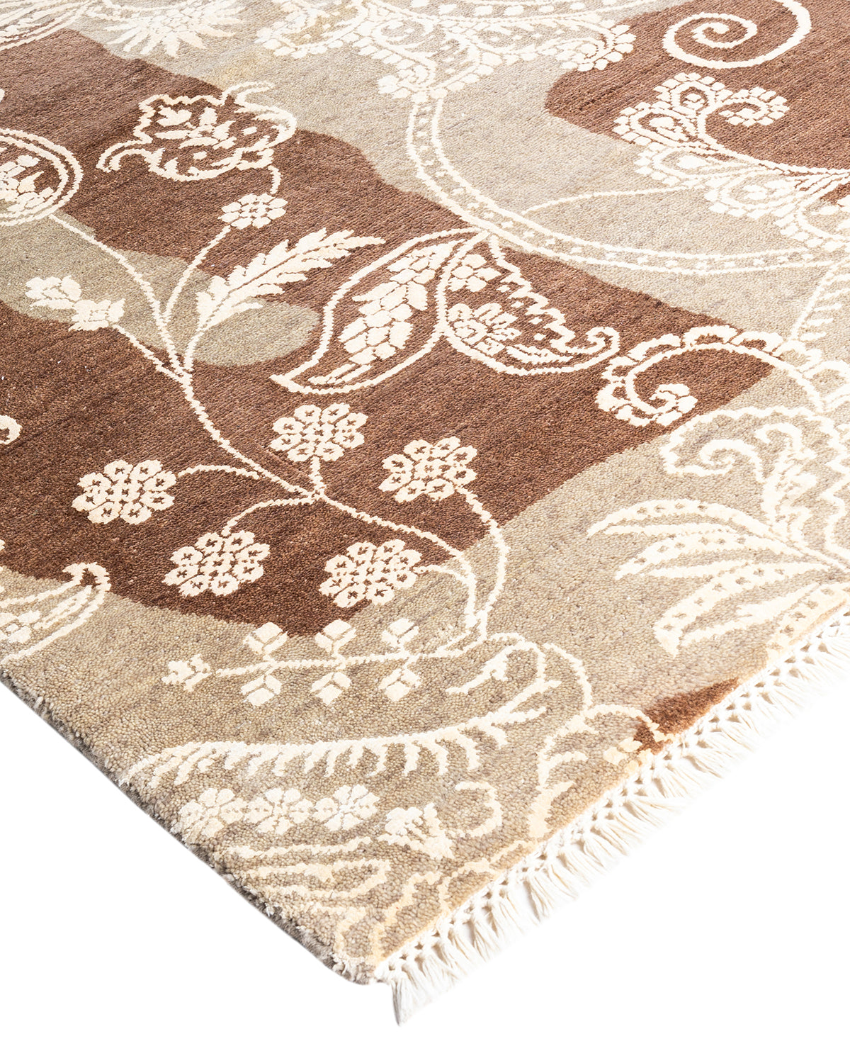 Traditional Ikat Hand Knotted Abstract Wool Brown Area Rug 8' 2" x 10' 4"