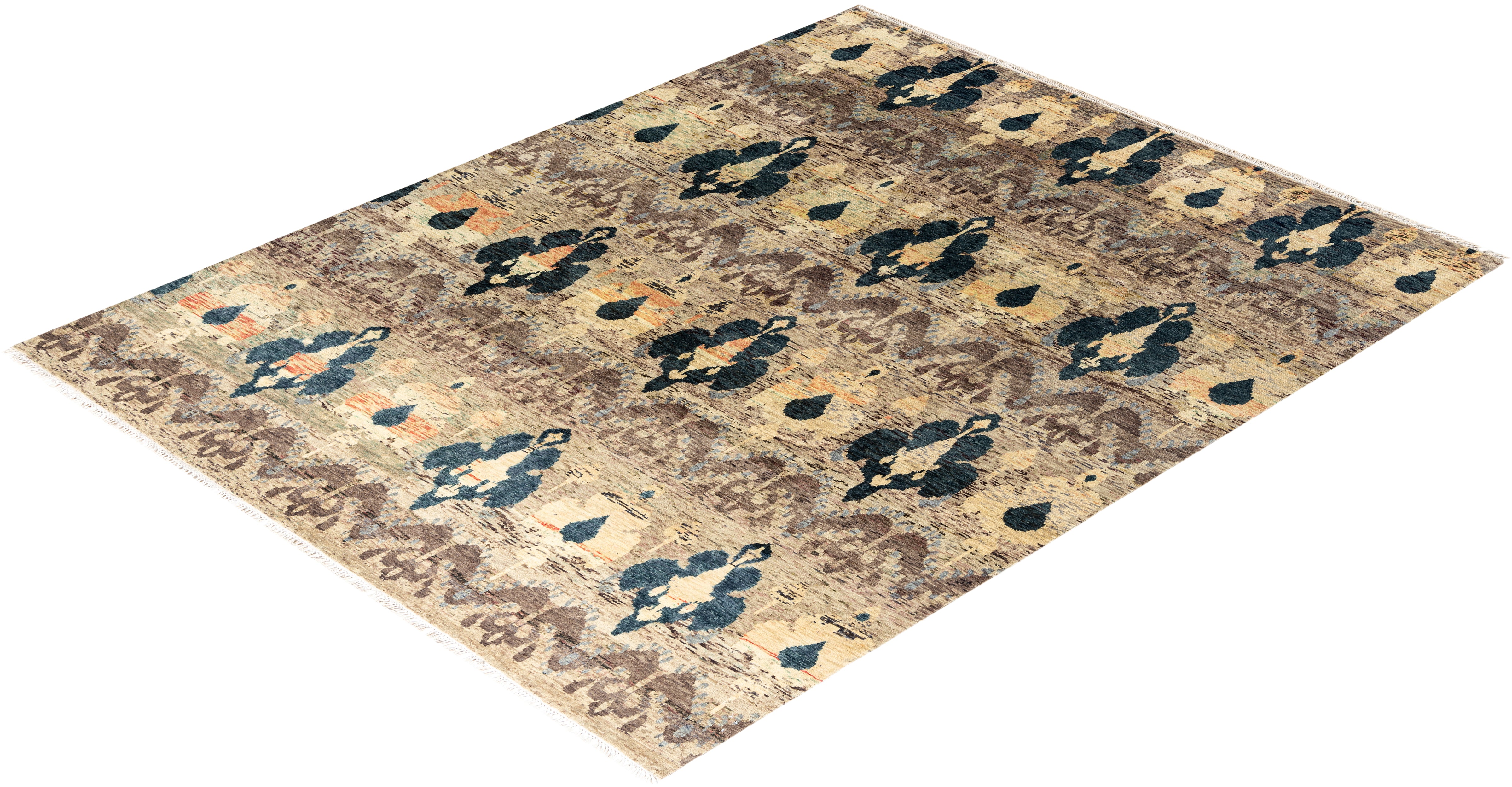 Traditional Ikat Hand Knotted Floral Wool Brown Area Rug 7' 10" x 10' 1"