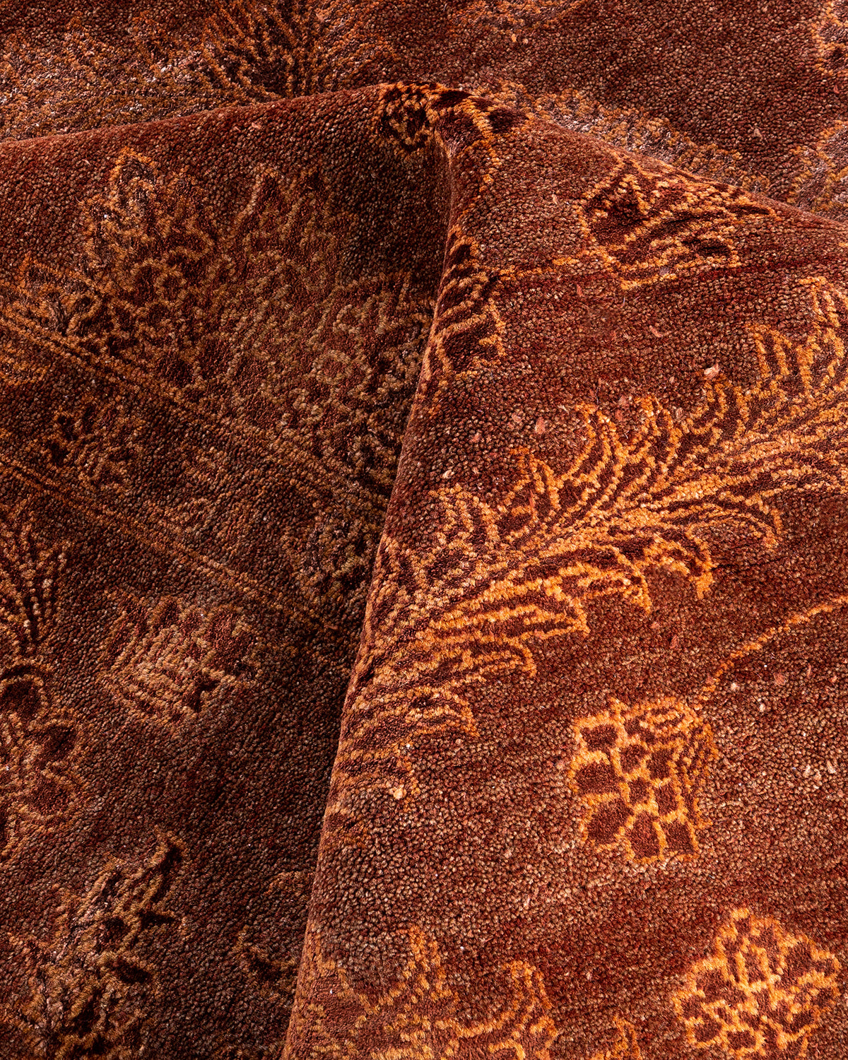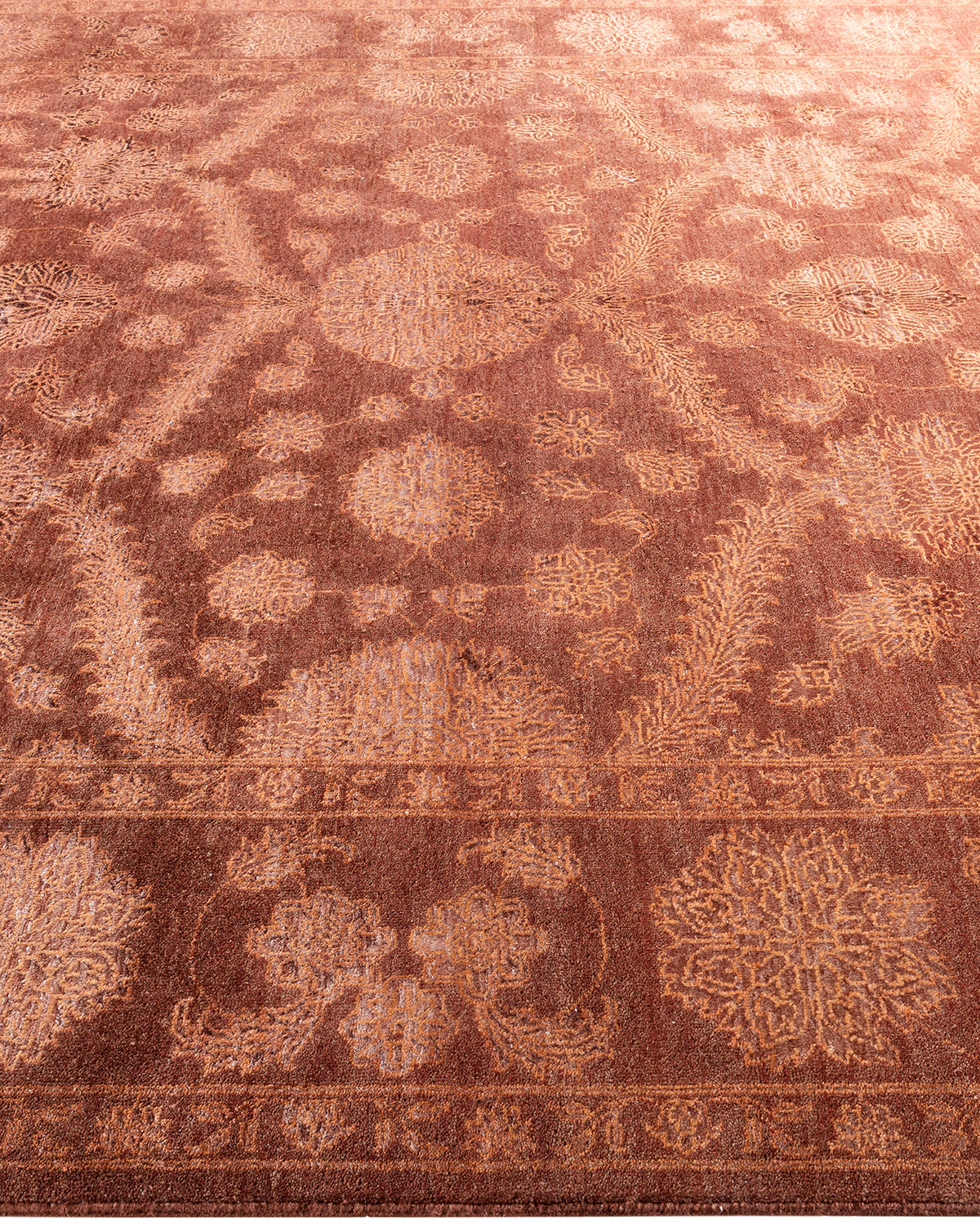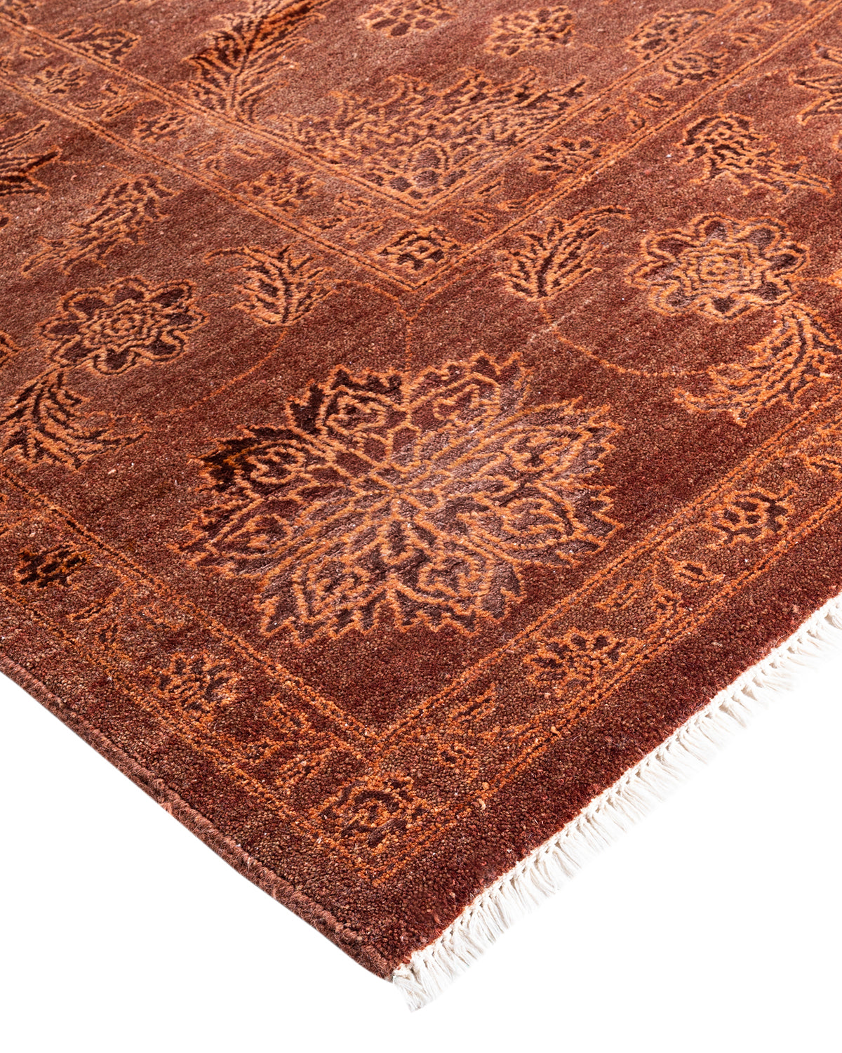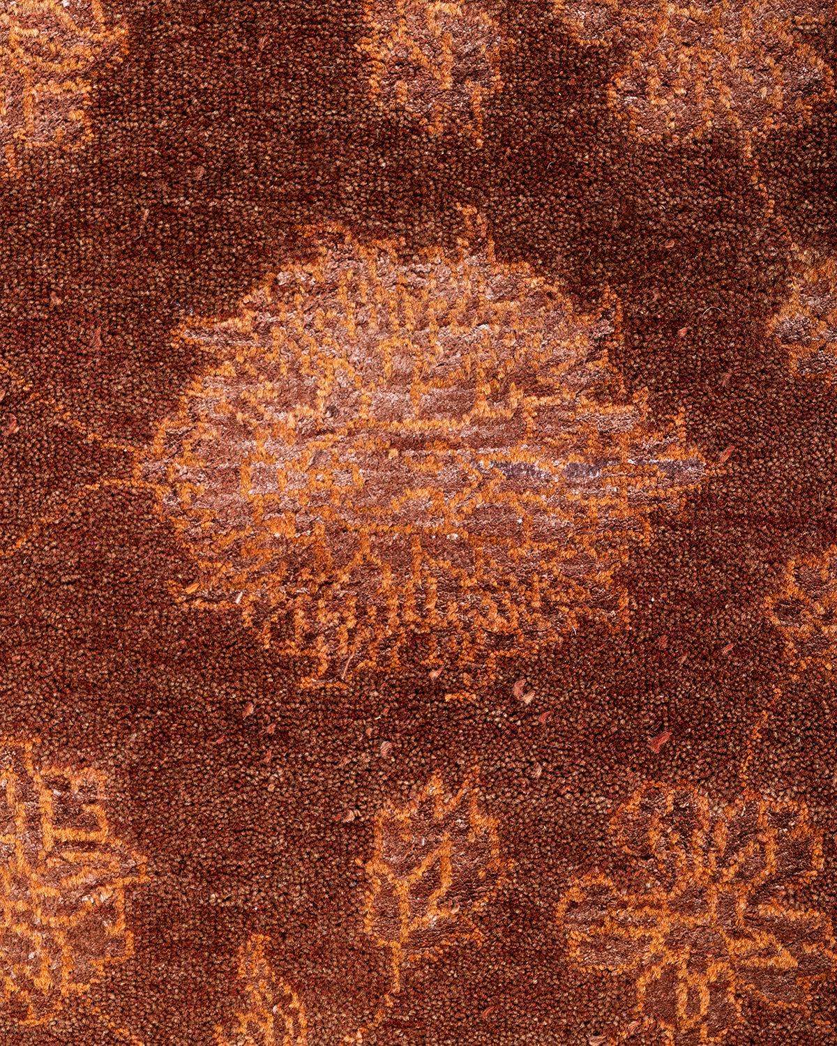 Traditional Ikat Hand Knotted Floral Wool Brown Area Rug 8' 2" x 10' 2"