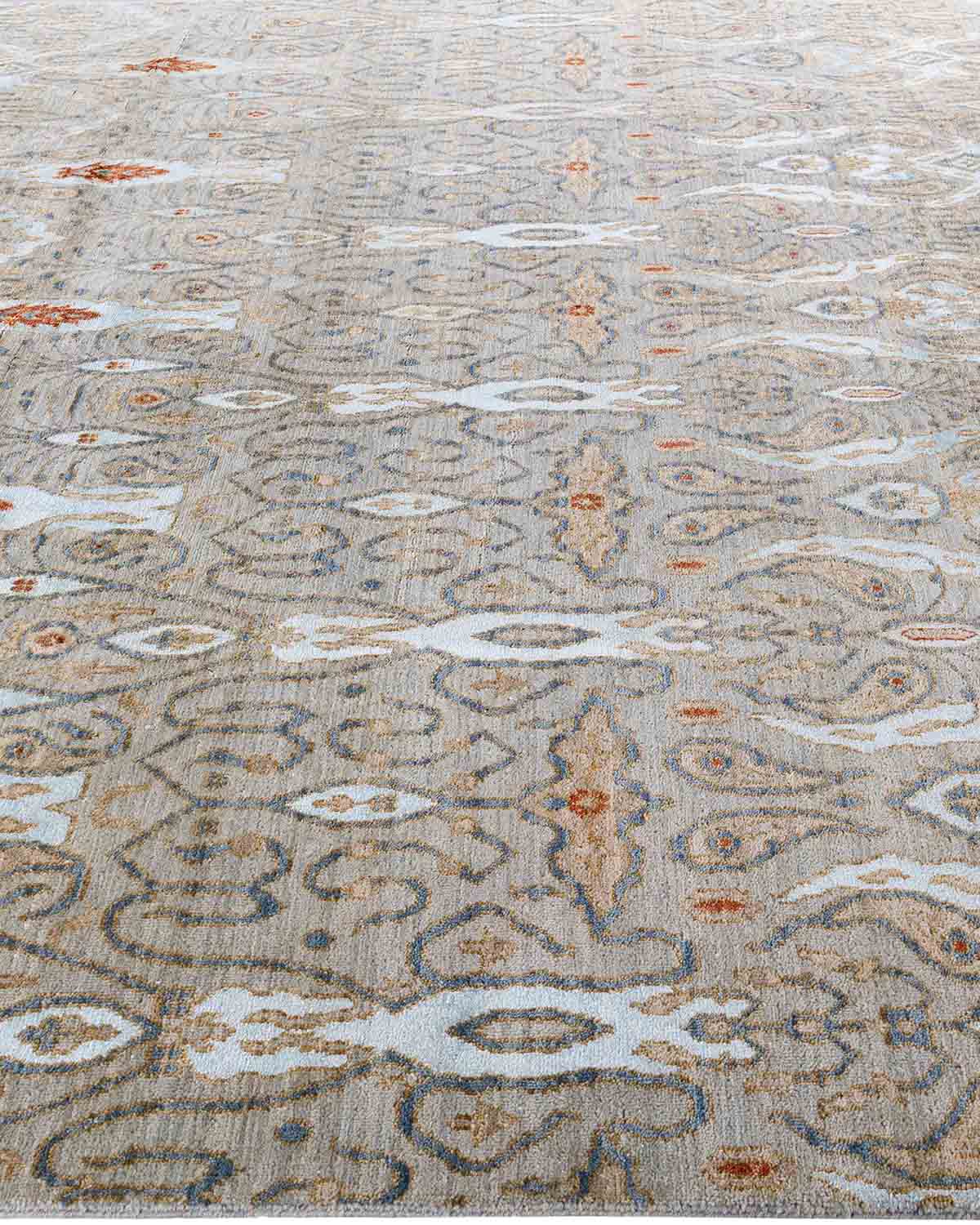 Traditional Ikat Hand Knotted Floral Silk & Wool Blend Brown Area Rug 8' 1" x 10' 2"