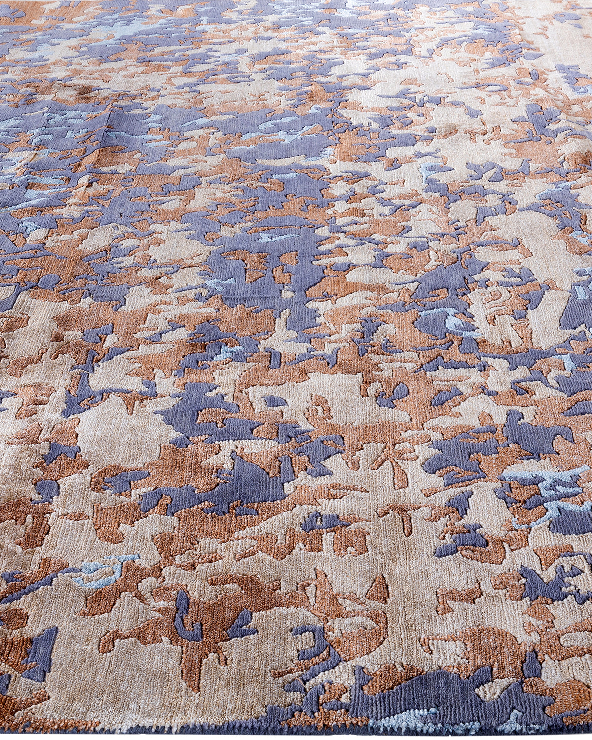 Contemporary Modern Hand Knotted Abstract Silk & Wool Blend Brown Area Rug 8' 2" x 10' 2"