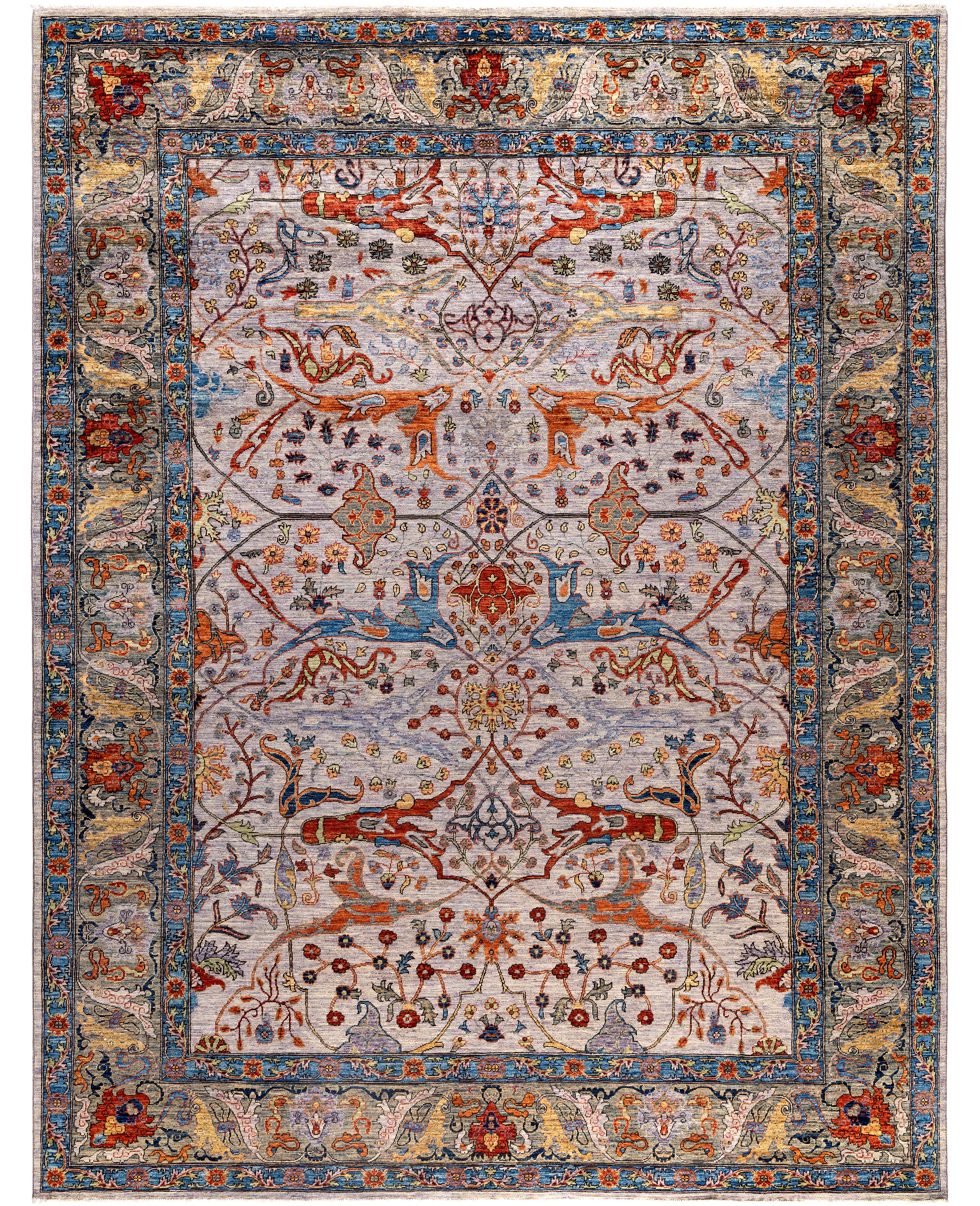 Serapi rugs are known for their bold, geometric designs and rich colors, often featuring a central medallion surrounded by intricate patterns. They typically use a warm, earthy color palette with deep reds, blues, ivory, and occasional greens. The designs emphasize large-scale motifs, including angular vines, leaves, and floral elements, giving the rugs a distinctive, almost architectural appearance. These rugs are hand-knotted and are prized for their durability and high-quality craftsmanship. Their unique aesthetic is attributed to a blend of traditional motifs with more refined, spacious compositions. They are highly sought after by collectors and interior designers for their elegance and timeless appeal.