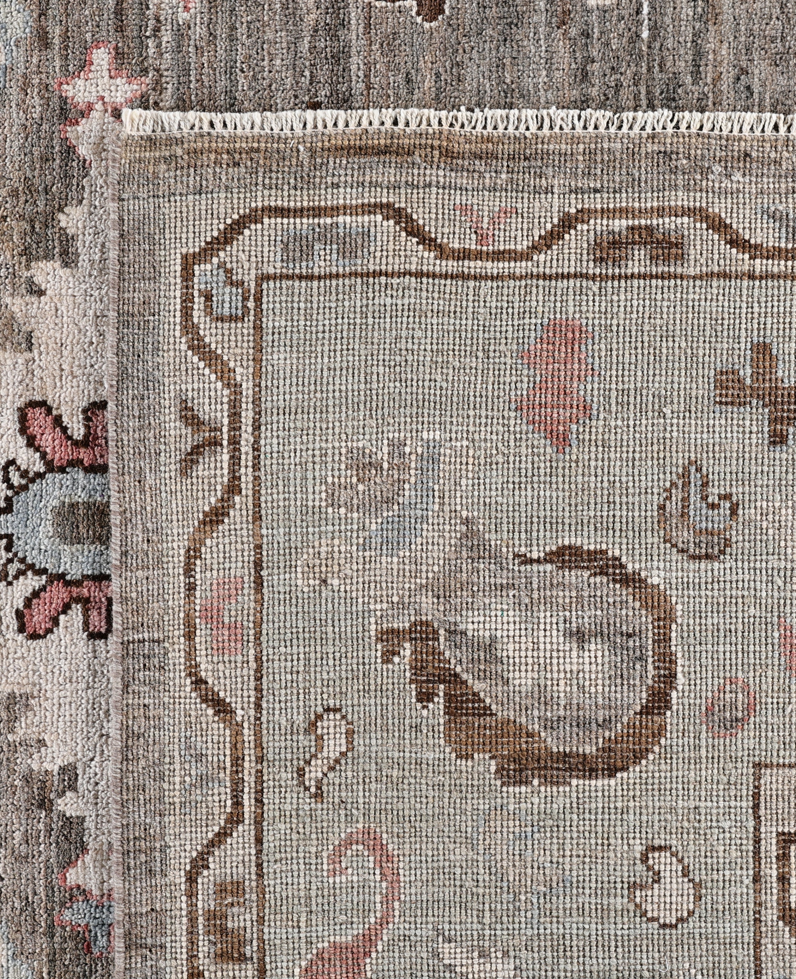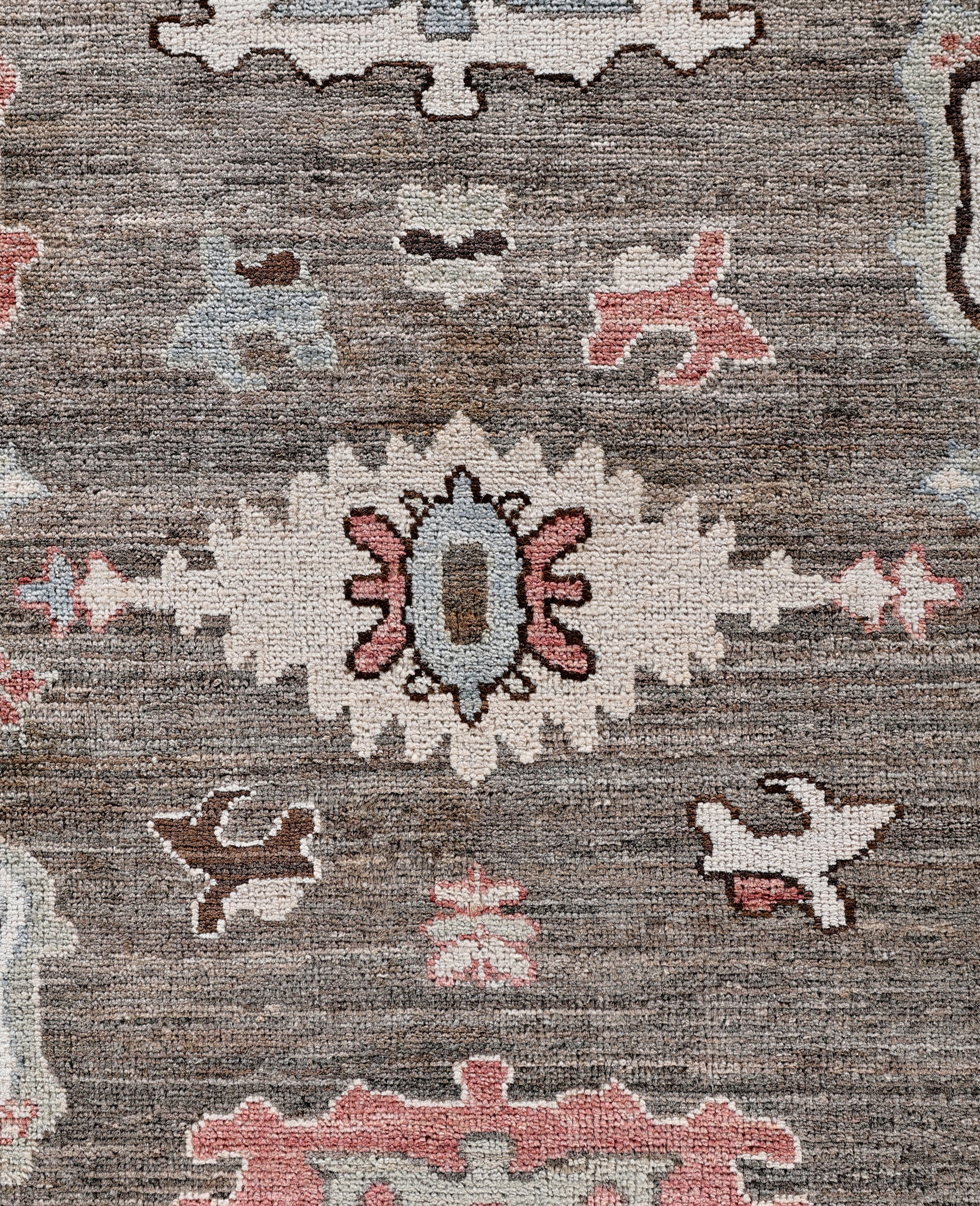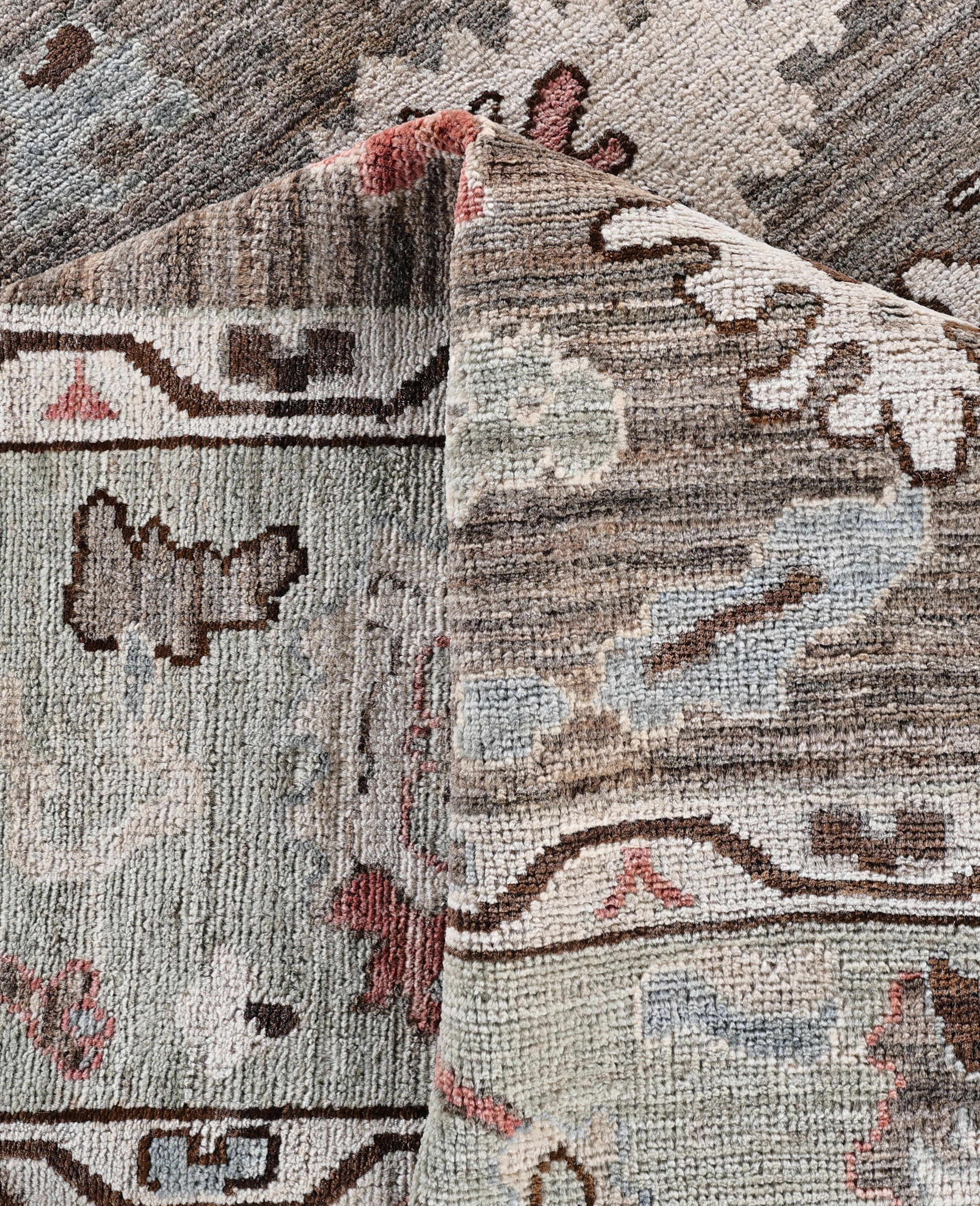 Oushak rugs are known for their soft, muted color palettes and large-scale, flowing designs. They often feature soft tones like beige, cream, gold, and light blue, with motifs that include palmettes, vines, and geometric shapes. These rugs are distinguished by their loose, open patterns, giving them an airy and elegant feel. Originating from the town of Oushak, they emphasize simplicity and a more relaxed aesthetic compared to other ornate designs. Hand-knotted using high-quality wool, Oushak rugs are celebrated for their luxurious texture and durability. Their timeless, understated beauty makes them popular in both traditional and contemporary interiors.