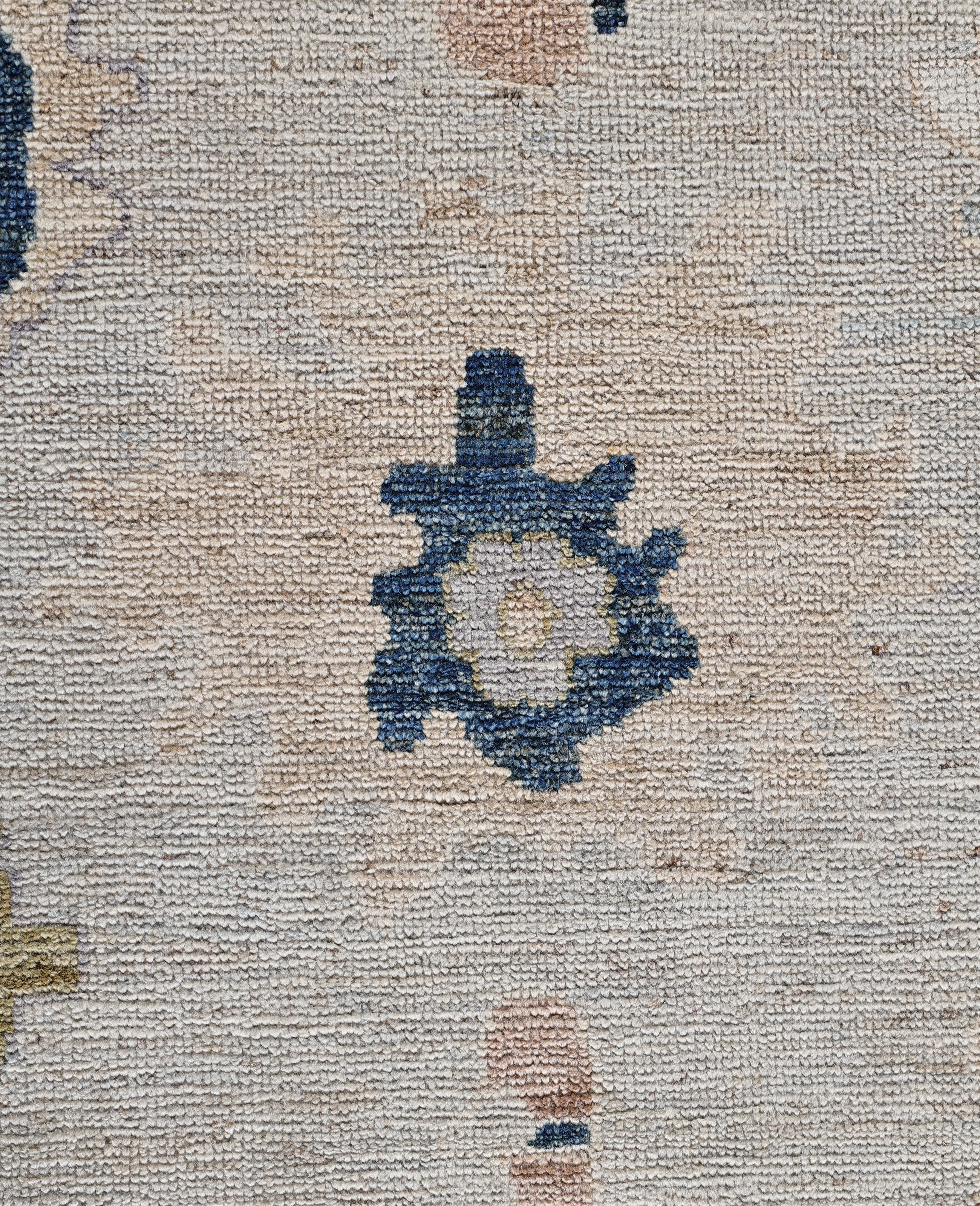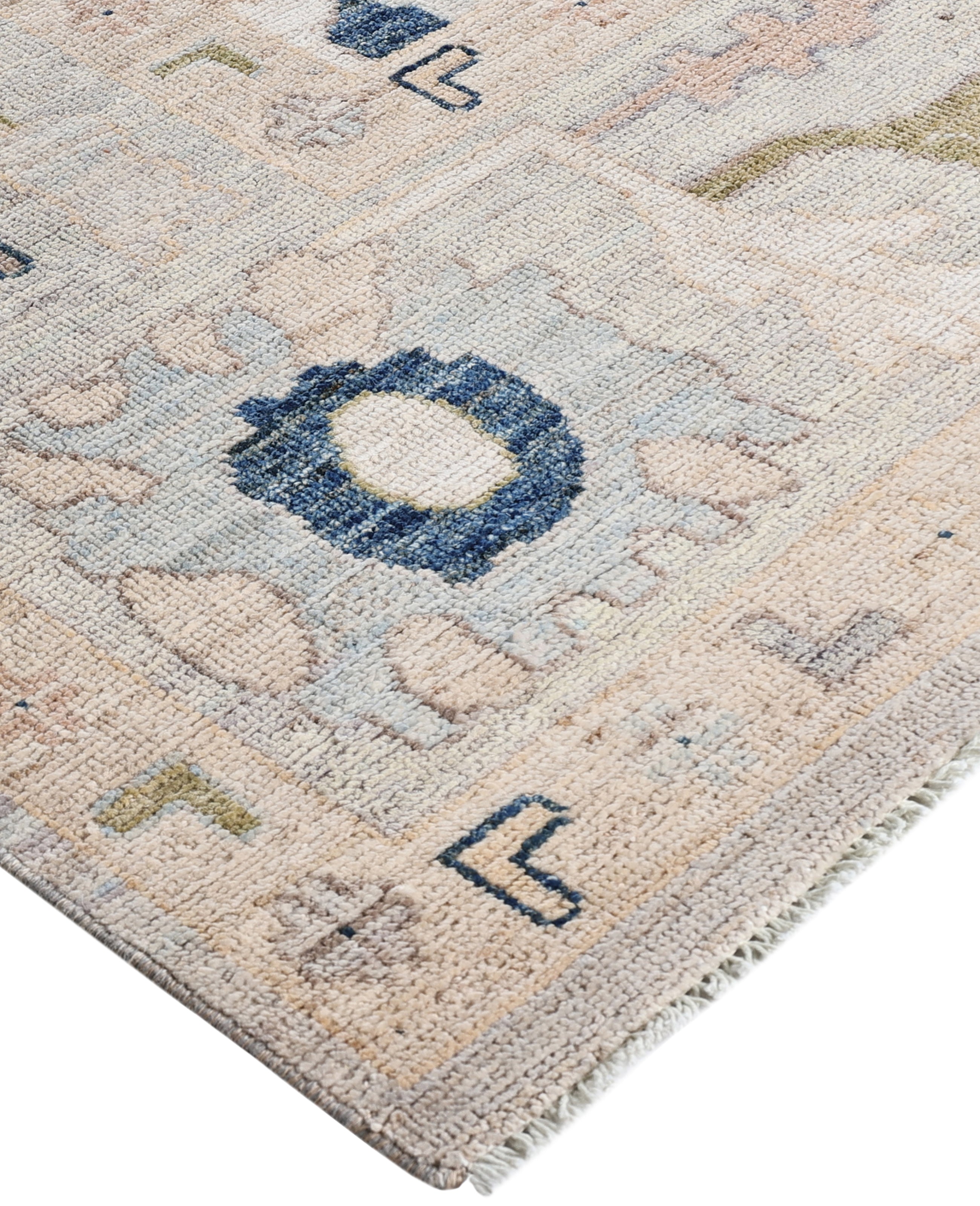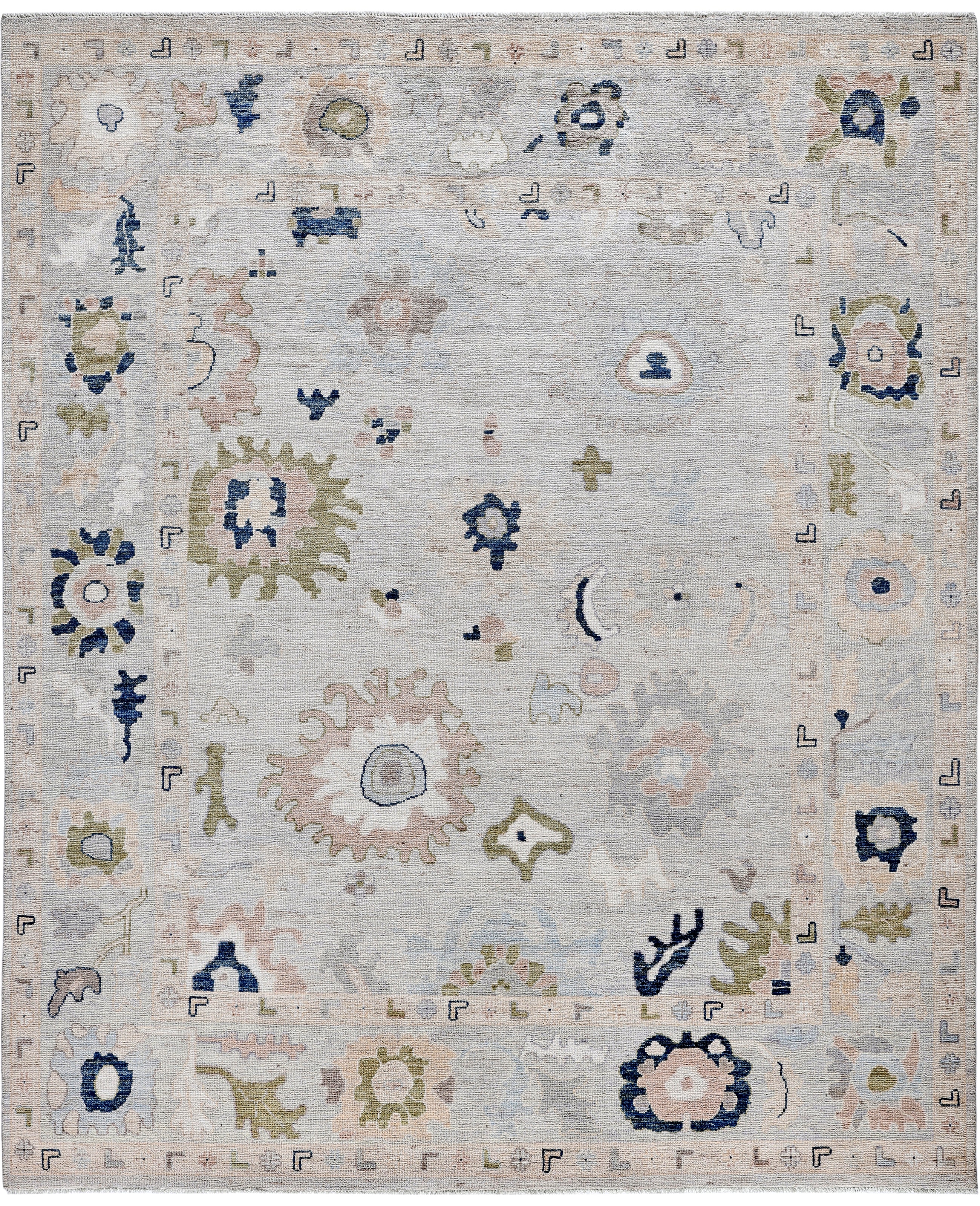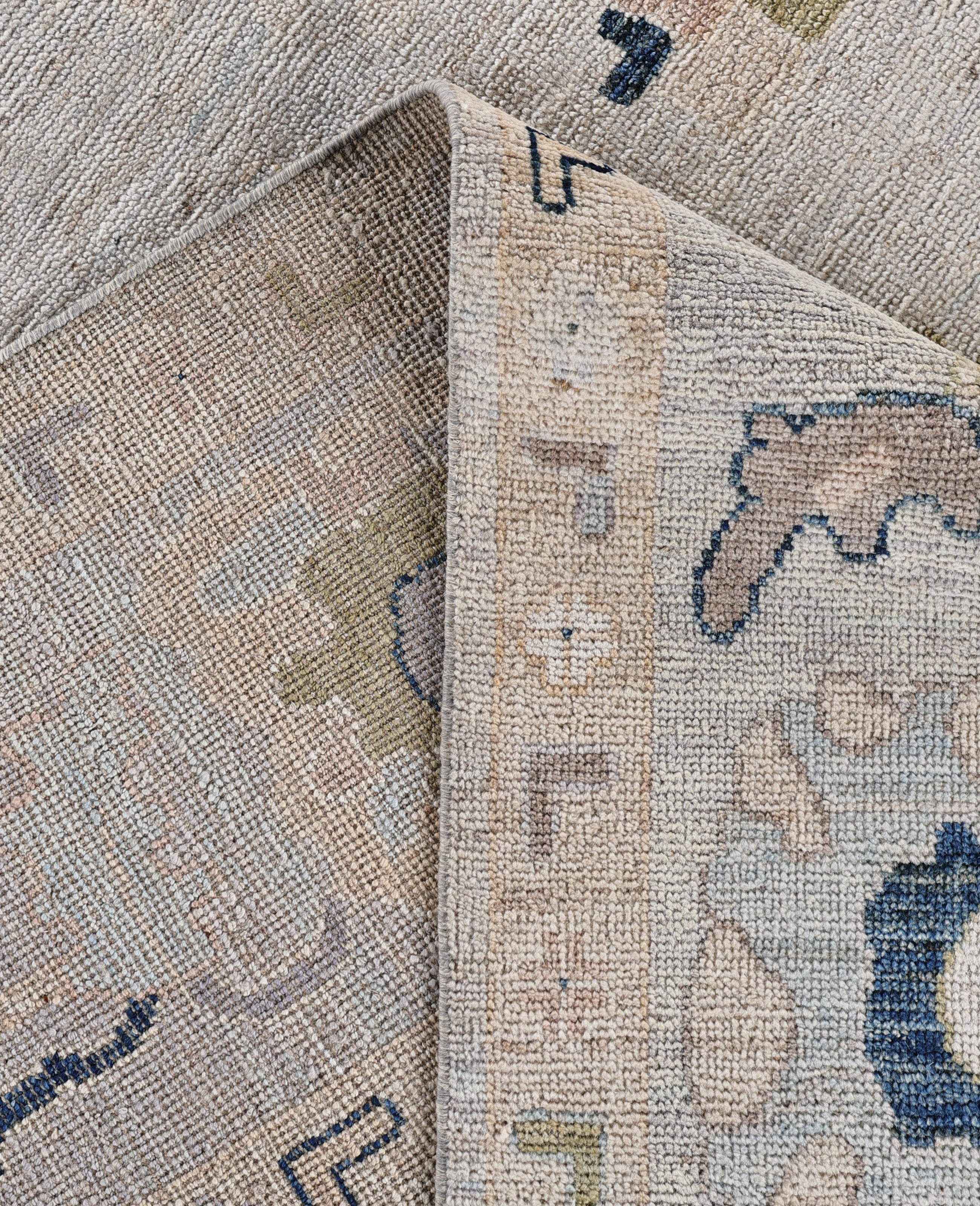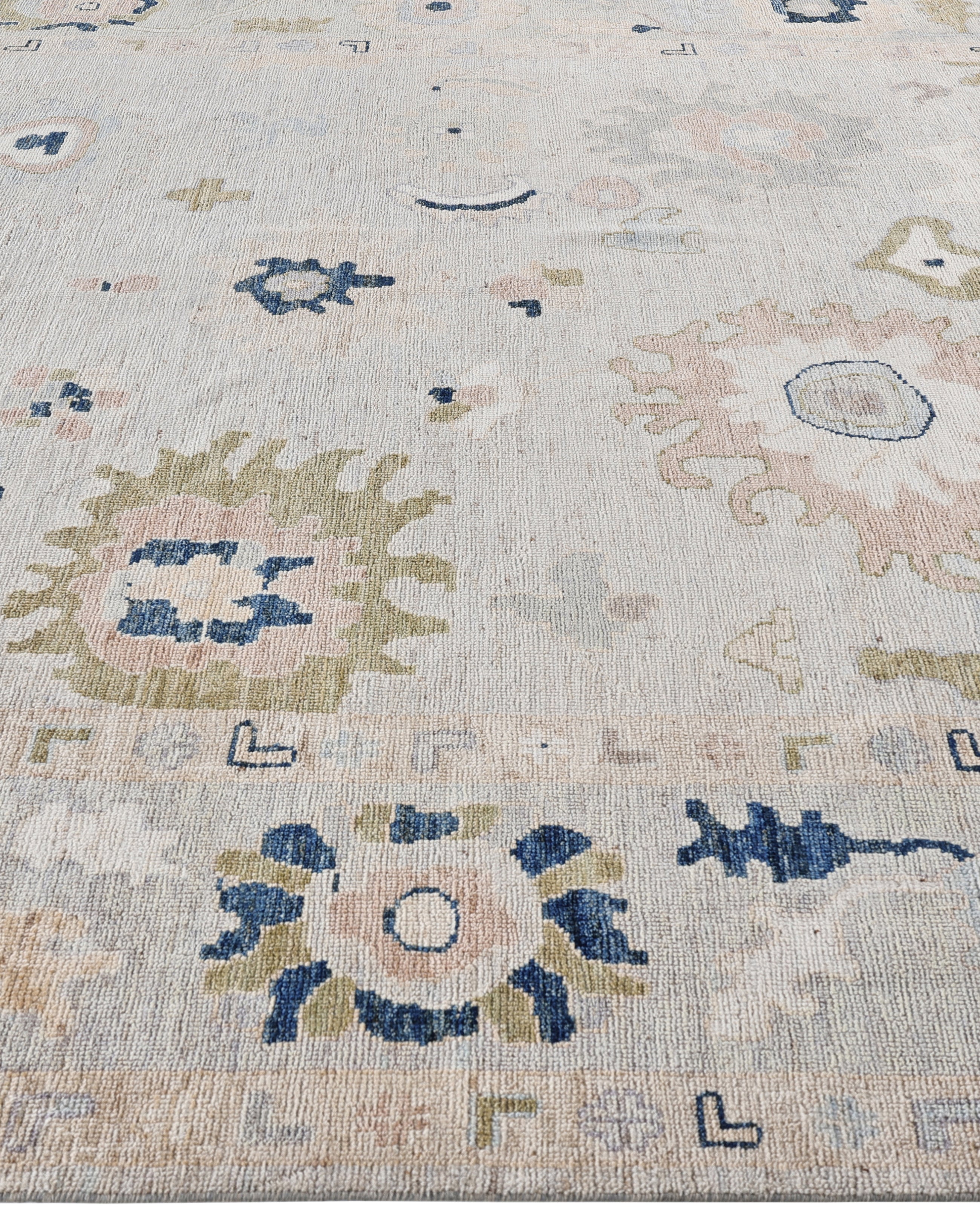 Oushak rugs are known for their soft, muted color palettes and large-scale, flowing designs. They often feature soft tones like beige, cream, gold, and light blue, with motifs that include palmettes, vines, and geometric shapes. These rugs are distinguished by their loose, open patterns, giving them an airy and elegant feel. Originating from the town of Oushak, they emphasize simplicity and a more relaxed aesthetic compared to other ornate designs. Hand-knotted using high-quality wool, Oushak rugs are celebrated for their luxurious texture and durability. Their timeless, understated beauty makes them popular in both traditional and contemporary interiors.