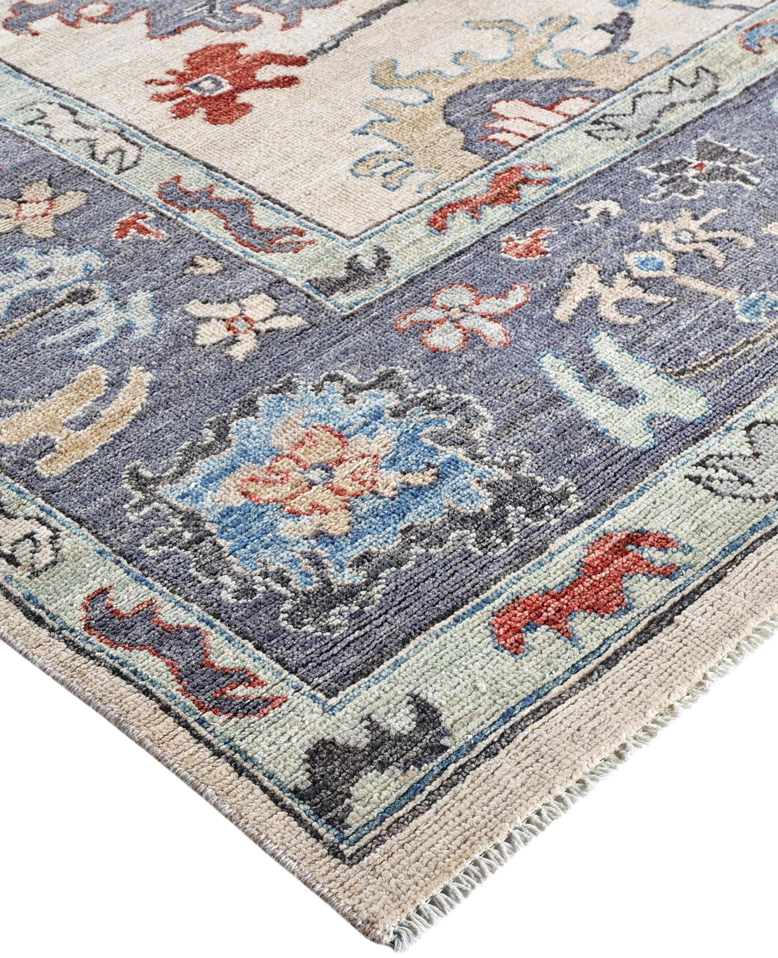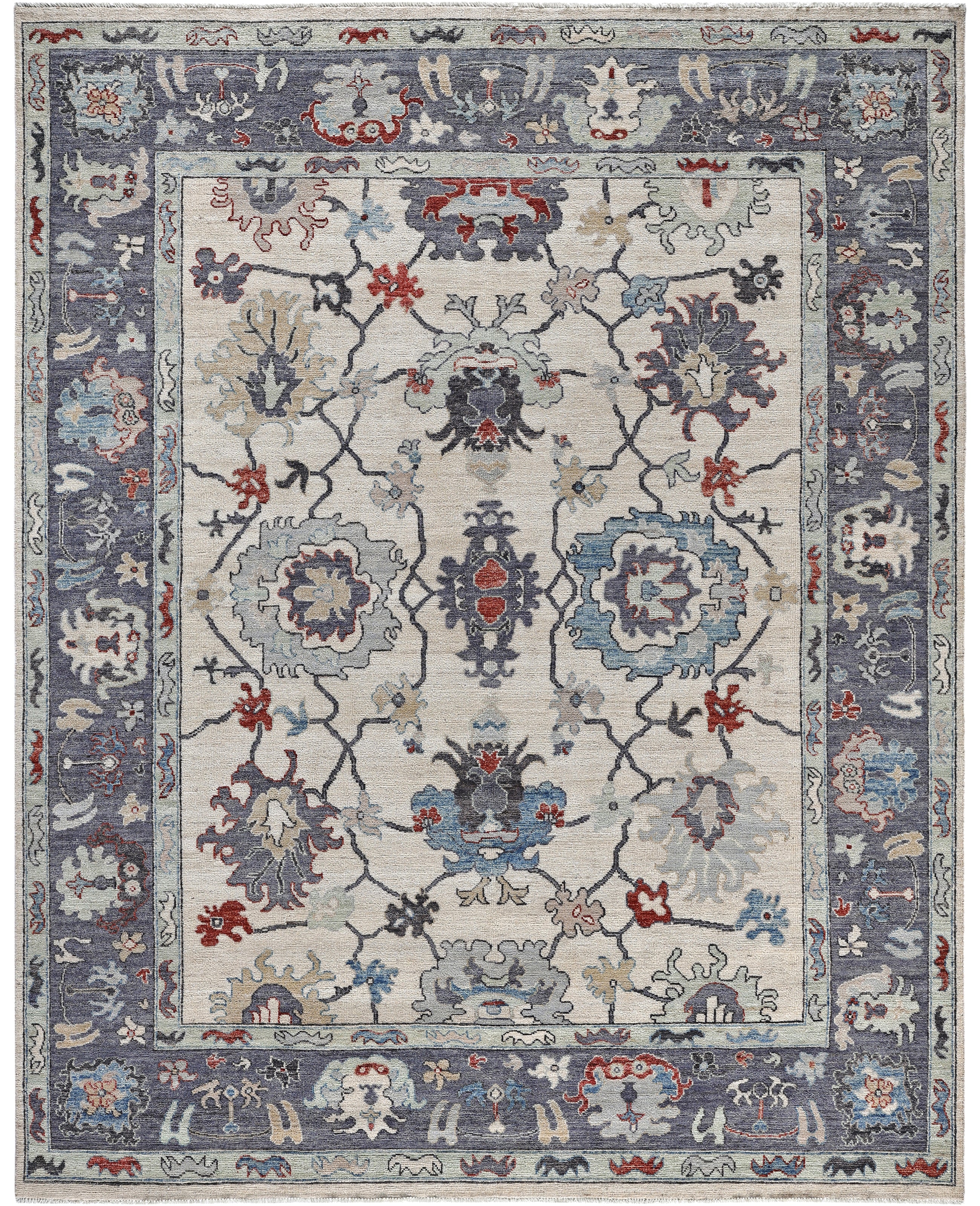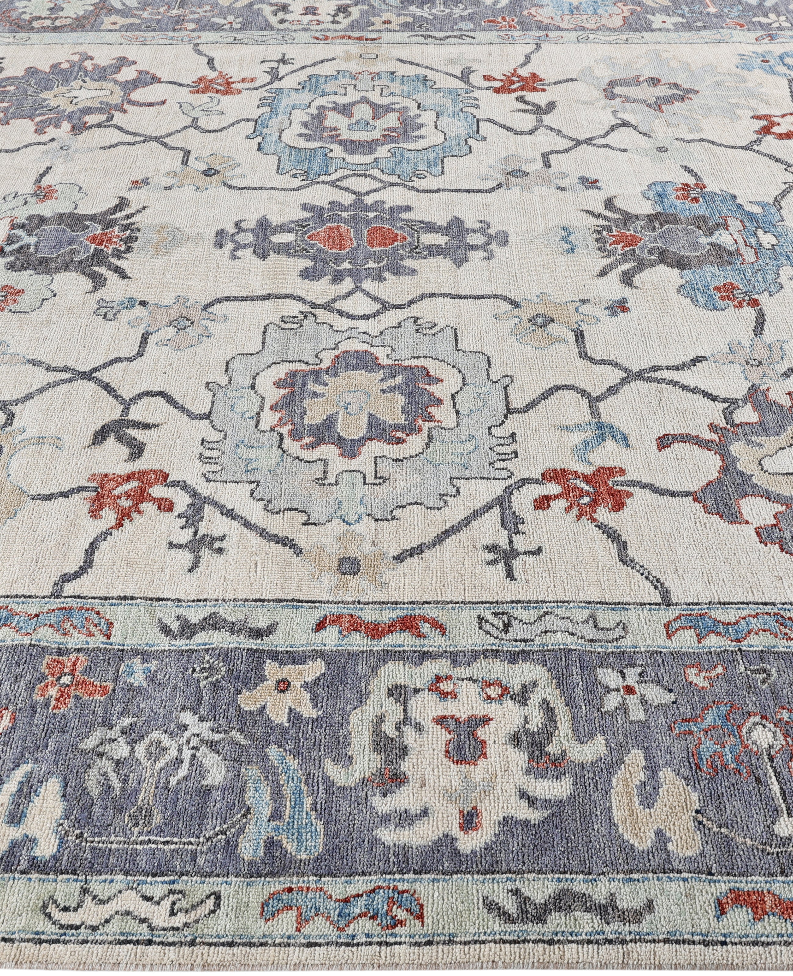 Oushak rugs are known for their soft, muted color palettes and large-scale, flowing designs. They often feature soft tones like beige, cream, gold, and light blue, with motifs that include palmettes, vines, and geometric shapes. These rugs are distinguished by their loose, open patterns, giving them an airy and elegant feel. Originating from the town of Oushak, they emphasize simplicity and a more relaxed aesthetic compared to other ornate designs. Hand-knotted using high-quality wool, Oushak rugs are celebrated for their luxurious texture and durability. Their timeless, understated beauty makes them popular in both traditional and contemporary interiors.