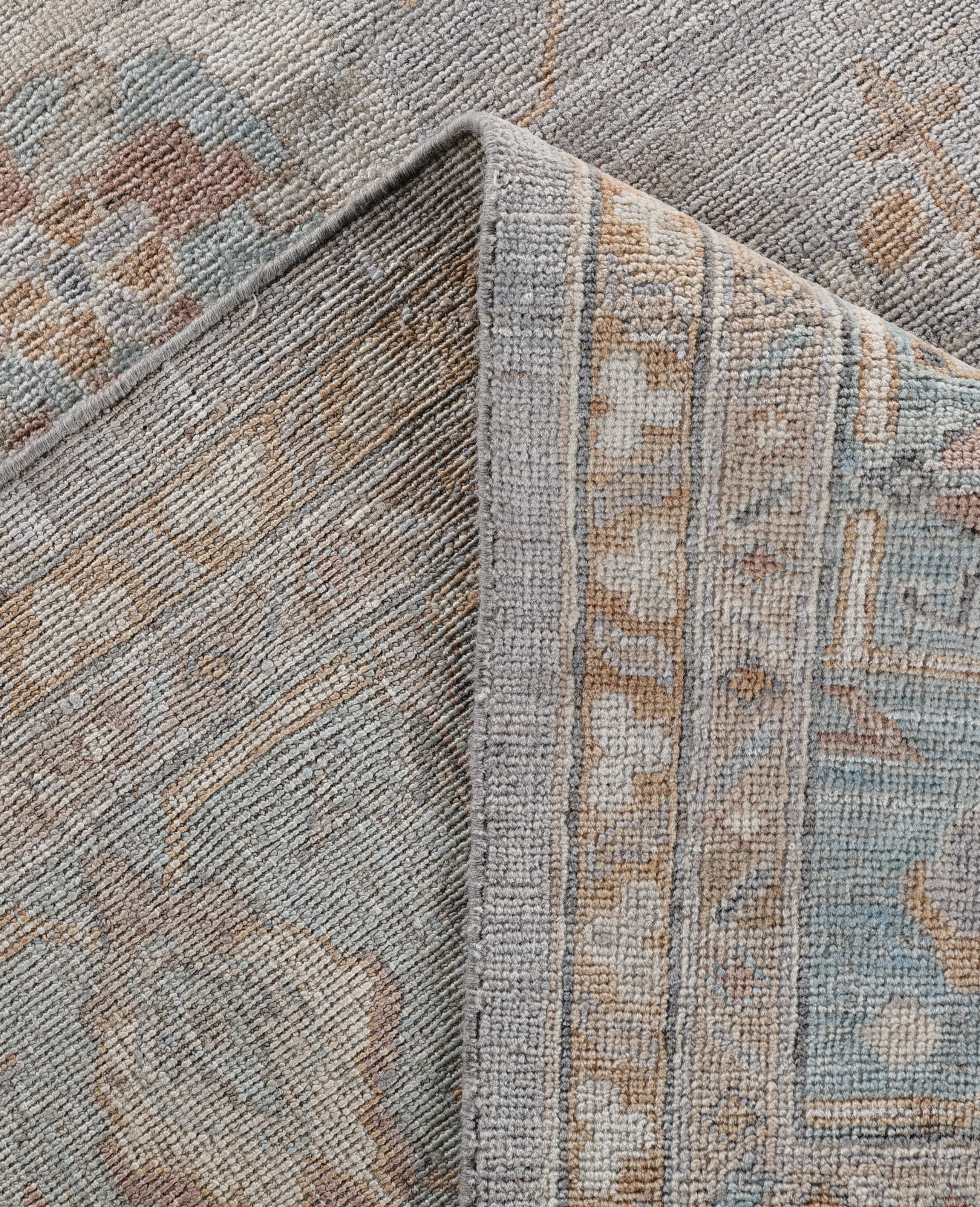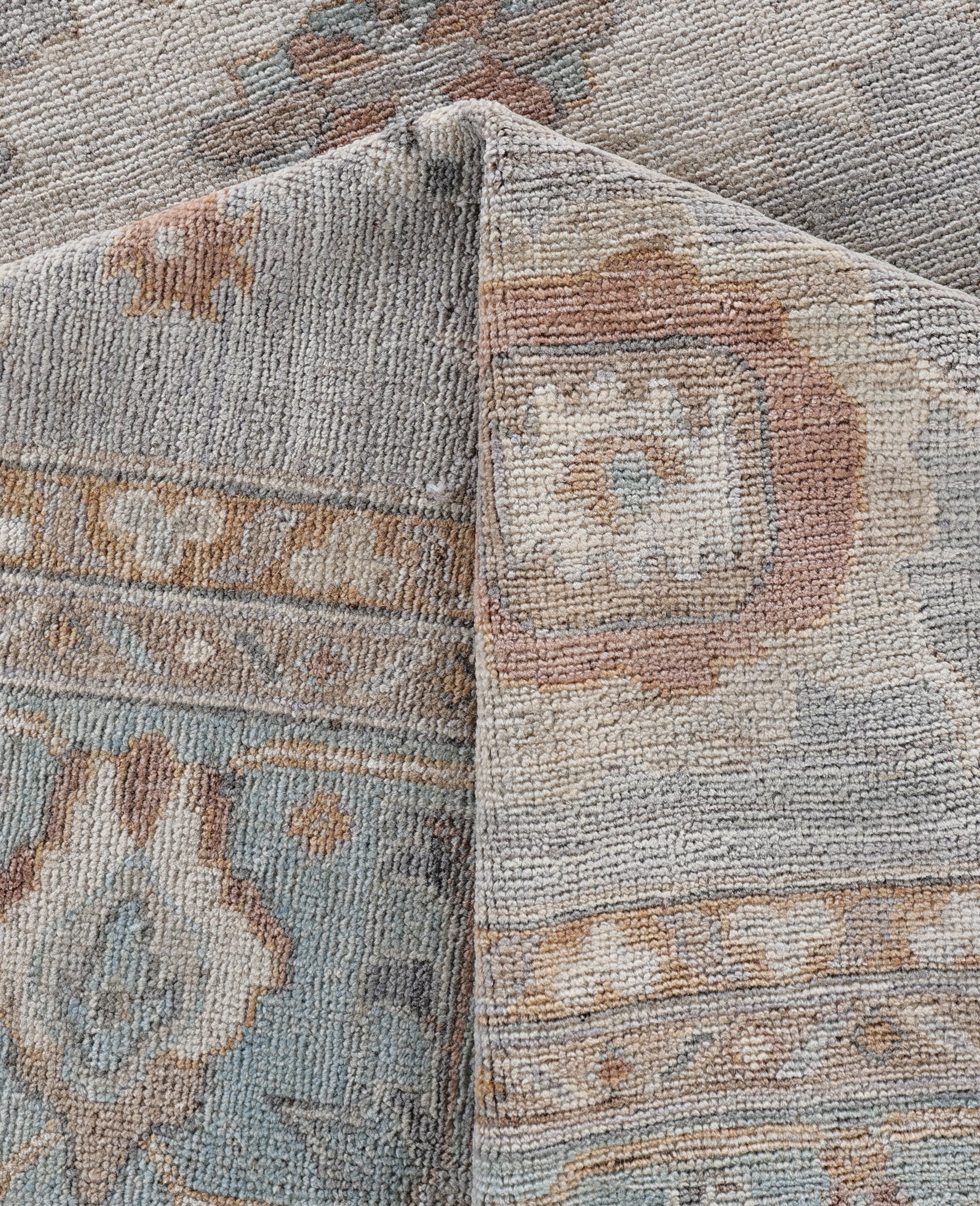 Oushak rugs are known for their soft, muted color palettes and large-scale, flowing designs. They often feature soft tones like beige, cream, gold, and light blue, with motifs that include palmettes, vines, and geometric shapes. These rugs are distinguished by their loose, open patterns, giving them an airy and elegant feel. Originating from the town of Oushak, they emphasize simplicity and a more relaxed aesthetic compared to other ornate designs. Hand-knotted using high-quality wool, Oushak rugs are celebrated for their luxurious texture and durability. Their timeless, understated beauty makes them popular in both traditional and contemporary interiors.