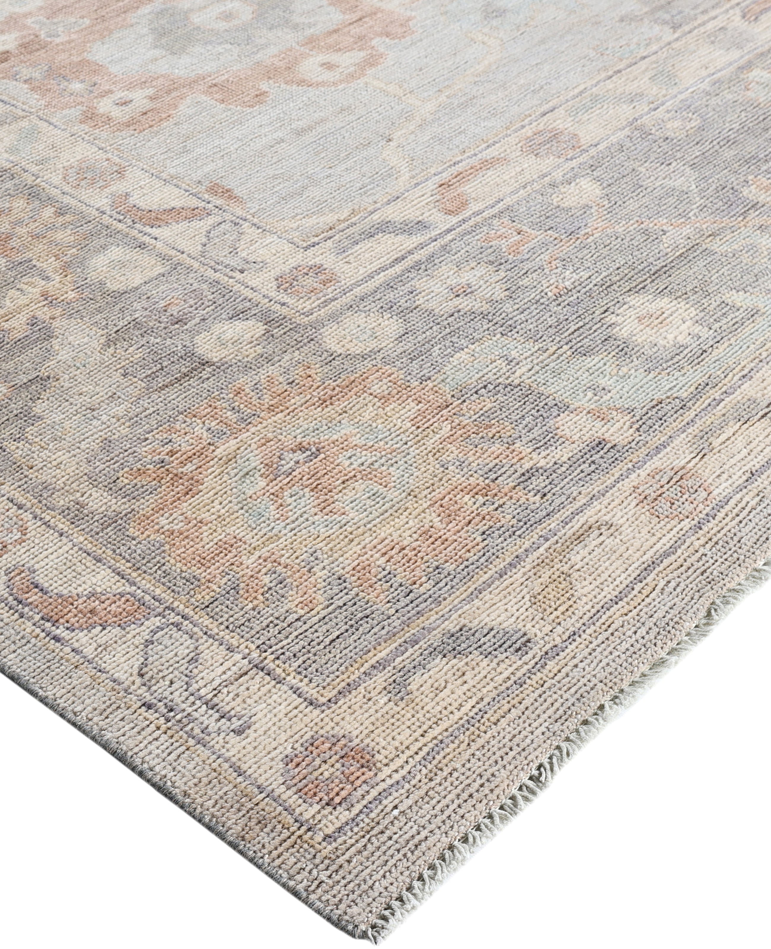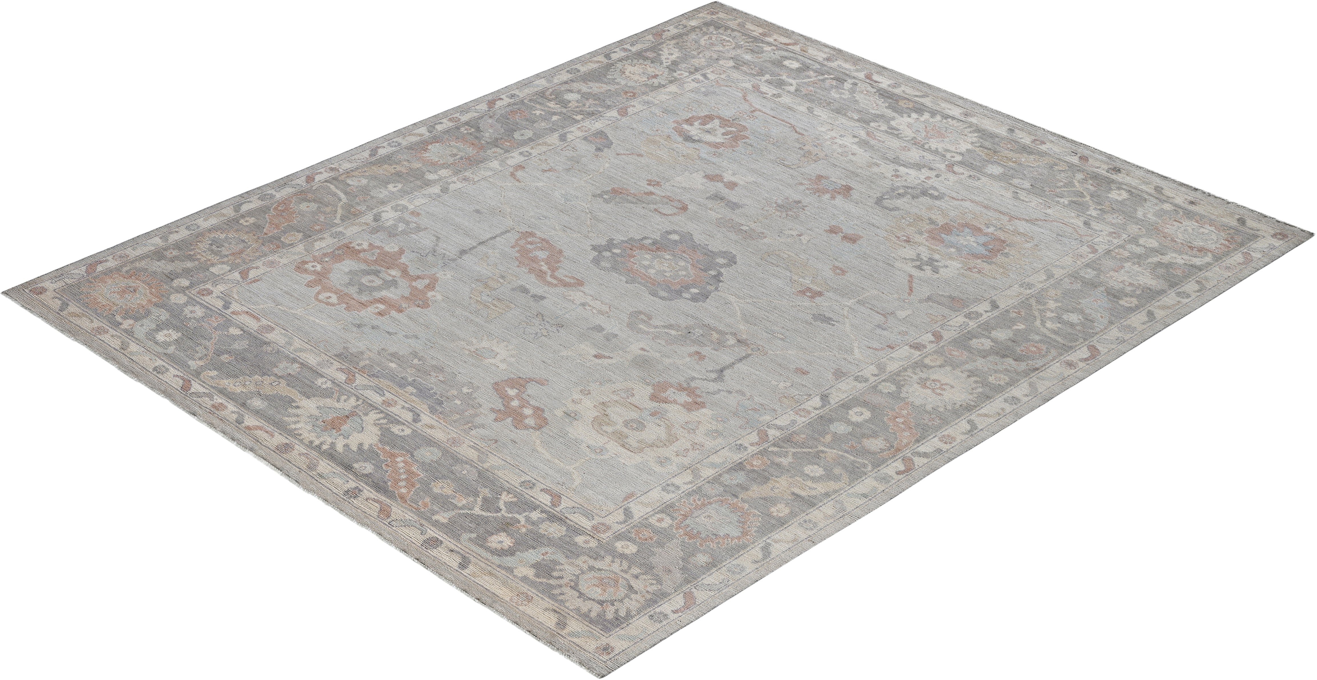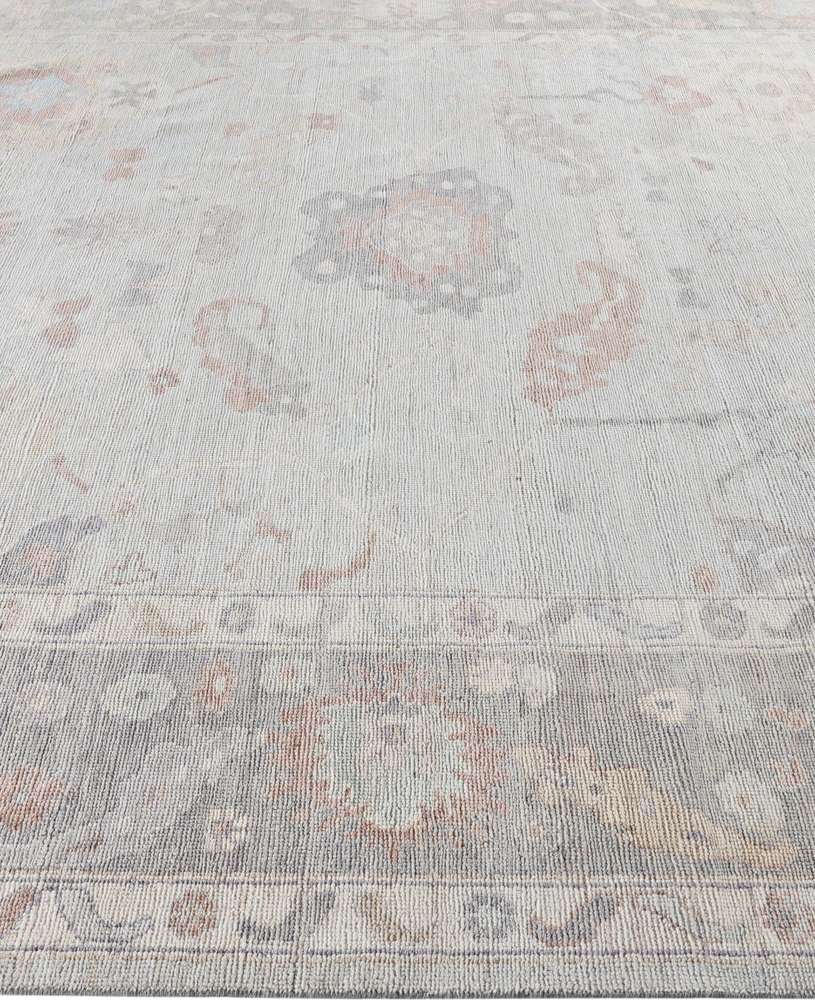 Oushak rugs are known for their soft, muted color palettes and large-scale, flowing designs. They often feature soft tones like beige, cream, gold, and light blue, with motifs that include palmettes, vines, and geometric shapes. These rugs are distinguished by their loose, open patterns, giving them an airy and elegant feel. Originating from the town of Oushak, they emphasize simplicity and a more relaxed aesthetic compared to other ornate designs. Hand-knotted using high-quality wool, Oushak rugs are celebrated for their luxurious texture and durability. Their timeless, understated beauty makes them popular in both traditional and contemporary interiors.