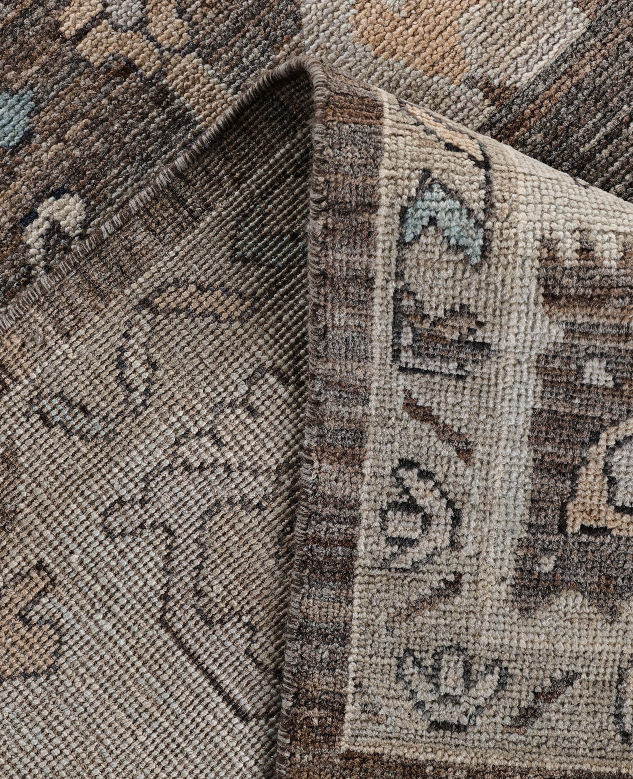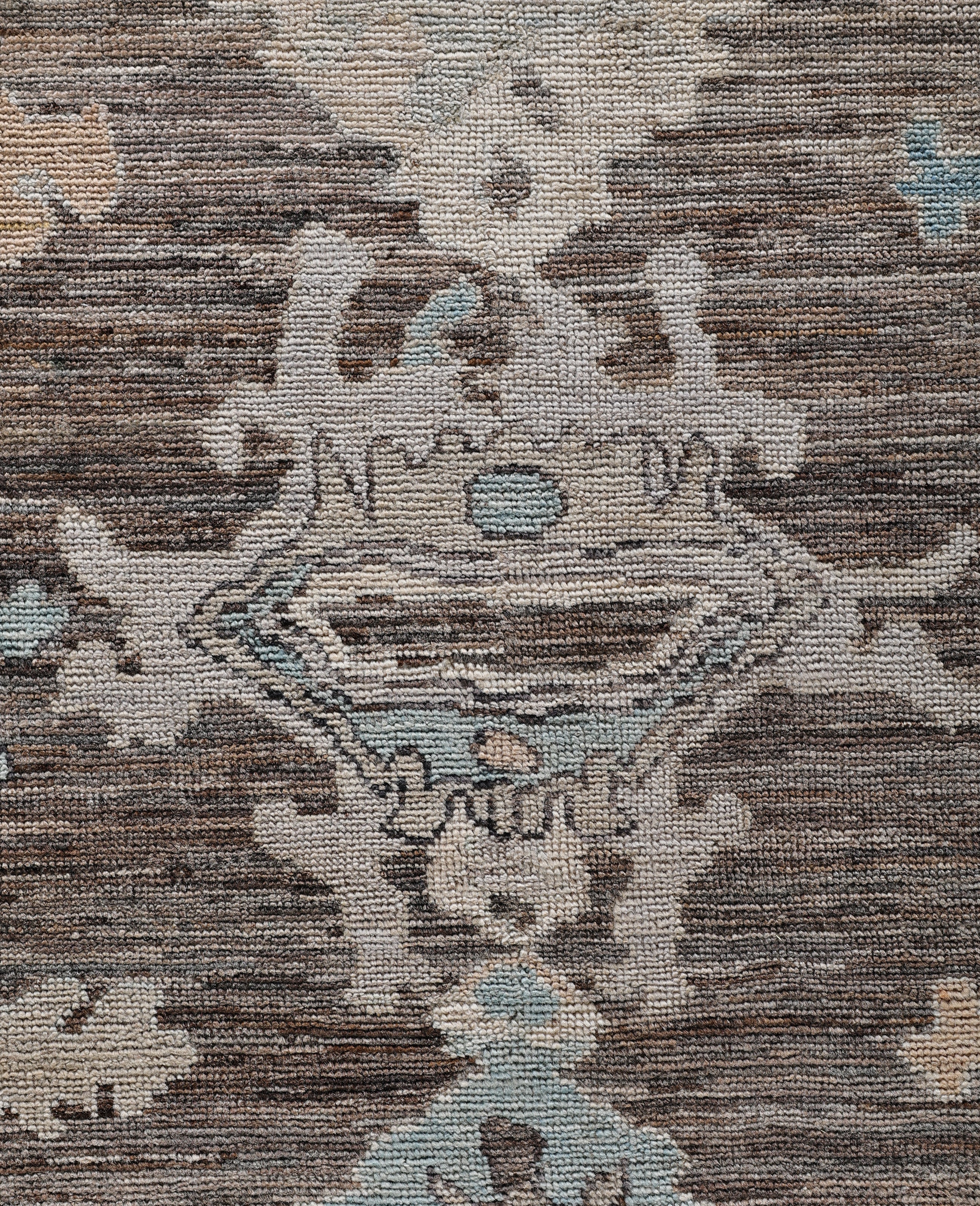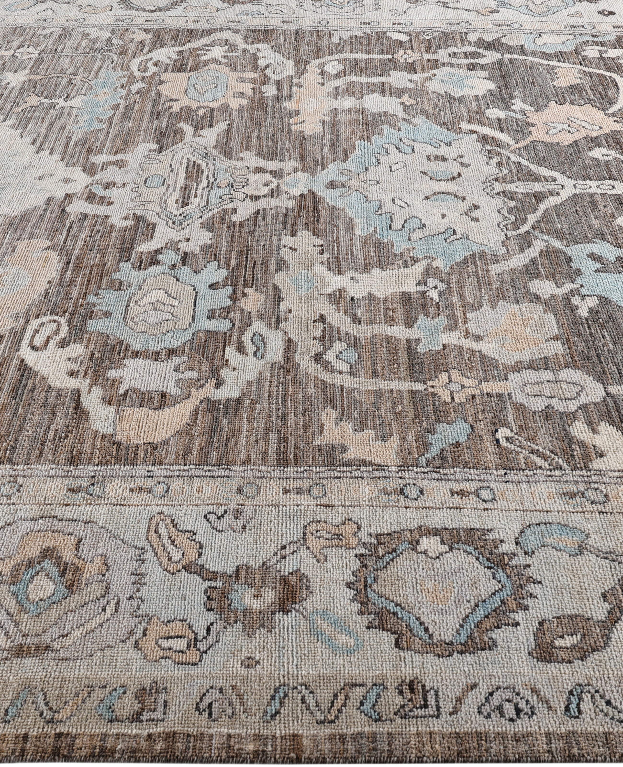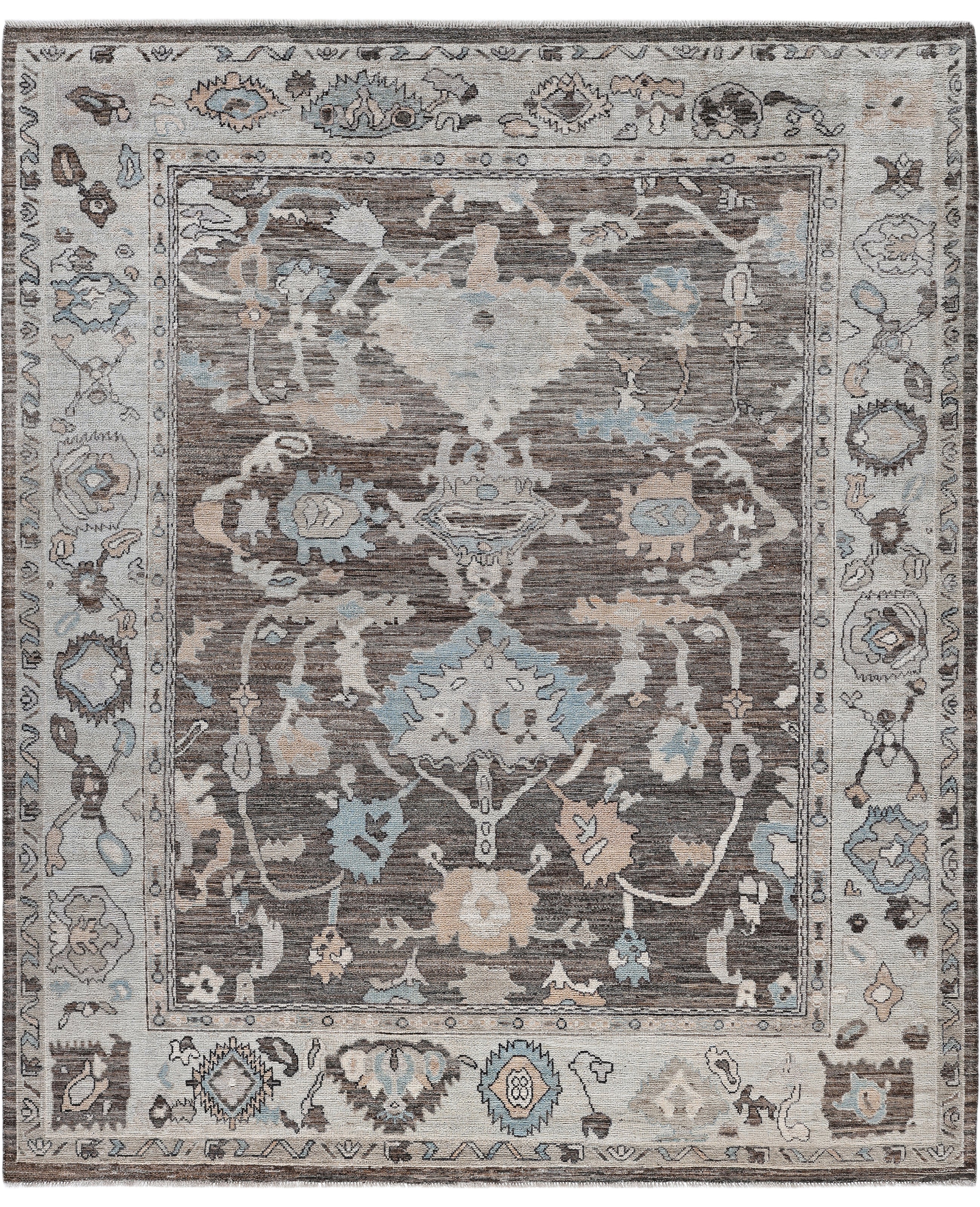 Oushak rugs are known for their soft, muted color palettes and large-scale, flowing designs. They often feature soft tones like beige, cream, gold, and light blue, with motifs that include palmettes, vines, and geometric shapes. These rugs are distinguished by their loose, open patterns, giving them an airy and elegant feel. Originating from the town of Oushak, they emphasize simplicity and a more relaxed aesthetic compared to other ornate designs. Hand-knotted using high-quality wool, Oushak rugs are celebrated for their luxurious texture and durability. Their timeless, understated beauty makes them popular in both traditional and contemporary interiors.