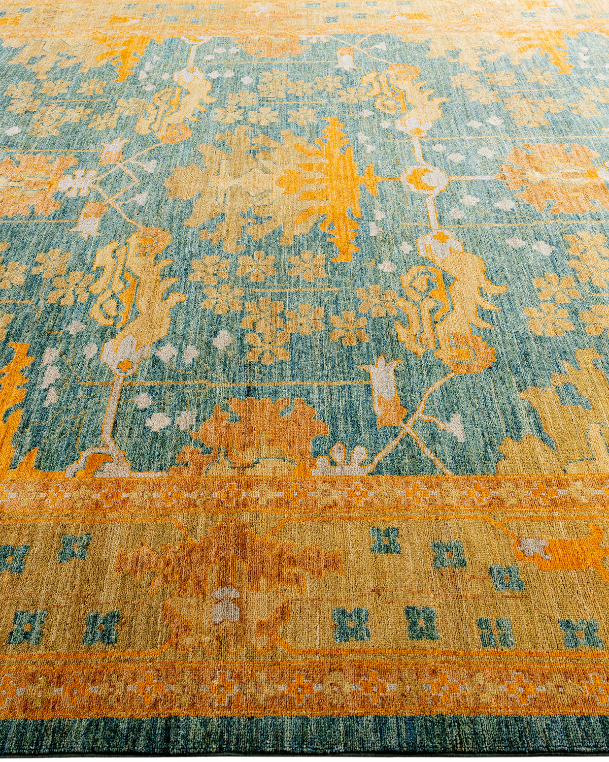 With simple, bold, yet informal designs and a broad palette of colors that ranges from earthy hues to brilliant gems, the rugs in the Arts & Crafts collection infuse a room with a sense of sophisticated rebellion. Nature-inspired motifs are the focal point in lieu of more traditional motifs. Skillfully made with sumptuous wool piles, these rugs bring a harmonious freedom and charming irreverence to any space.