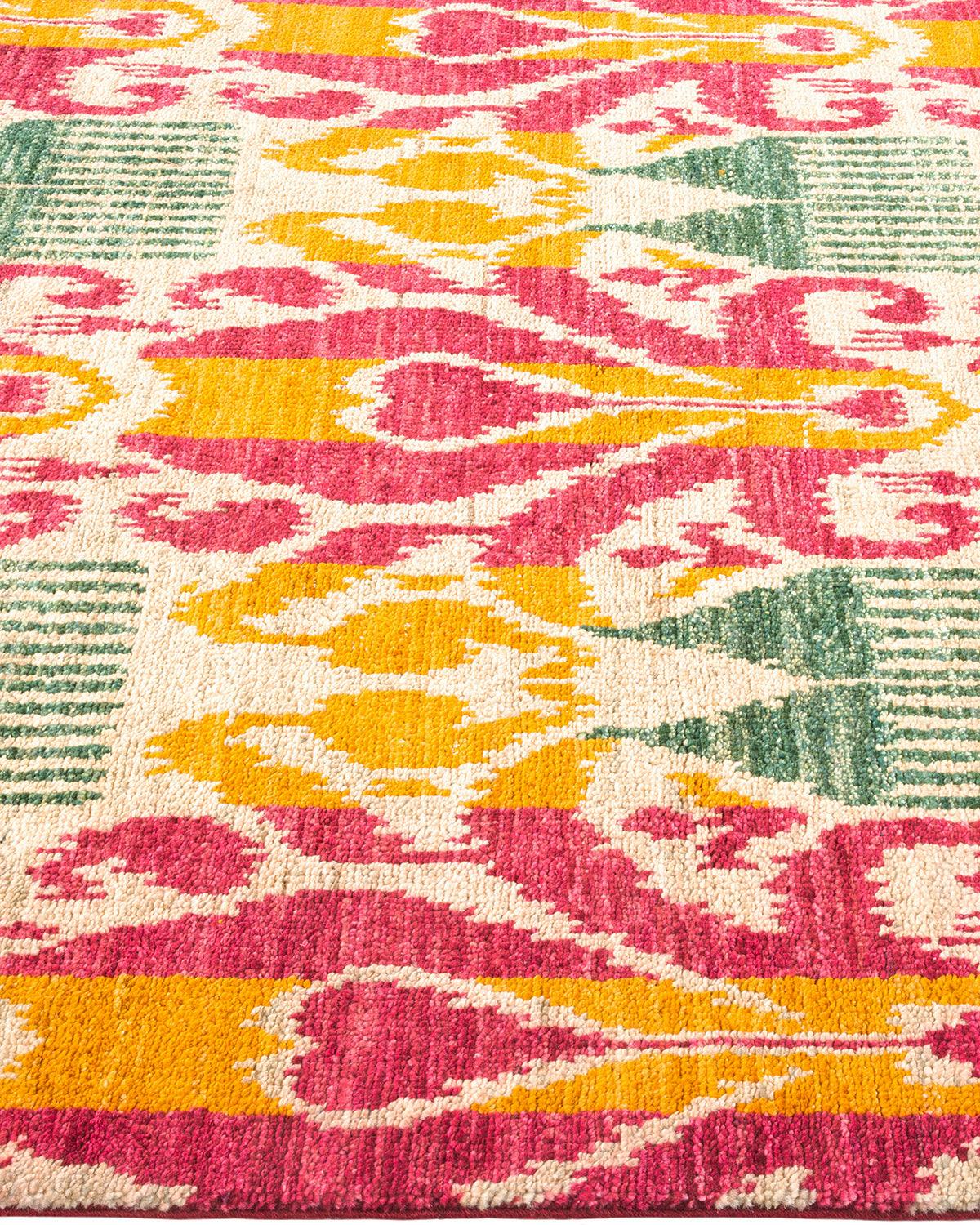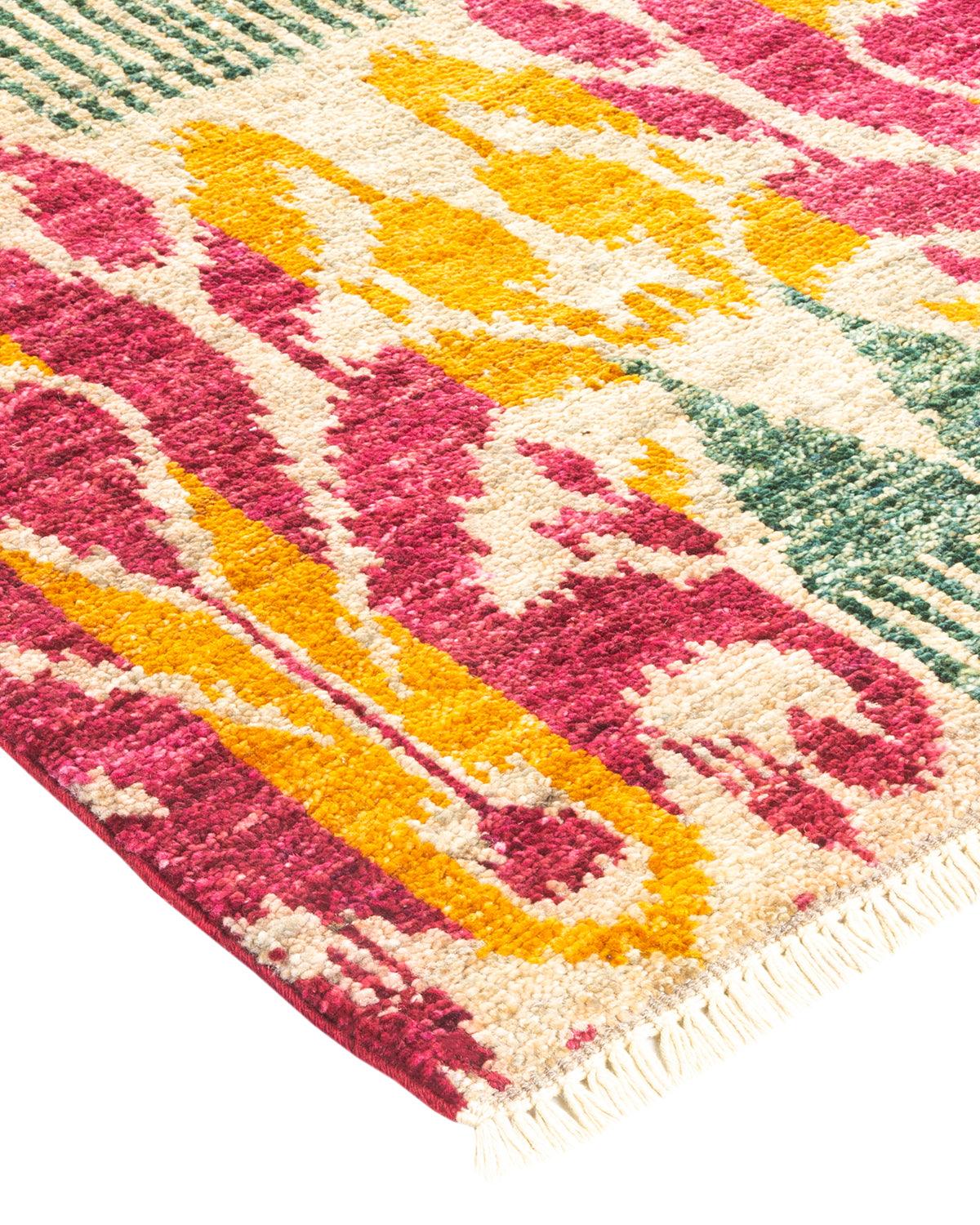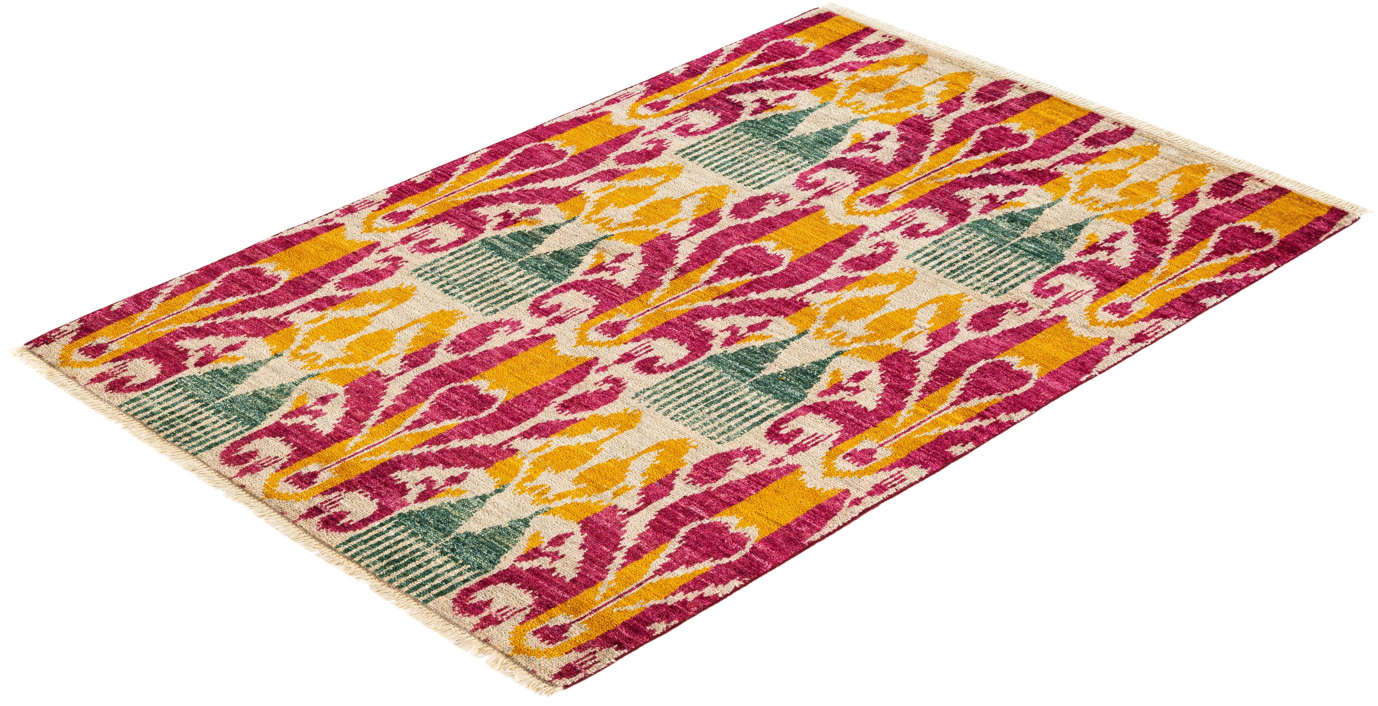 Contemporary Hand Knotted Modern Ikat Ivory Area Rug 4' 0" x 5' 10"