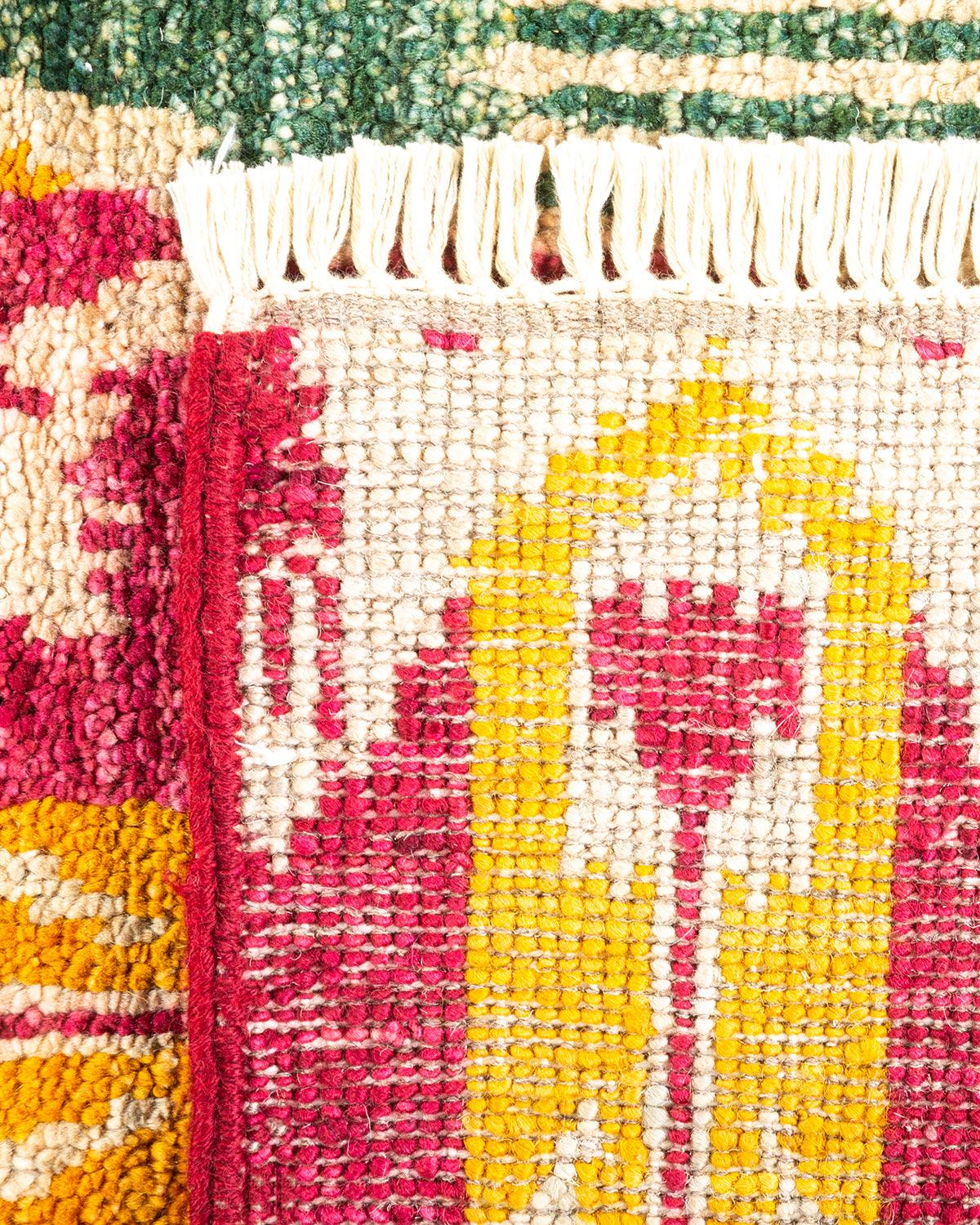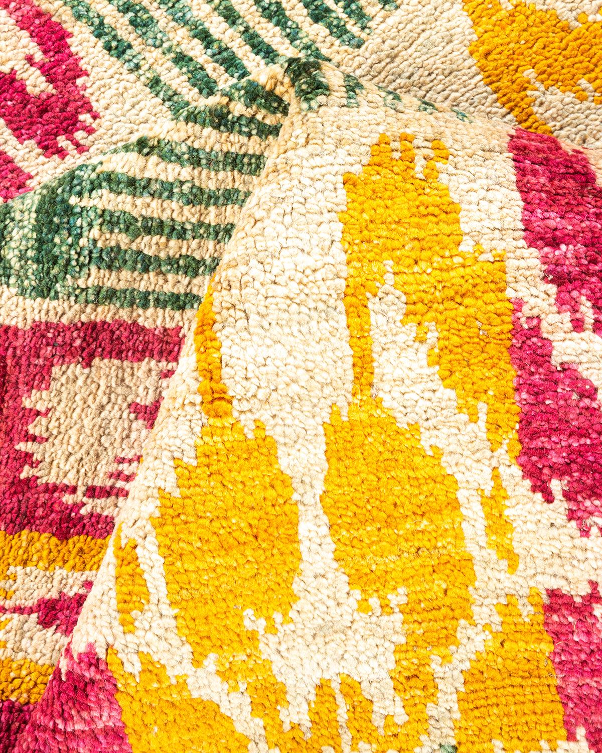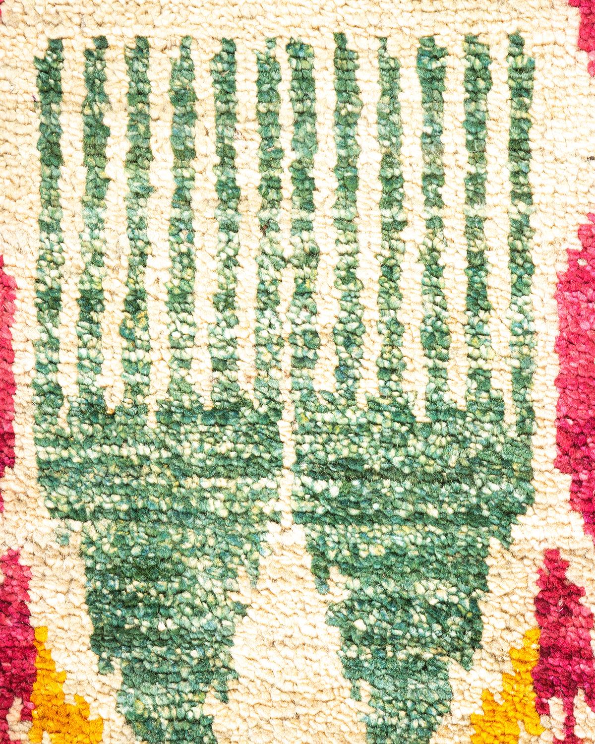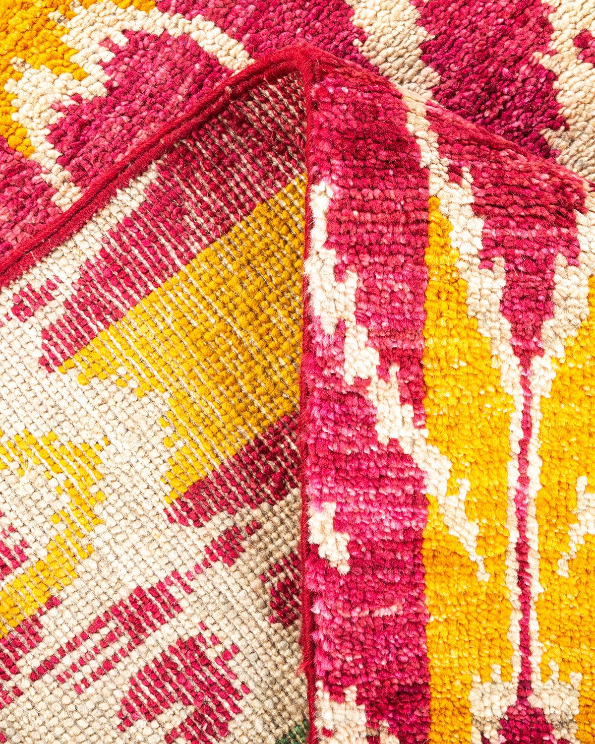 Contemporary Hand Knotted Modern Ikat Ivory Area Rug 4' 0" x 5' 10"