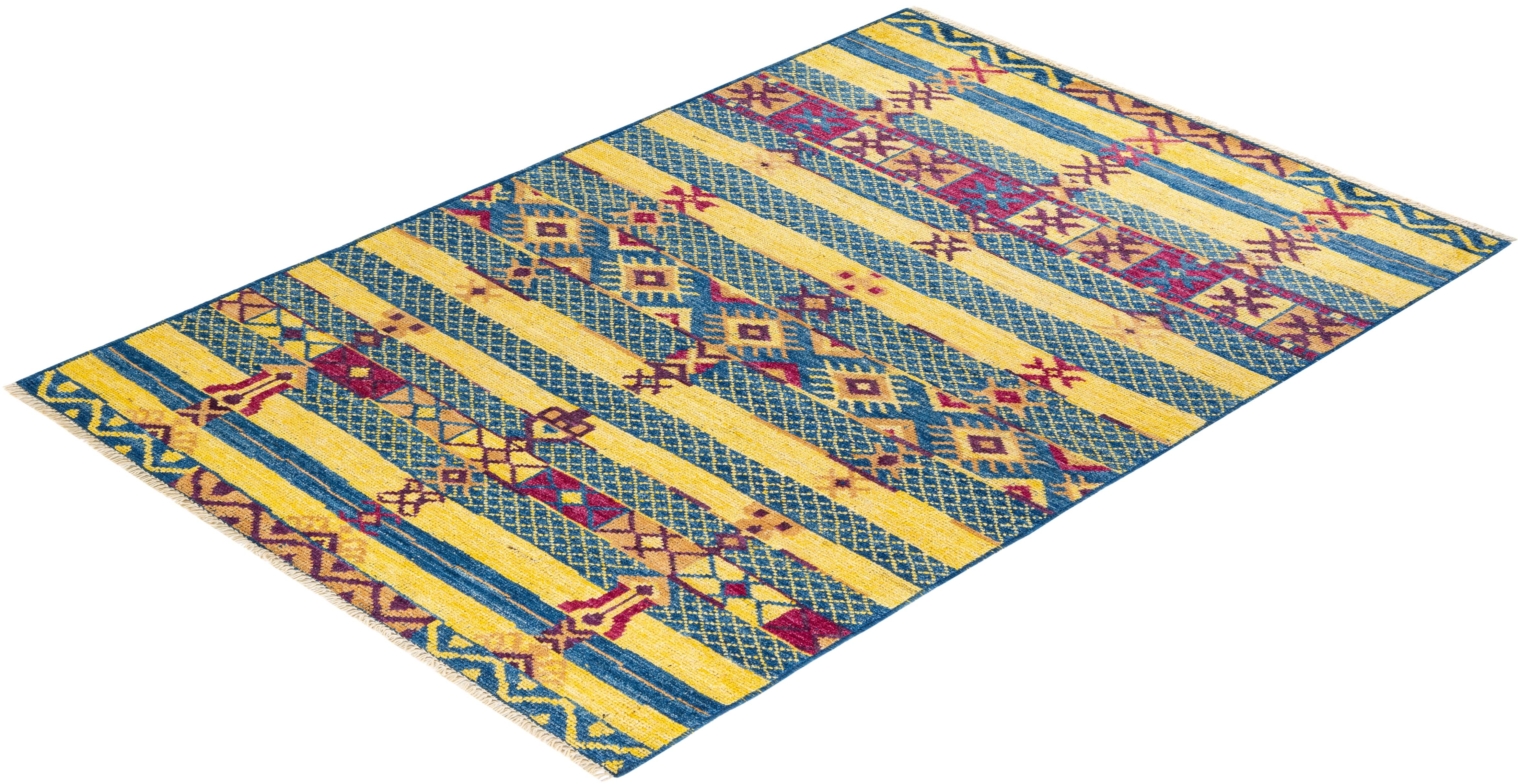 Contemporary Hand Knotted Modern Striped Blue Area Rug 5' 5" x 7' 10"