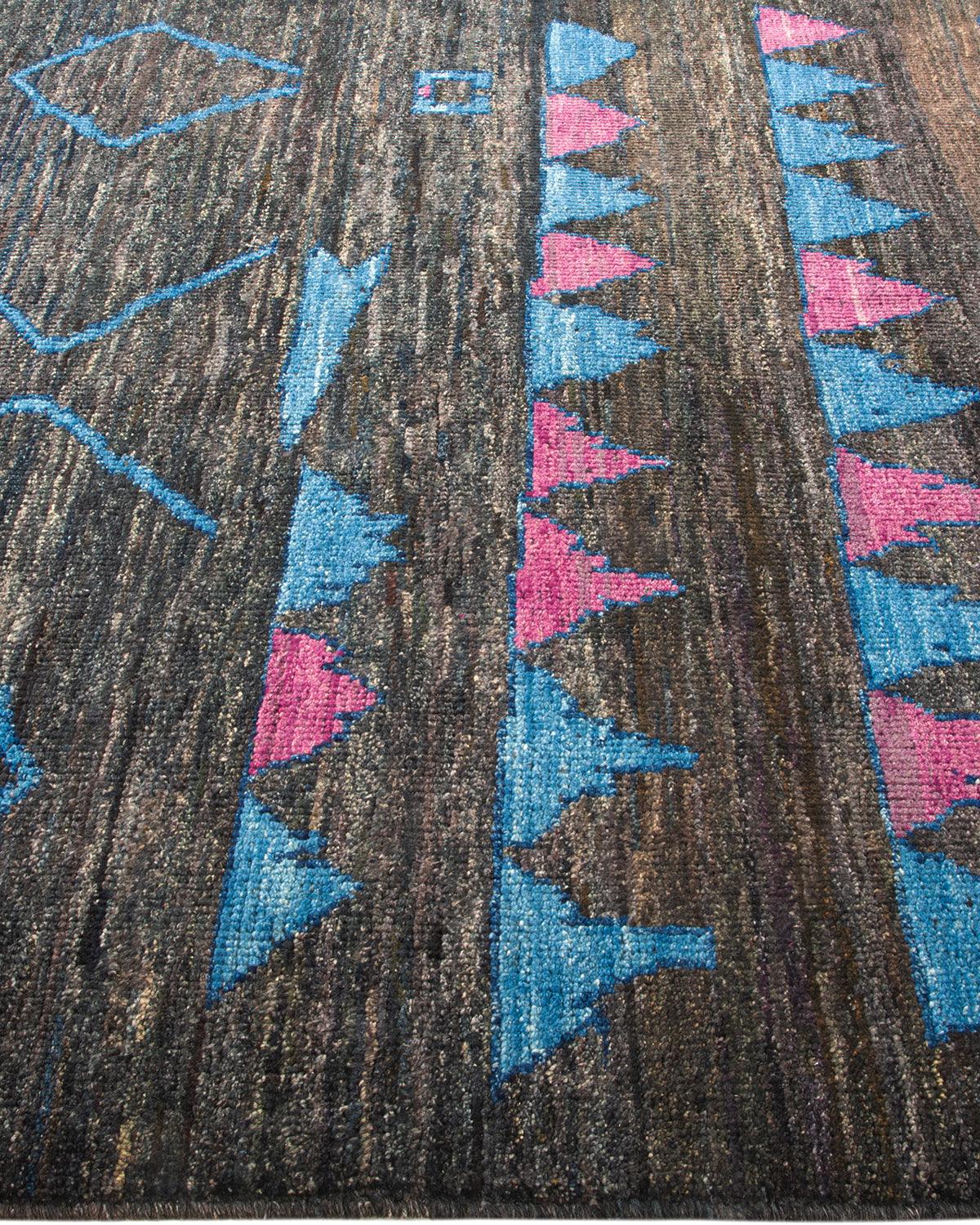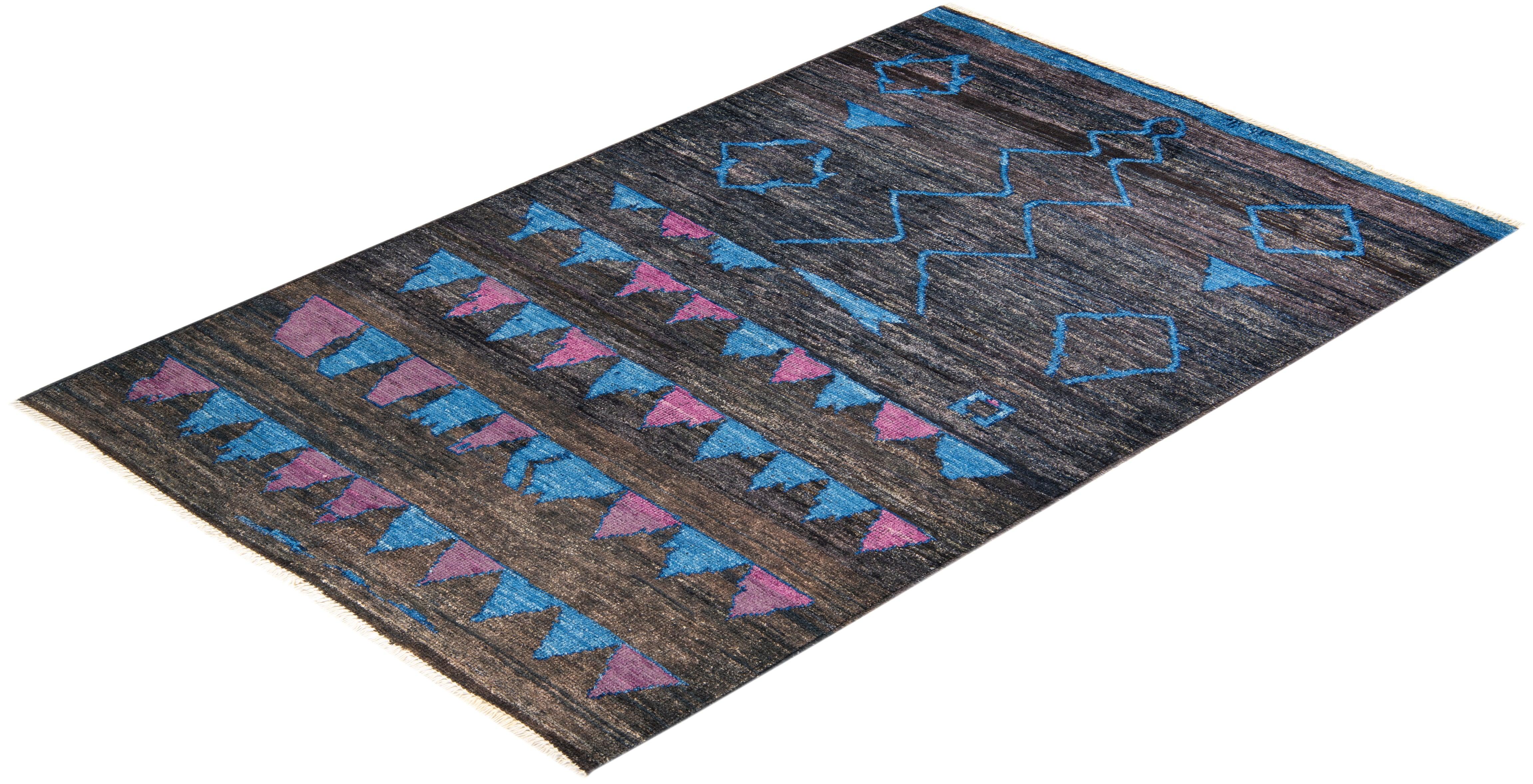 Contemporary Hand Knotted Modern Moroccan Black Area Rug 5' 3" x 8' 3"