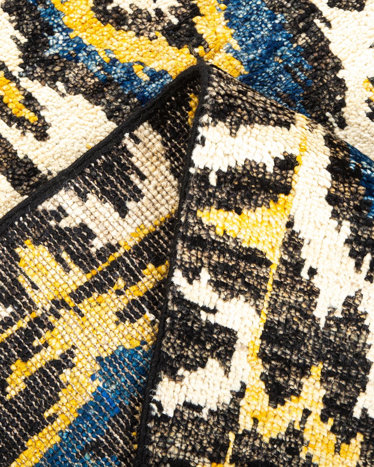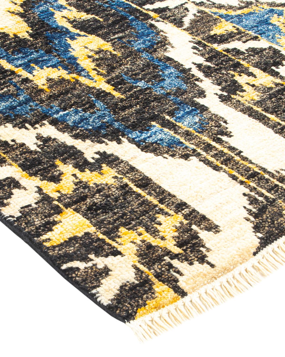 Contemporary Hand Knotted Modern Ikat Black Area Rug 3' 10" x 6' 2"