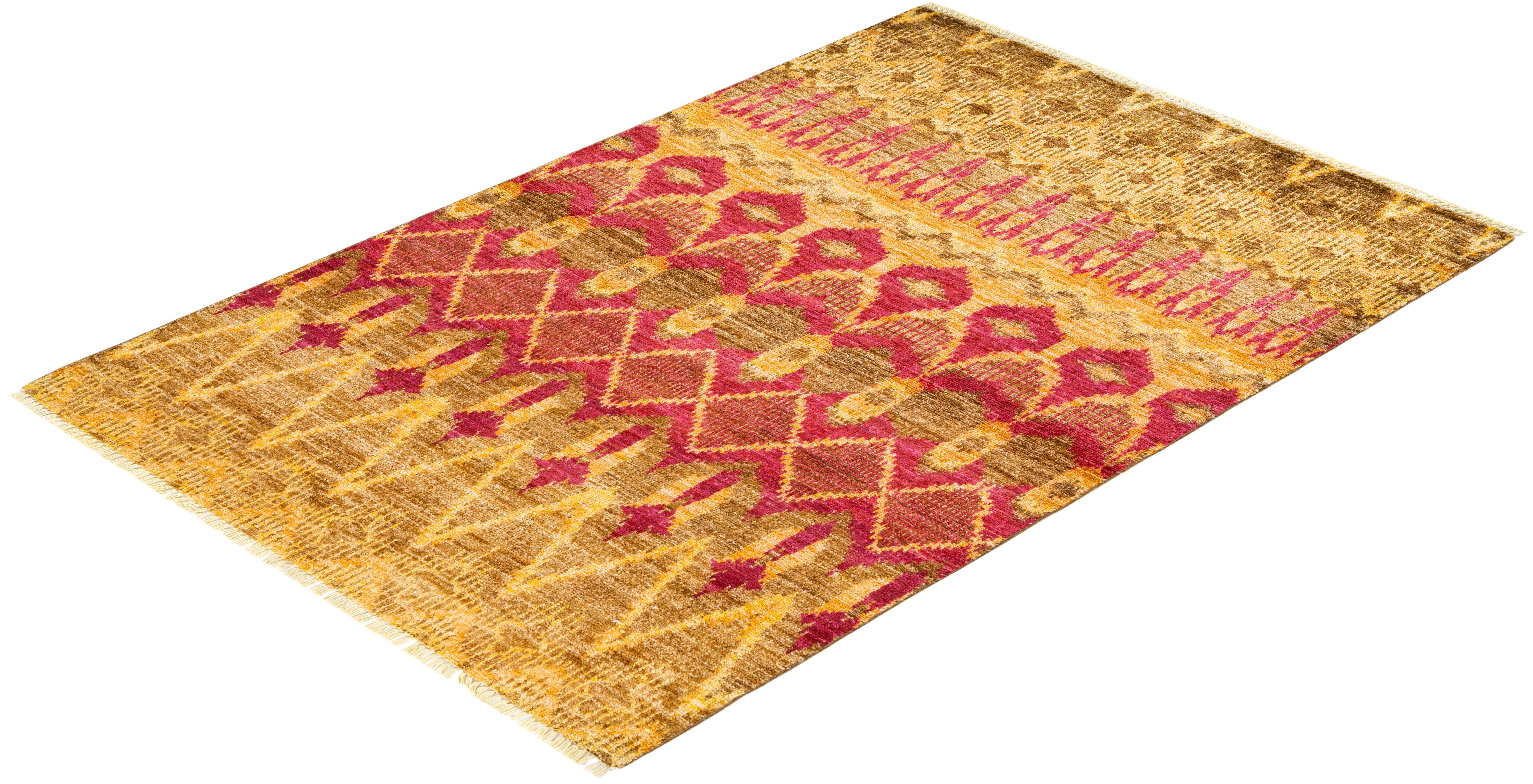 Contemporary Hand Knotted Modern Ikat Green Area Rug 4' 1" x 6' 2"