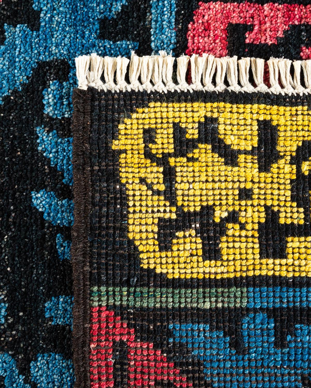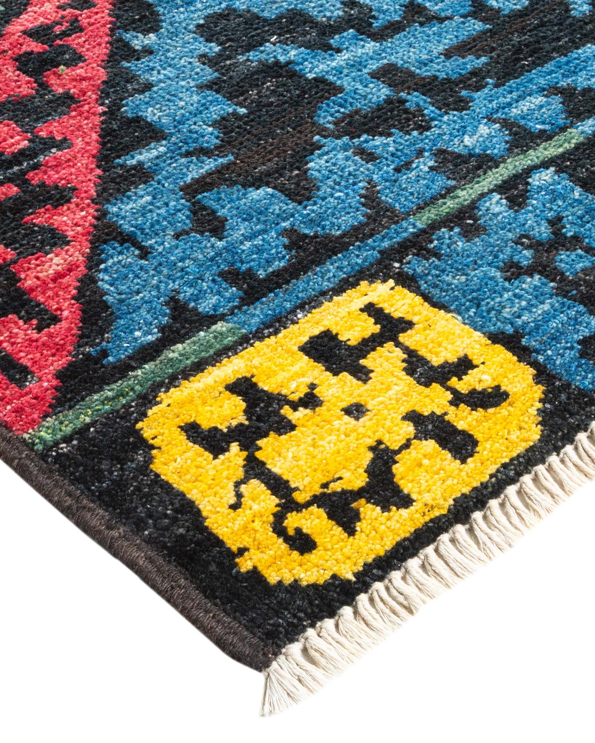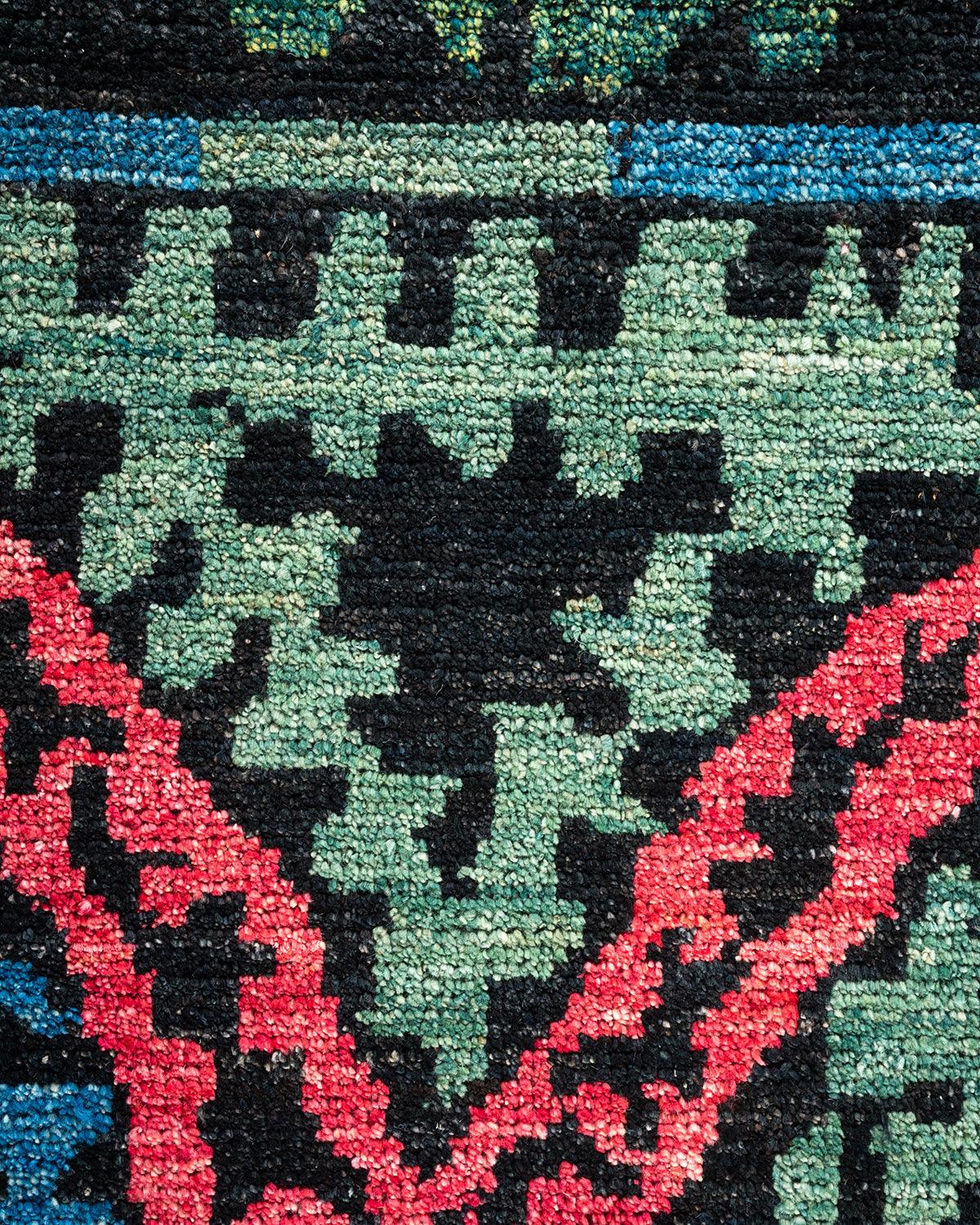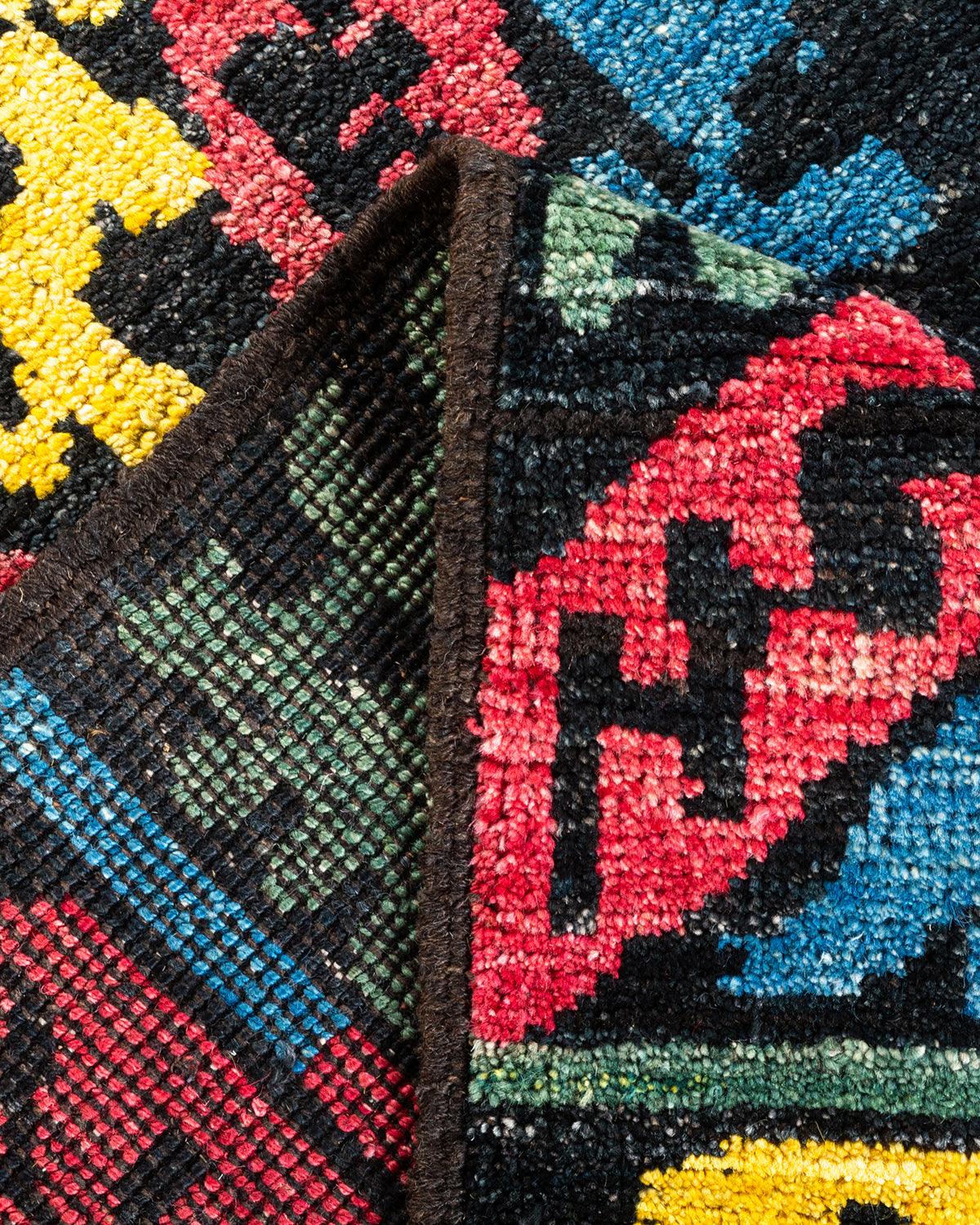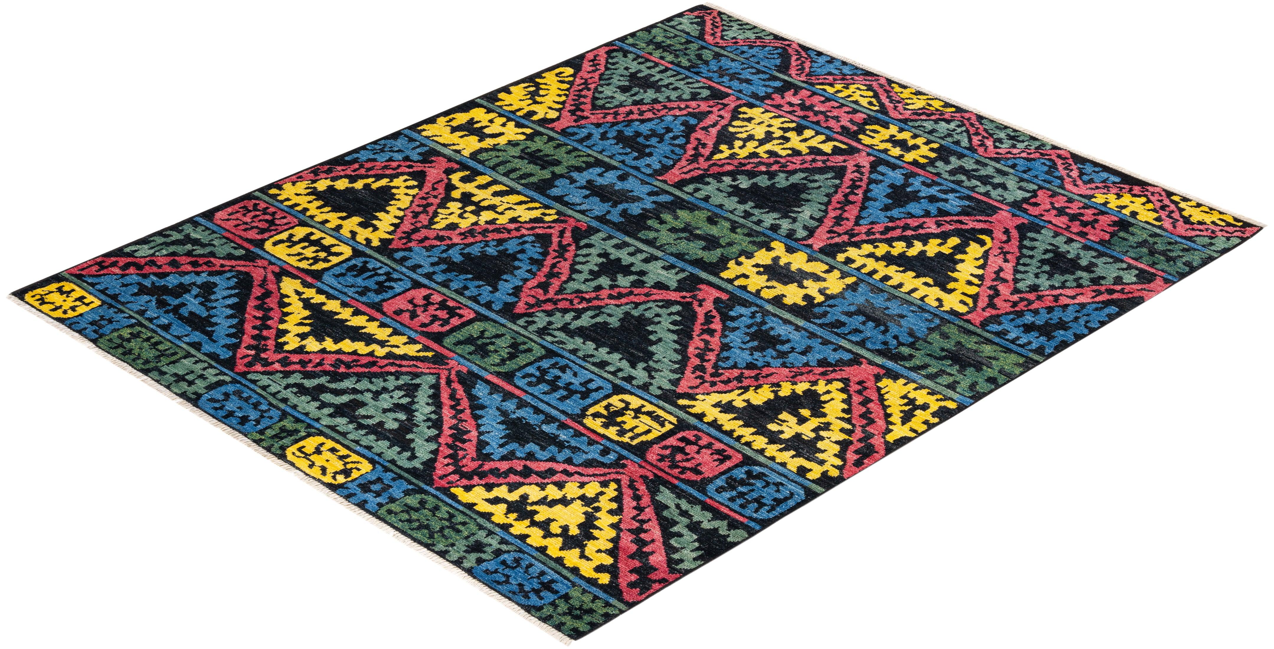 Contemporary Hand Knotted Modern Ikat Black Area Rug 8' 2" x 9' 10"