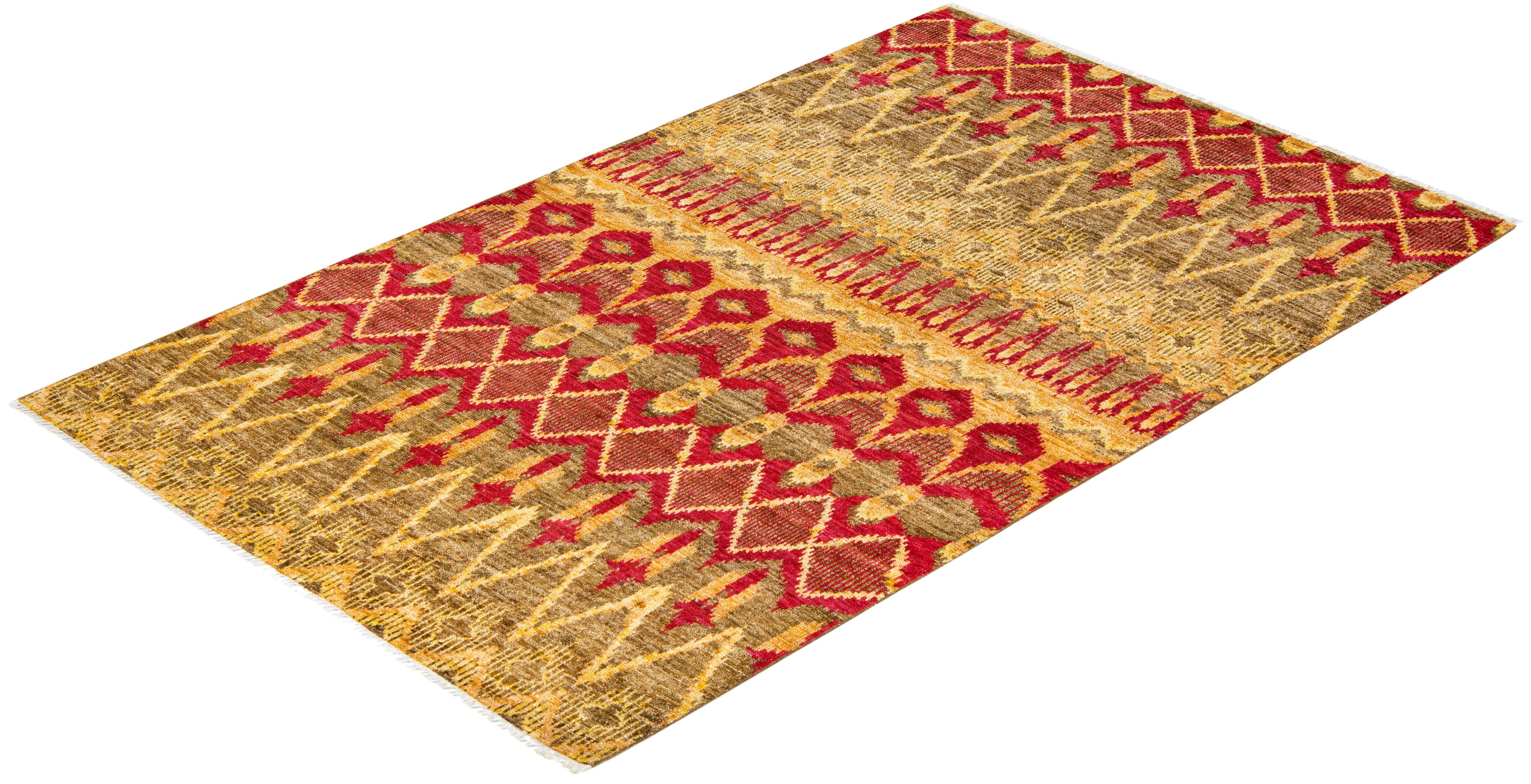 Contemporary Hand Knotted Modern Ikat Green Area Rug 4' 10" x 8' 1"