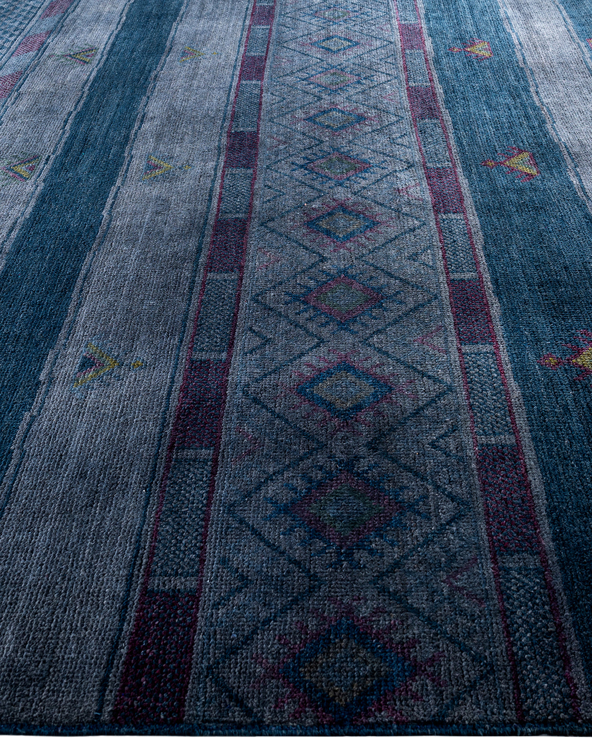 Modern, One-of-a-Kind Hand-Knotted Area Rug - Gray, 9' 1" x 11' 10"