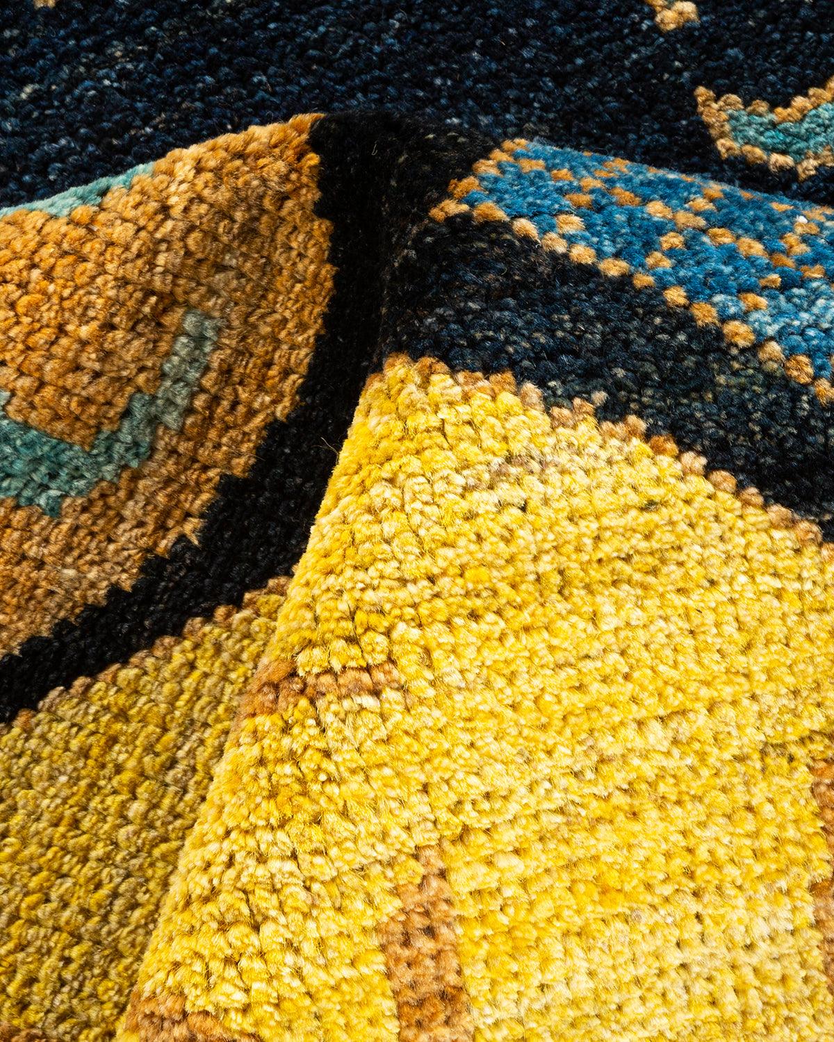 Contemporary Hand Knotted Modern Ikat Black Area Rug 9' 4" x 11' 10"