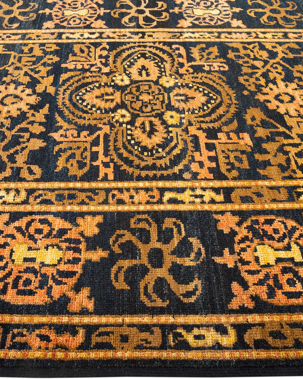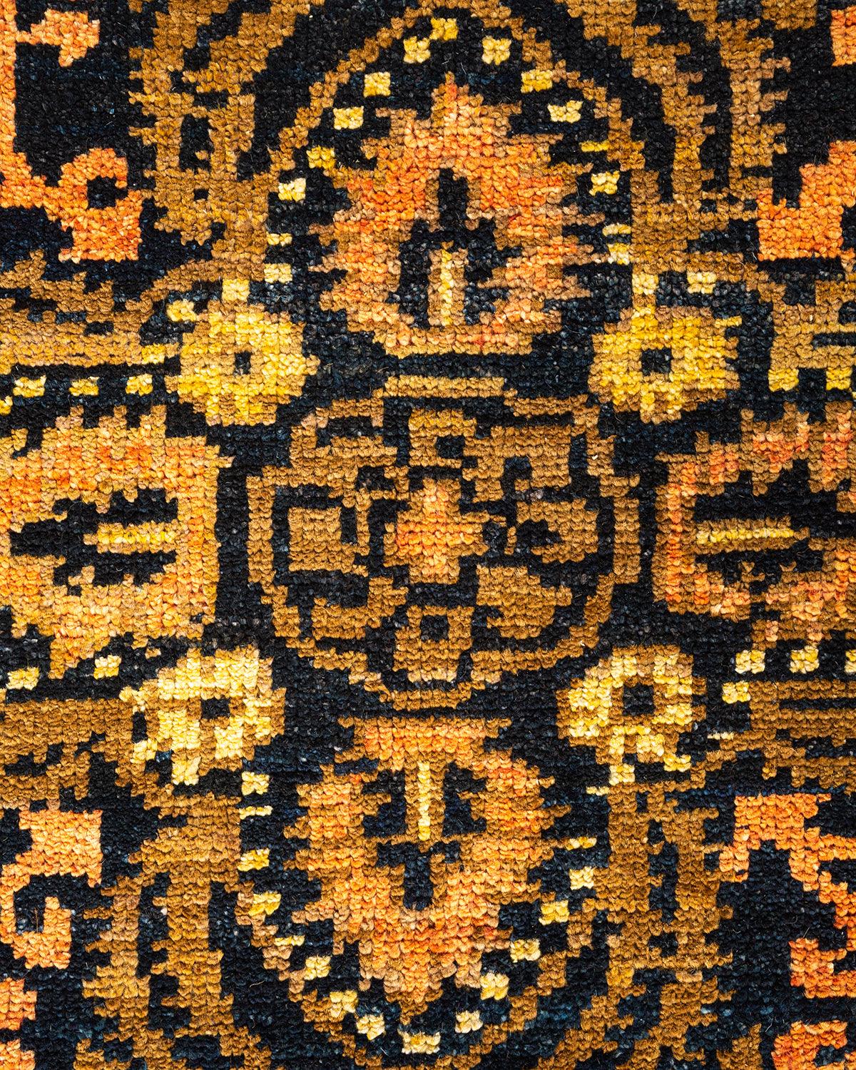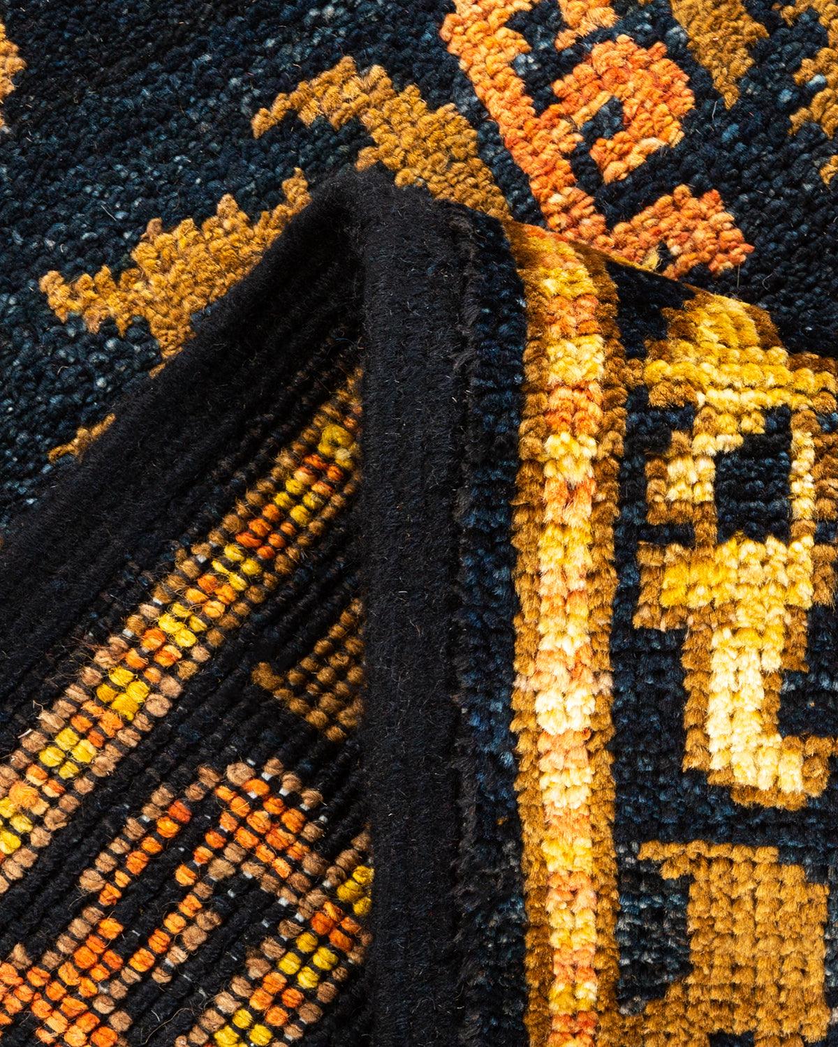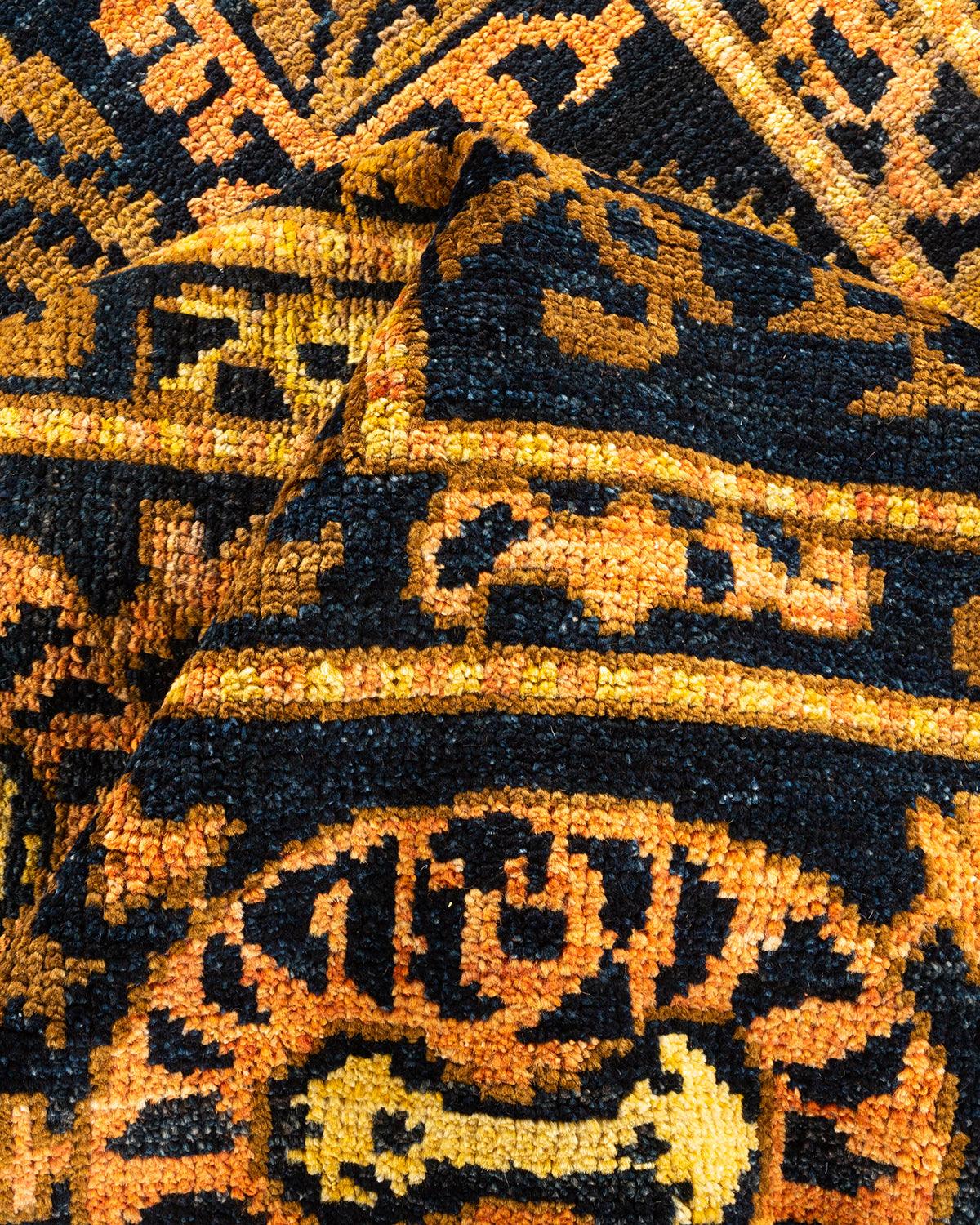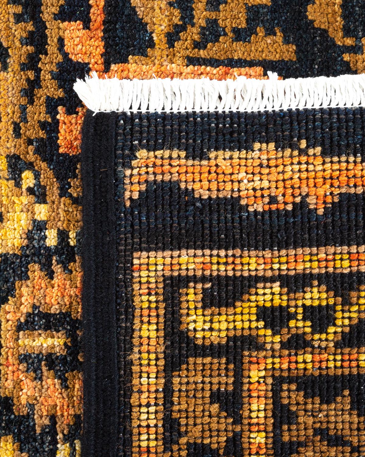 Contemporary Hand Knotted Modern Tribal Black Area Rug 6' 5" x 8' 10"