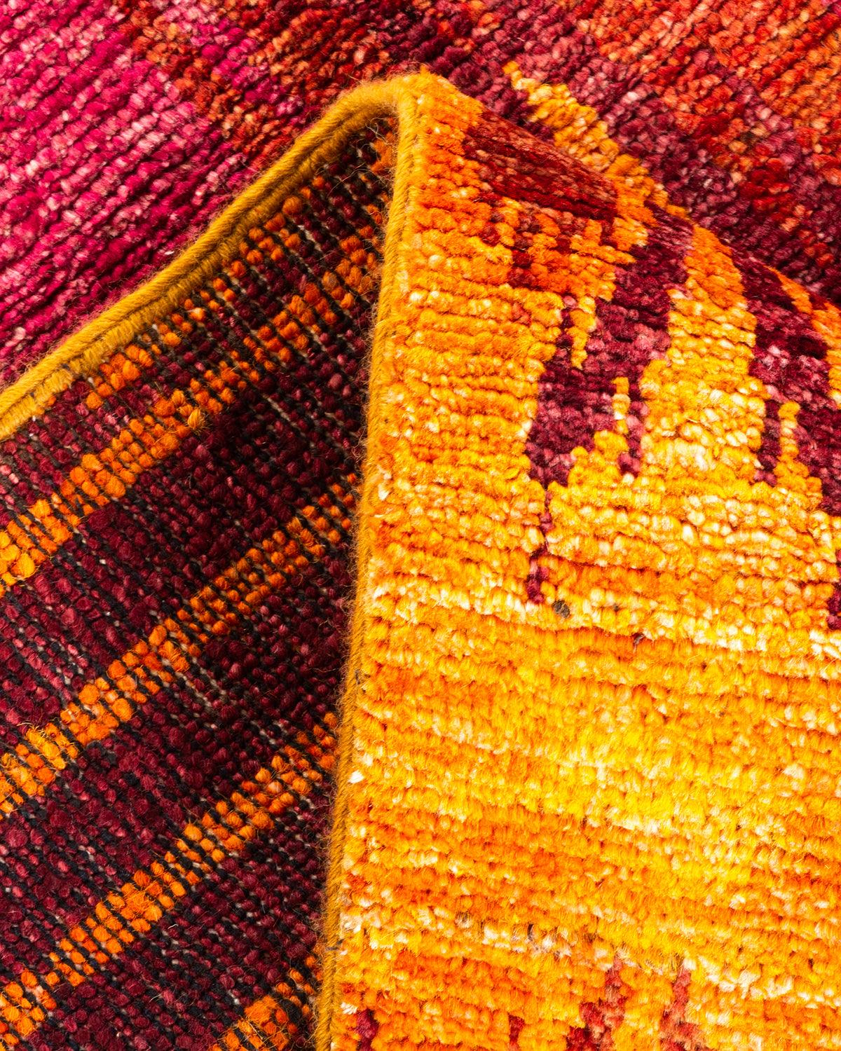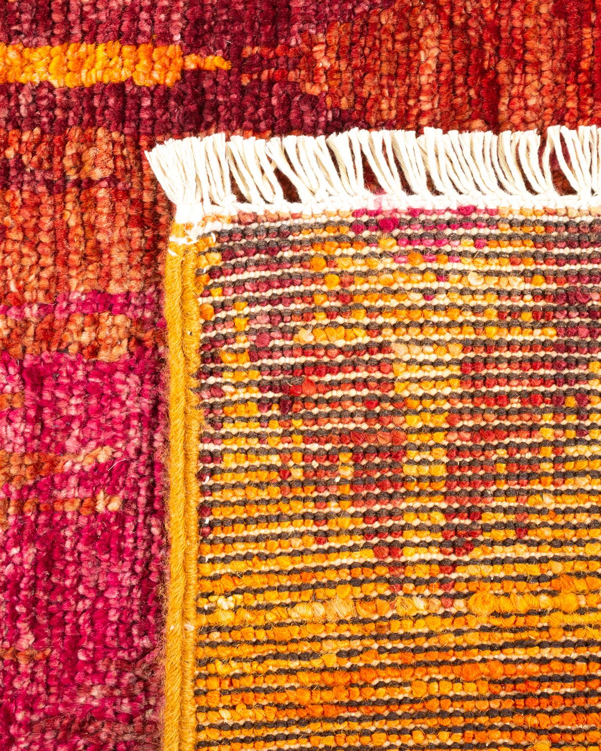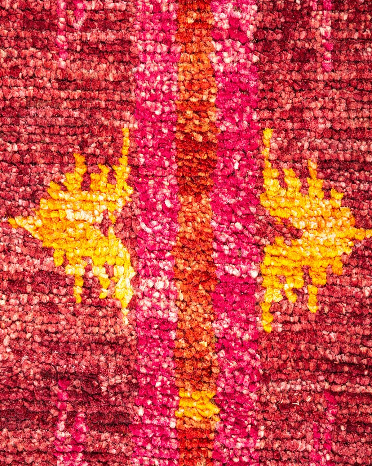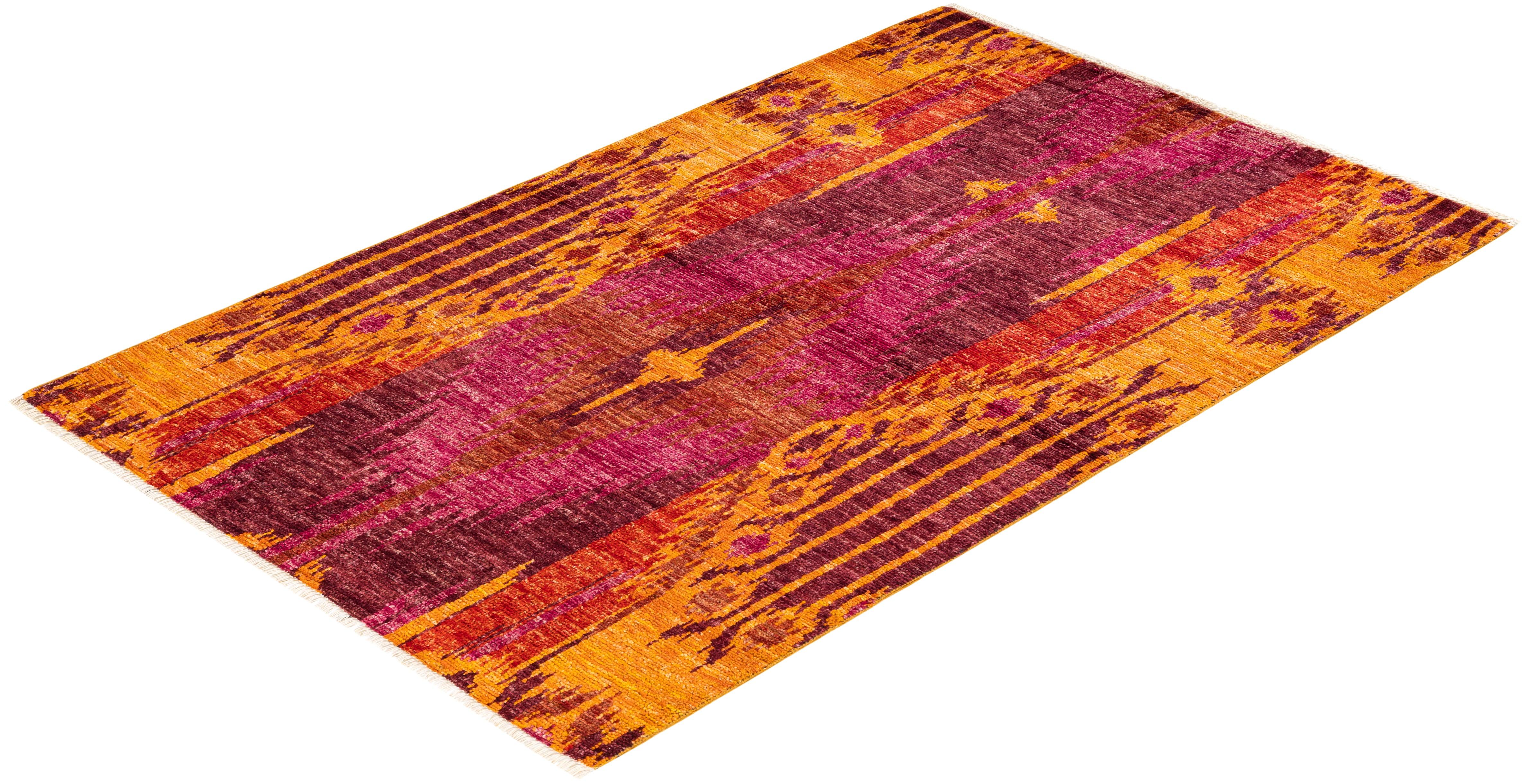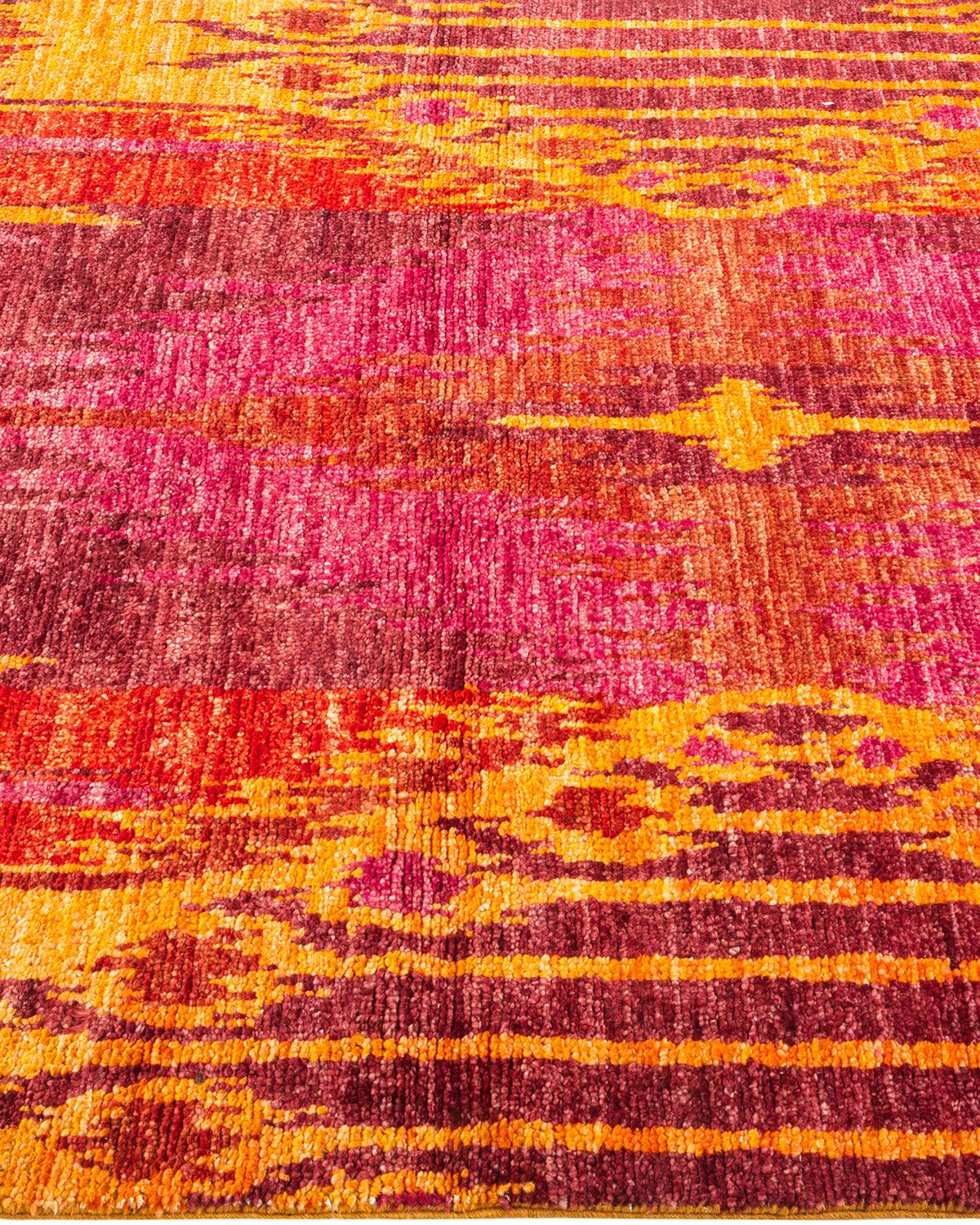 Contemporary Hand Knotted Modern Ikat Red Area Rug 4' 0" x 6' 4"
