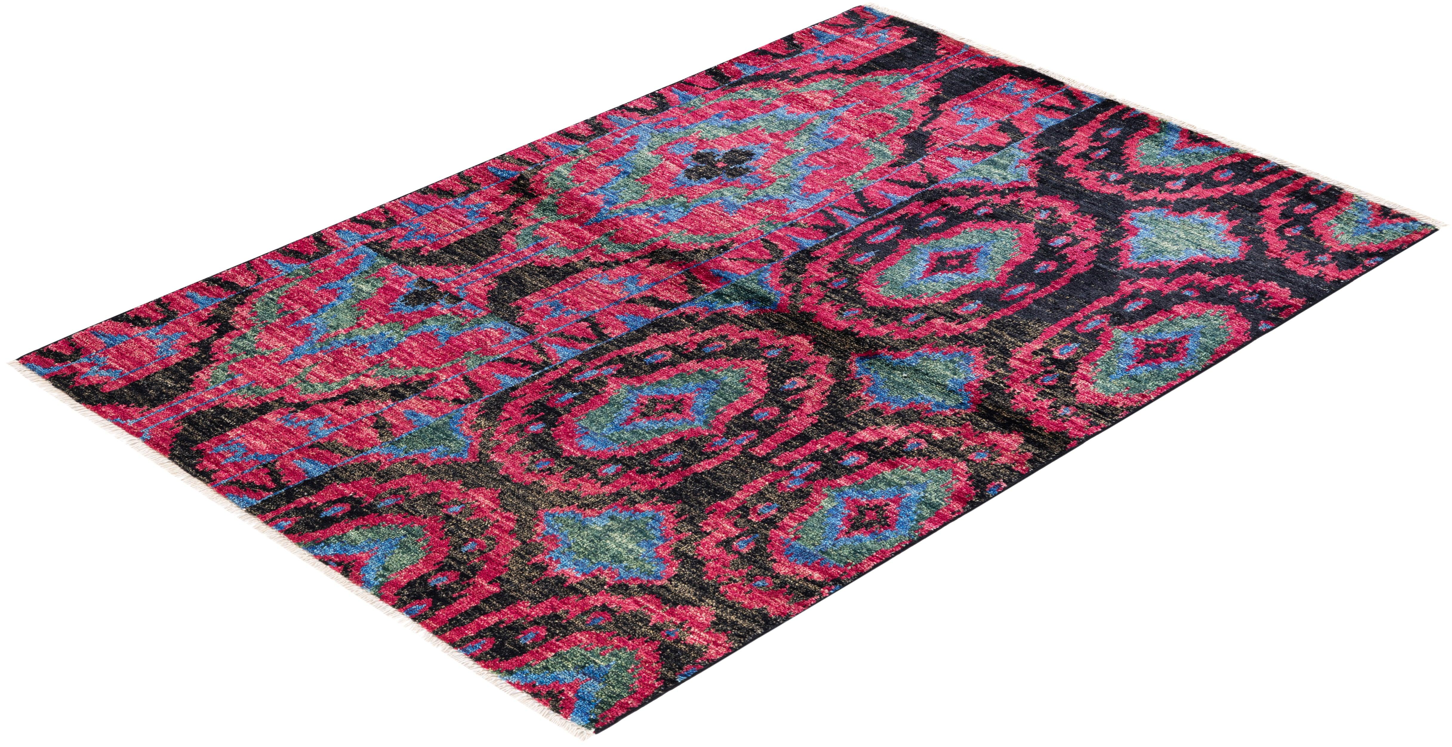 Contemporary Hand Knotted Modern Ikat Purple Area Rug 4' 1" x 5' 9"