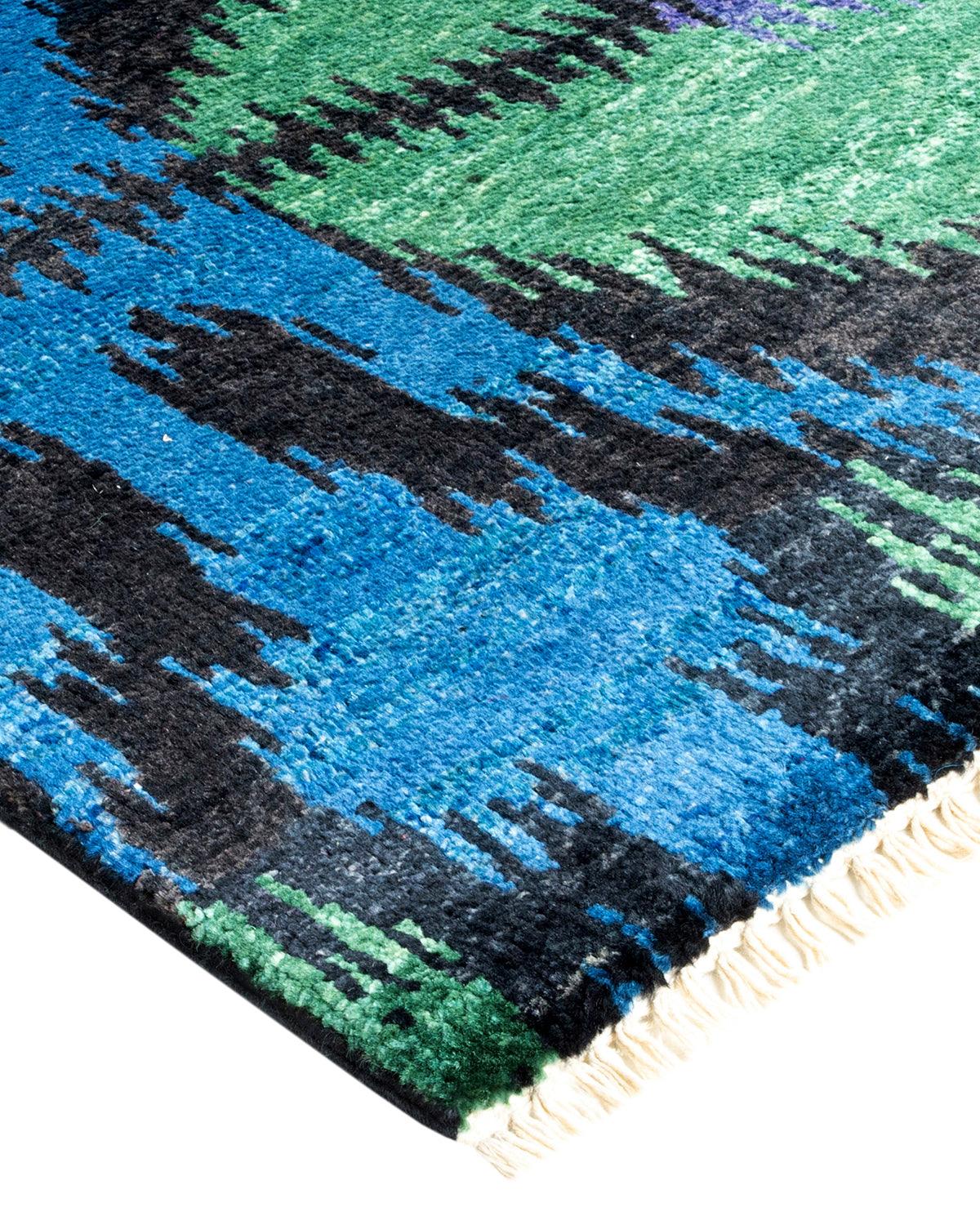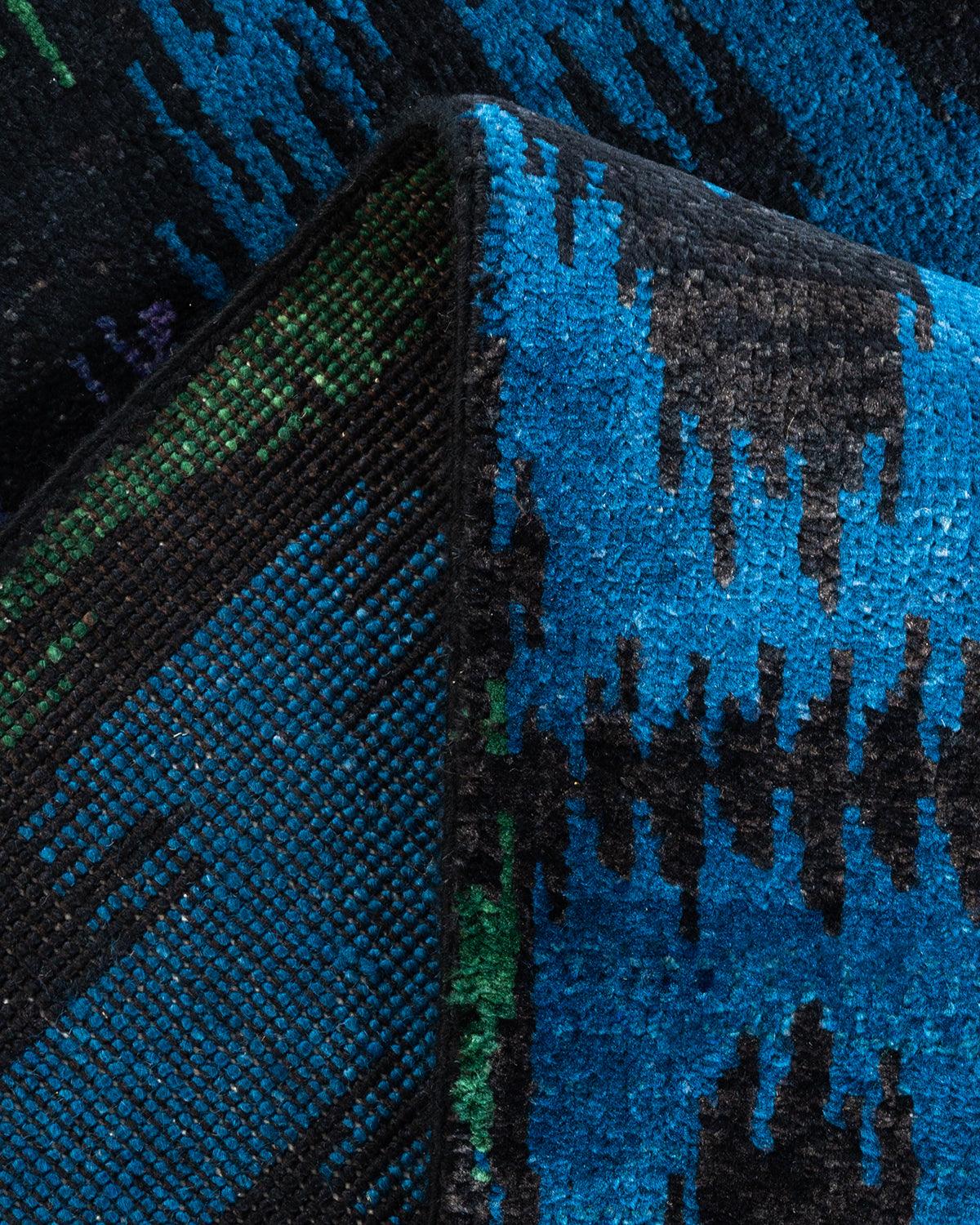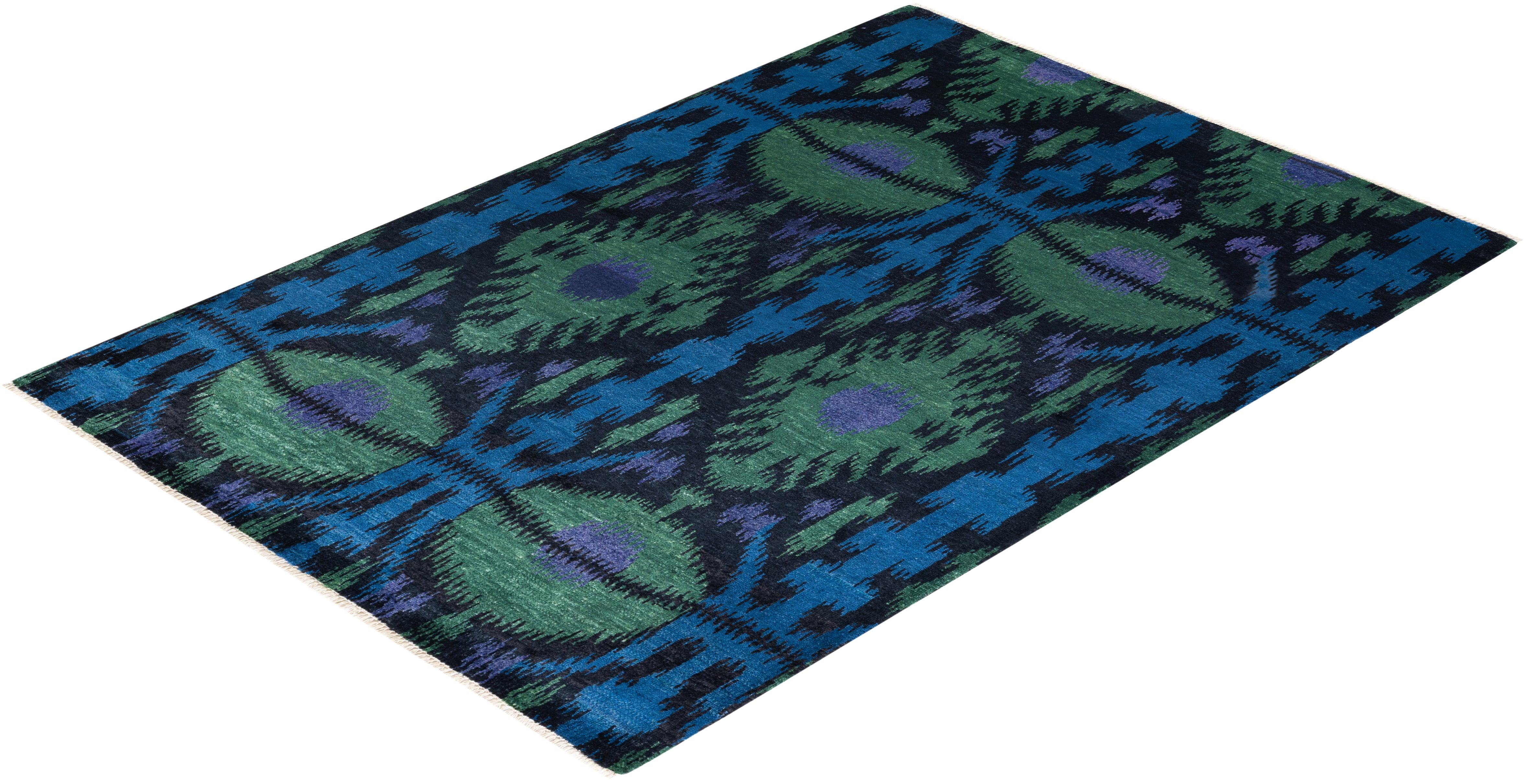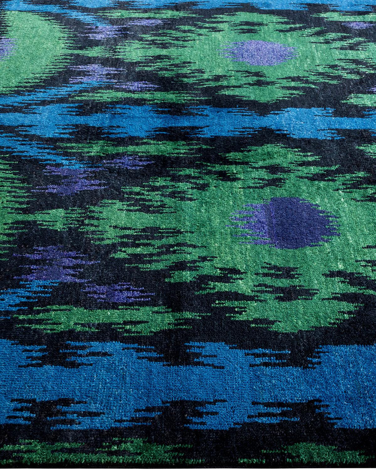 Contemporary Hand Knotted Modern Ikat Black Area Rug 6' 1" x 8' 10"
