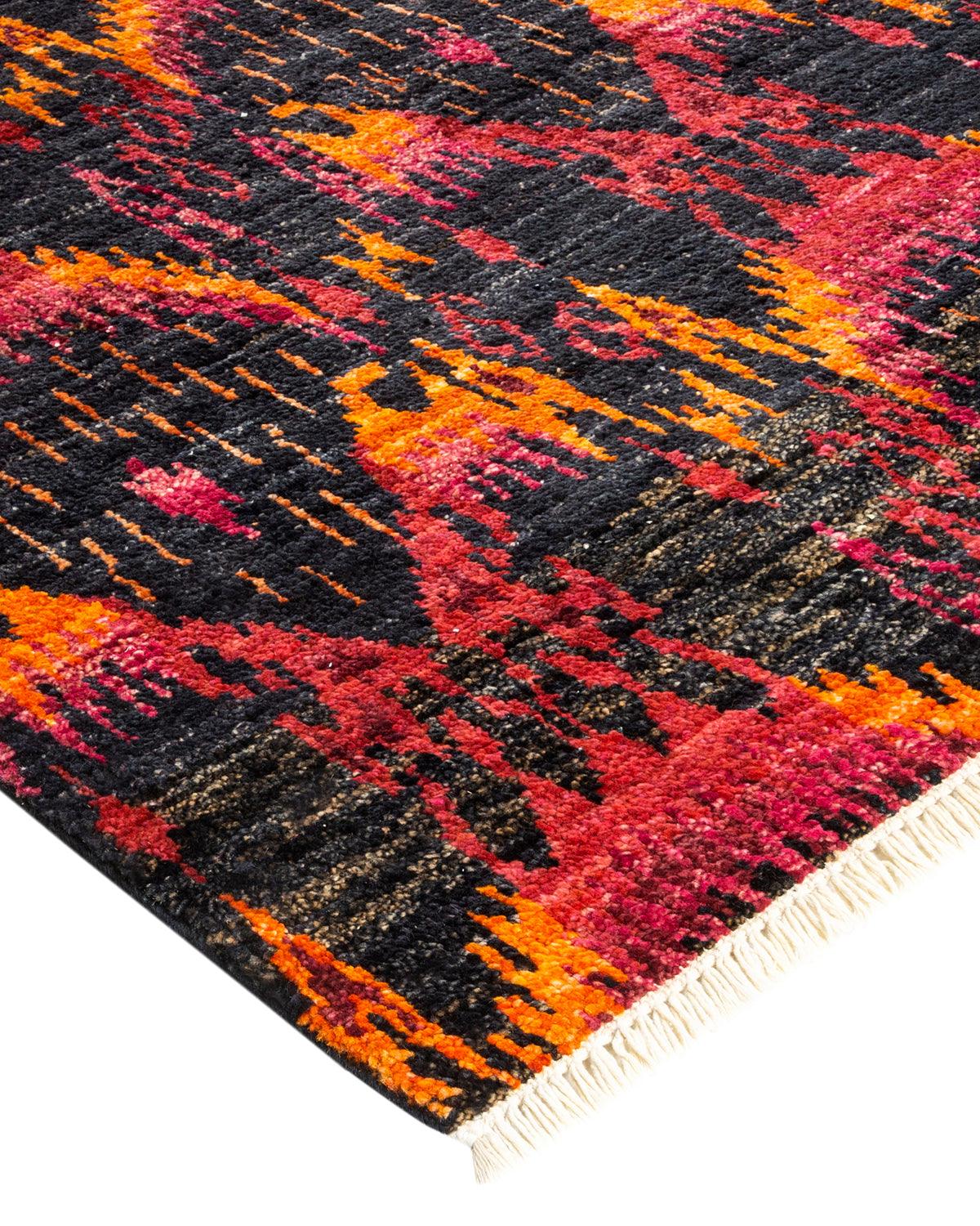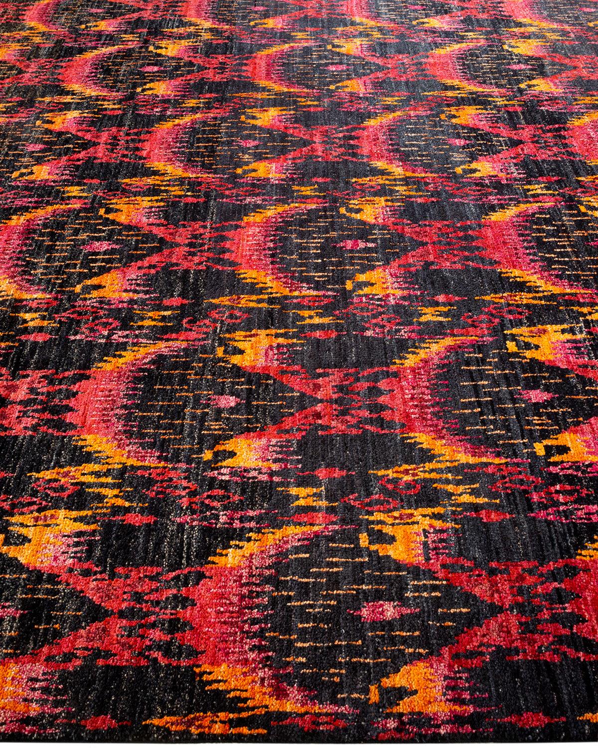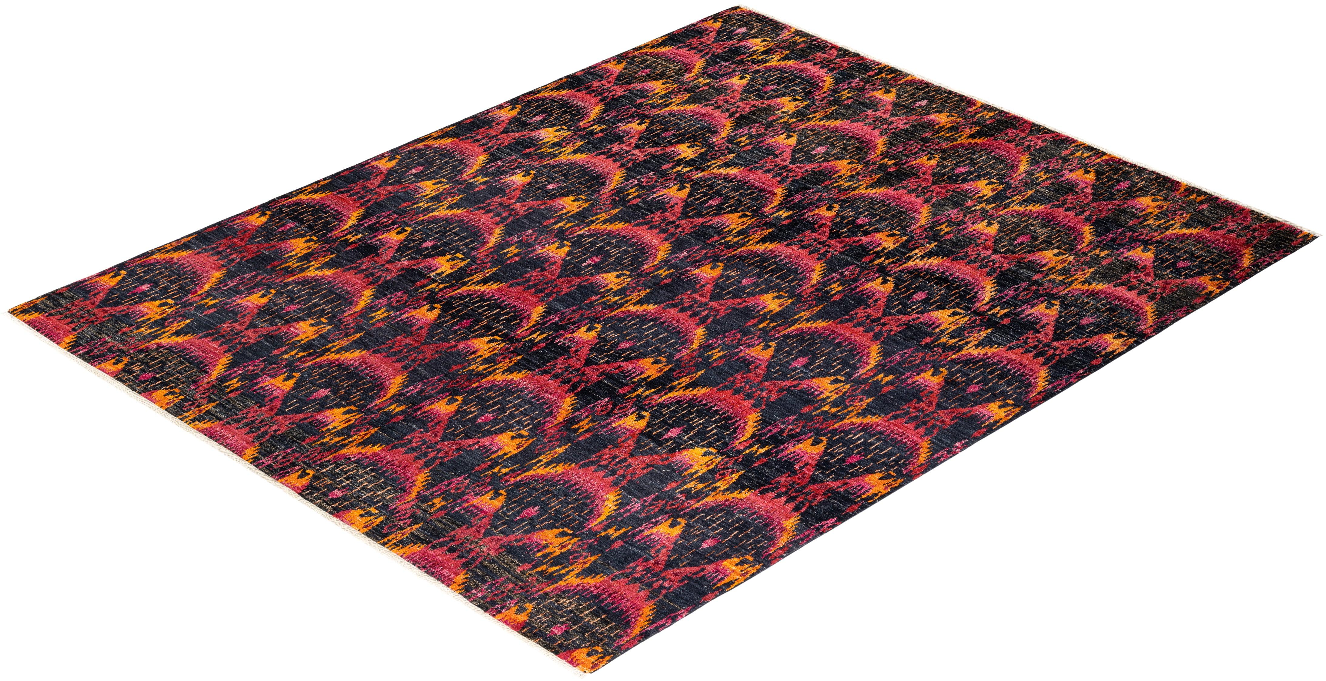 Contemporary Hand Knotted Modern Ikat Black Area Rug 8' 2" x 10' 2"