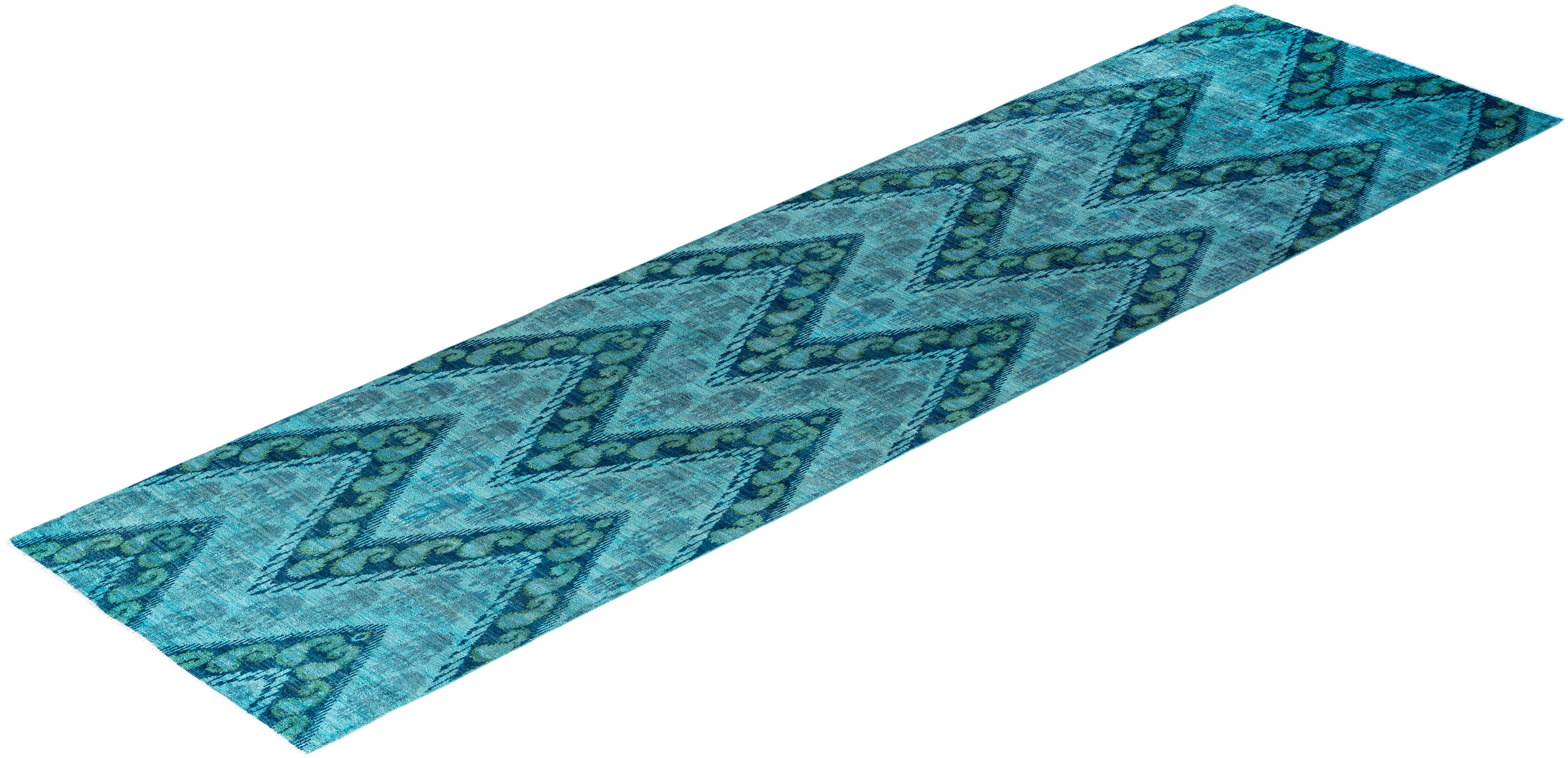 Modern, One-of-a-Kind Hand-Knotted Runner Rug - Blue, 4' 1" x 16' 4"