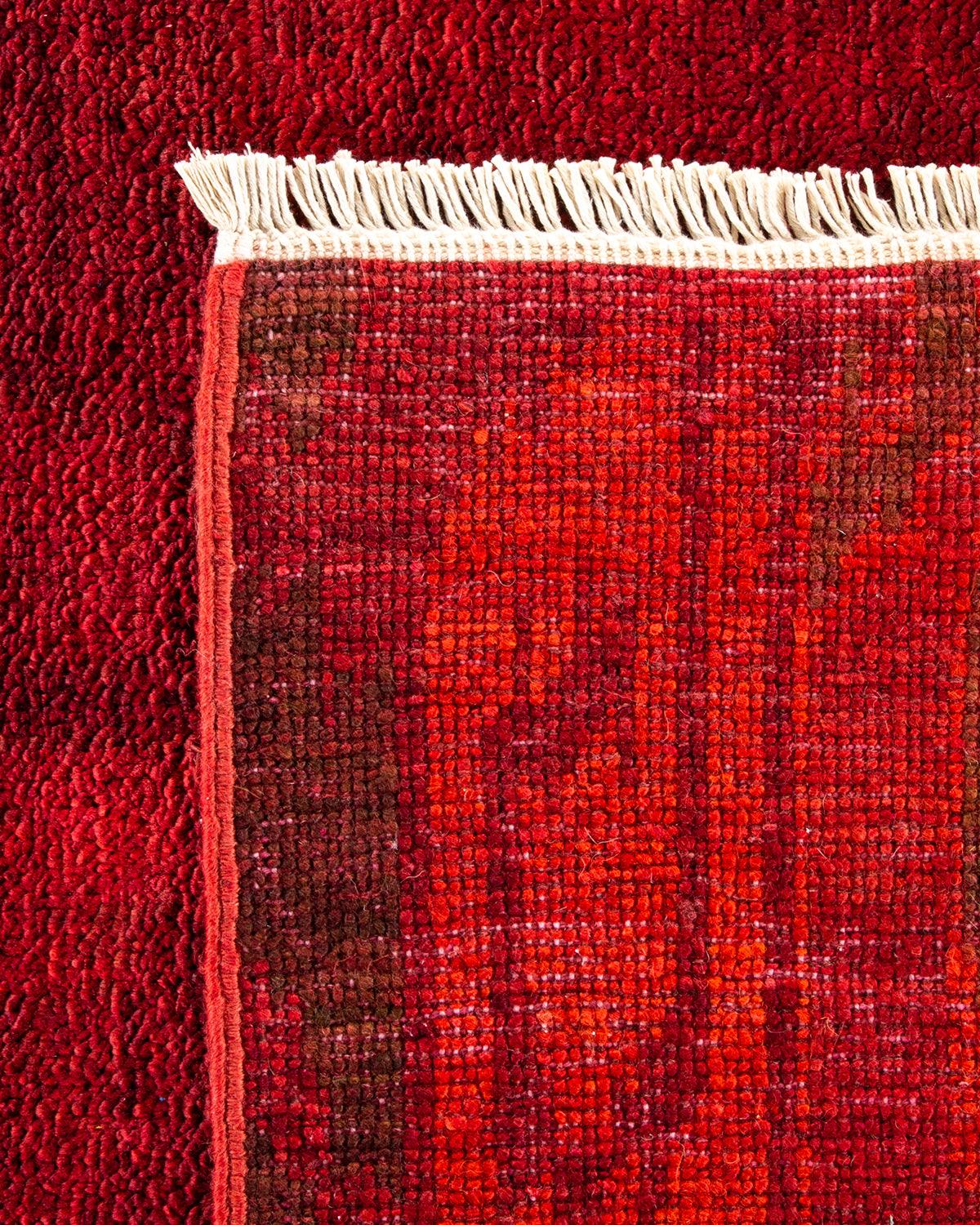 Contemporary Hand Knotted Modern Overdyed Red Area Rug 9' 9" x 13' 10"