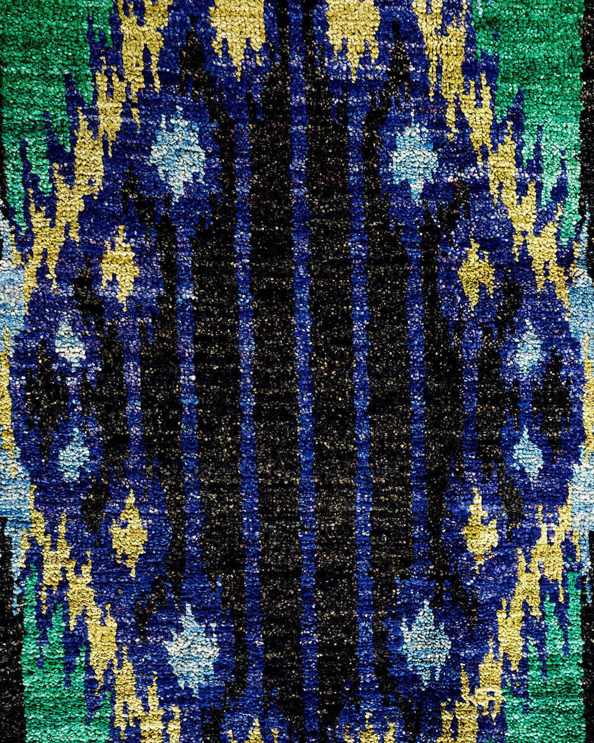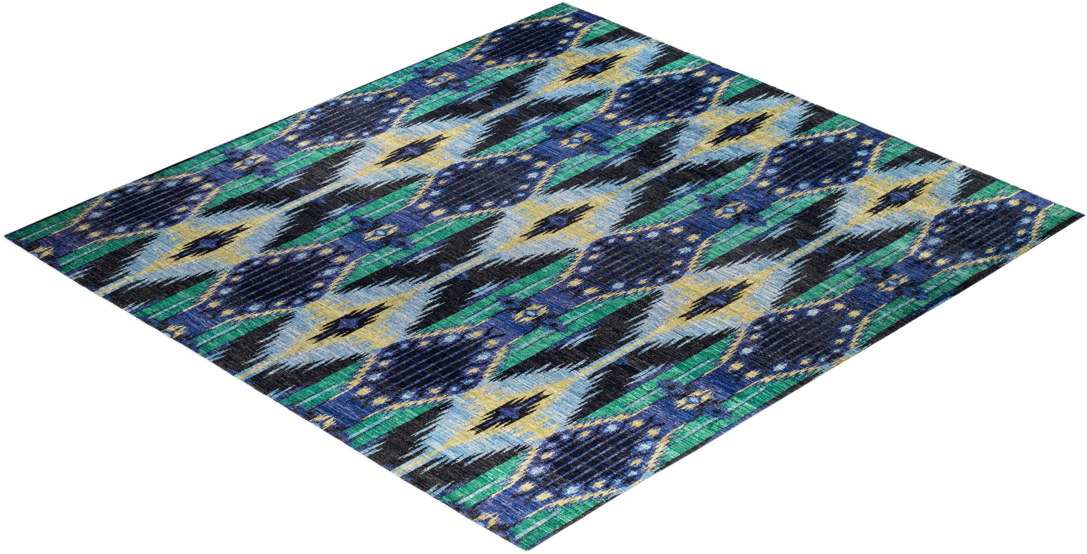 Contemporary Hand Knotted Modern Ikat Black Square Area Rug 12' 5" x 11' 10"