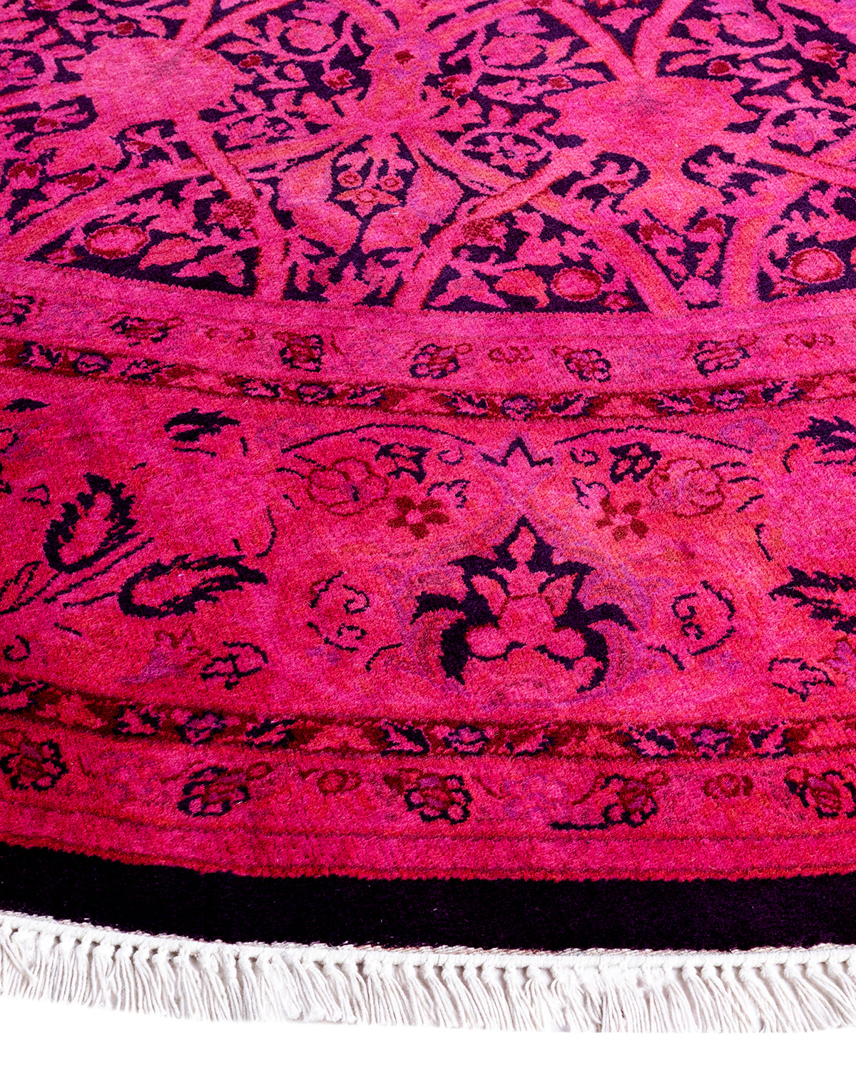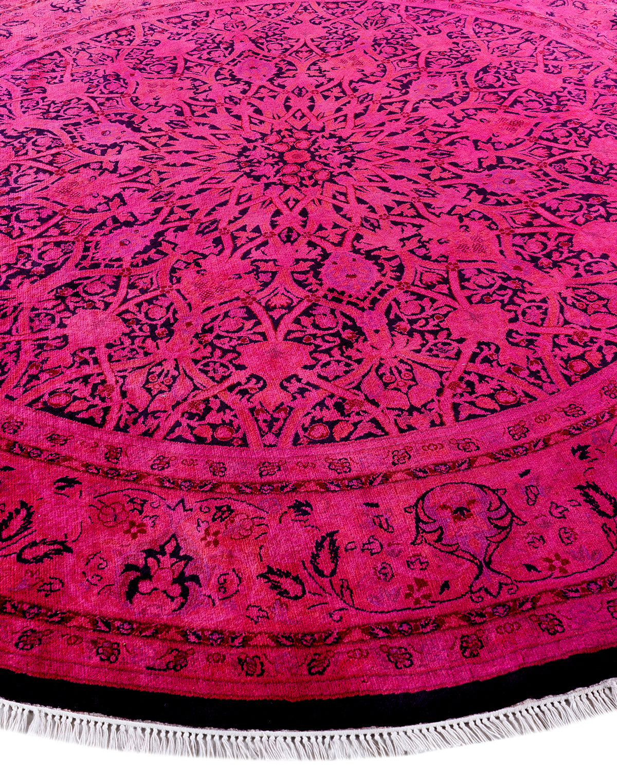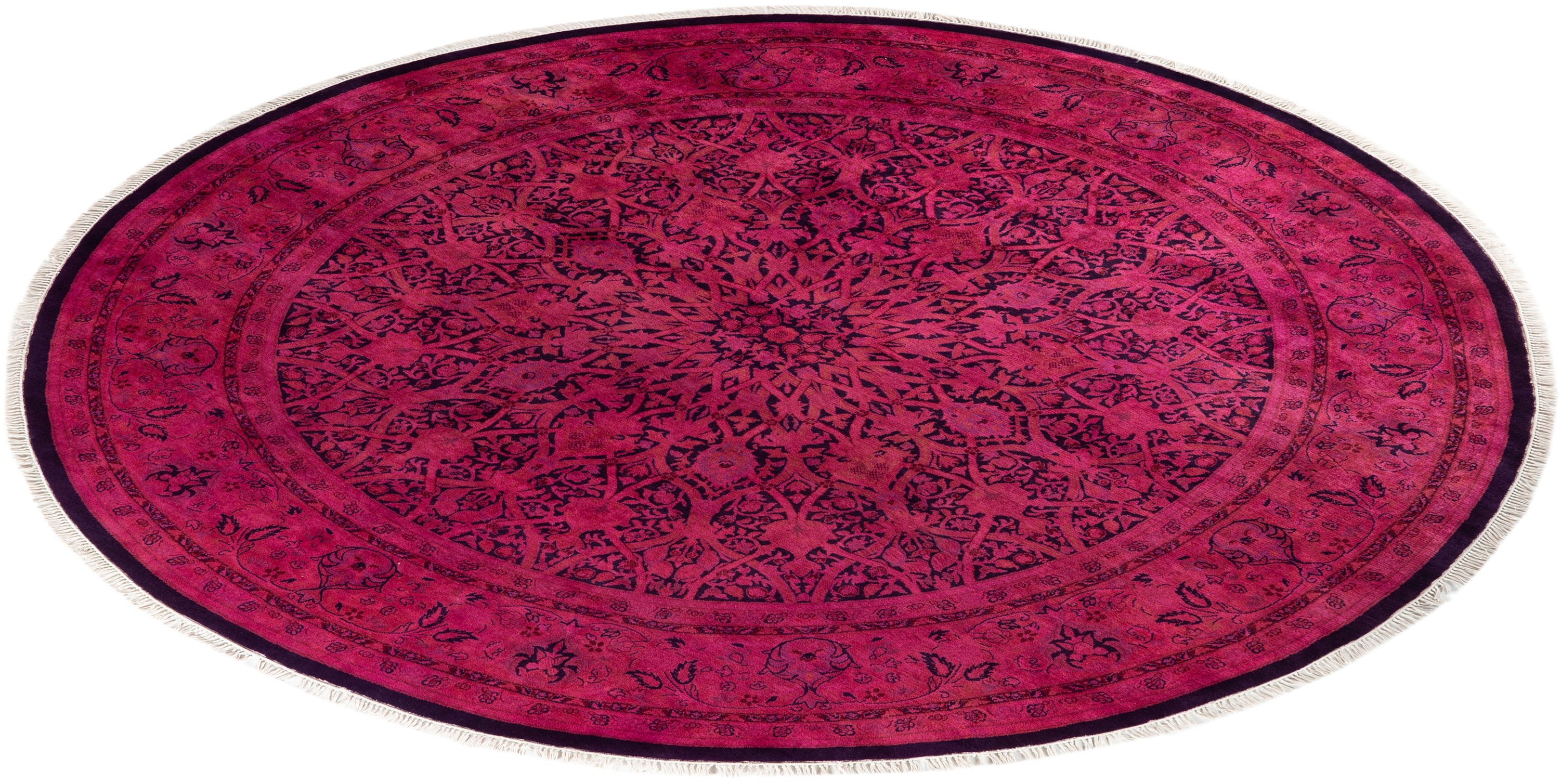 Contemporary Hand-Knotted Overdyed Pink Round Area Rug 7' 1" x 7' 1"